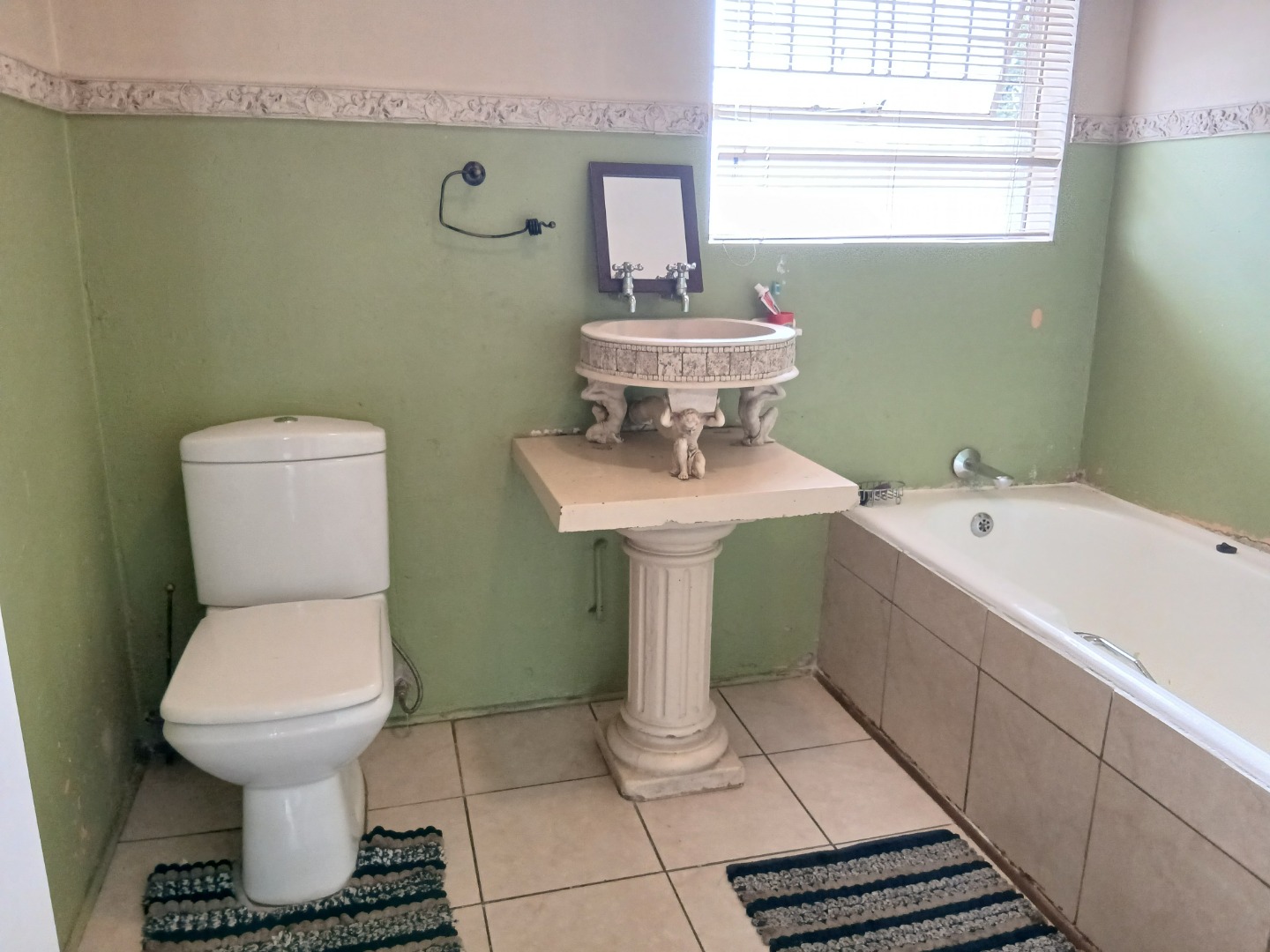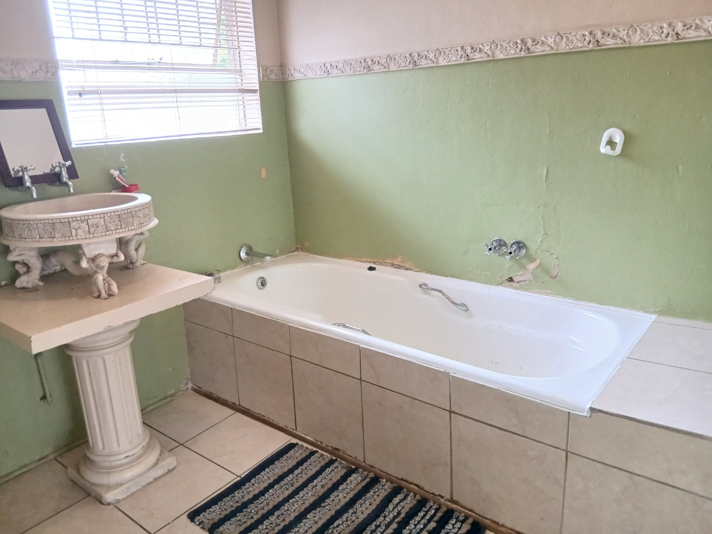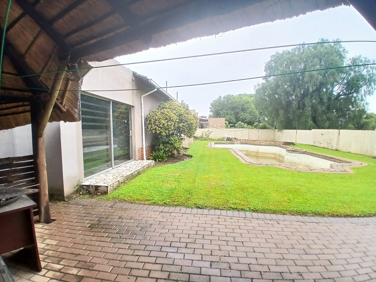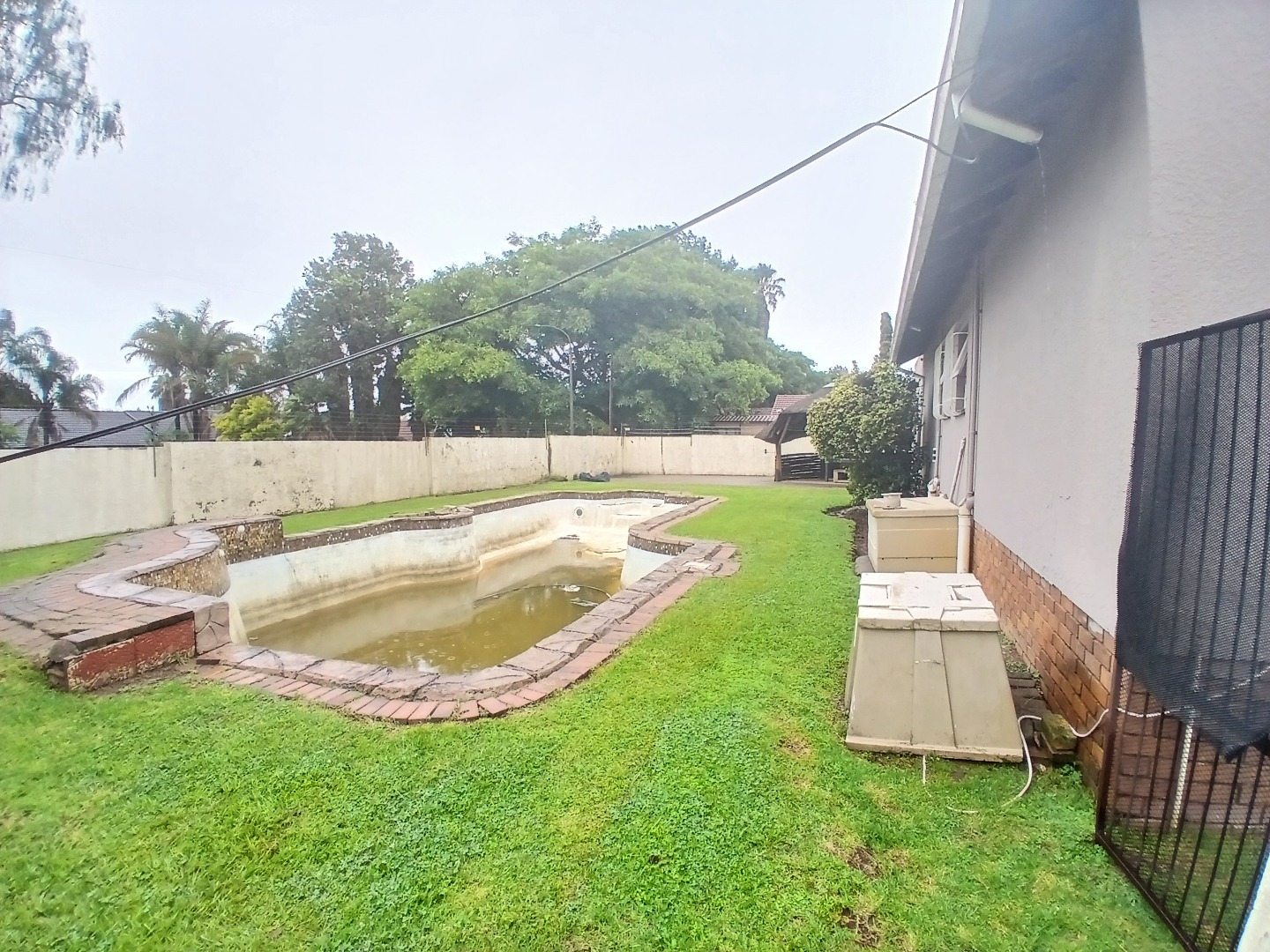 Accommodation includes three well-proportioned bedrooms and two bathrooms, with a private en-suite for added comfort. The property's generous 1044 sqm erf size provides a spacious garden, perfect for outdoor activities, and features a swimming pool that need some attention. Practical amenities include outside toilets and security bars on all windows, enhancing peace of mind.