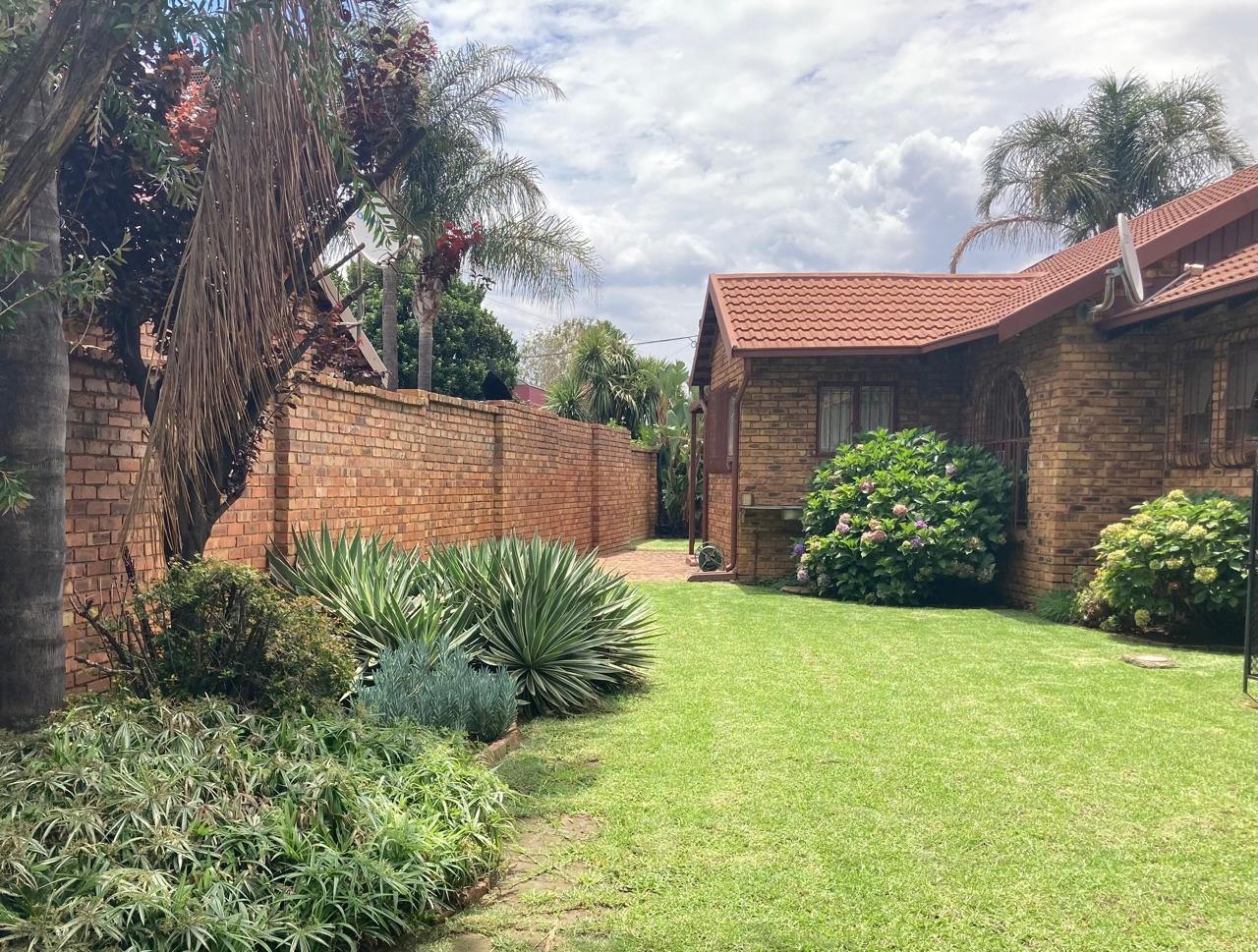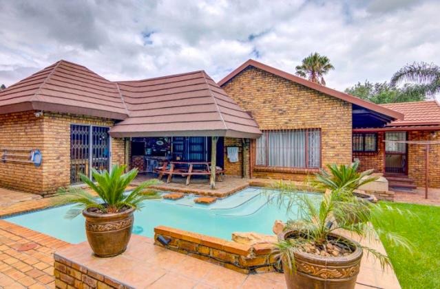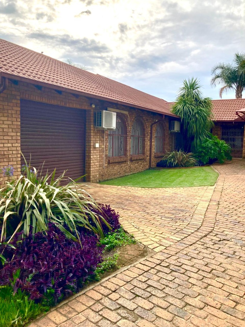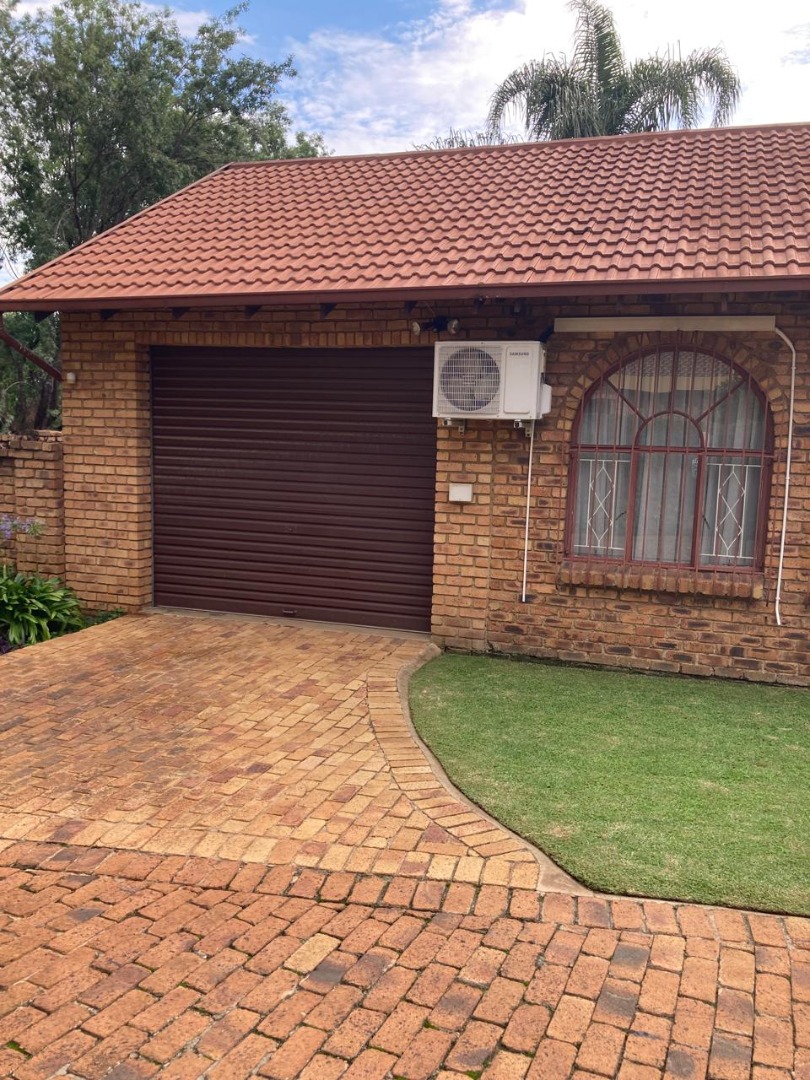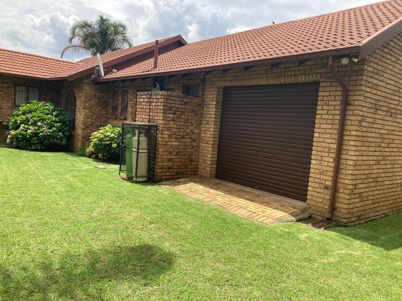 Step outside to a private oasis featuring a sparkling swimming pool with paved surrounds, perfect for enjoying the South African climate. An inviting lapa provides a dedicated covered entertainment area, ideal for hosting gatherings. The property offers exceptional parking with three garages and two additional parking spacesand an extra small garage for extra storage / big enough for a small vehicle. Complemented by extensive brick paving and a lush, mature garden. Security is paramount, with features including a perimeter wall, security gates, window bars, and the benefits of living within a security estate with 24-hour security and an access gate. Additional outside toilets add to the convenience.
