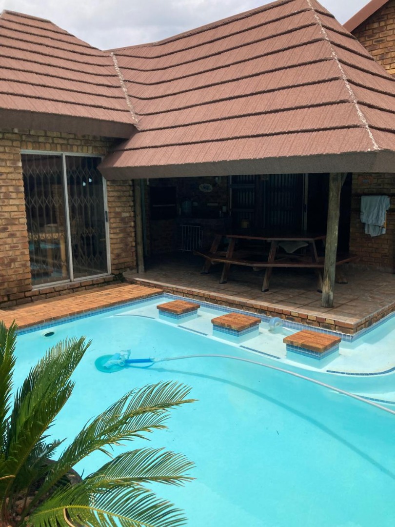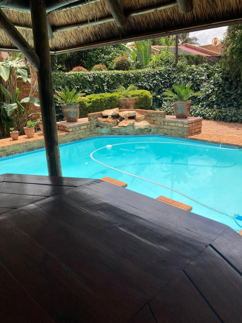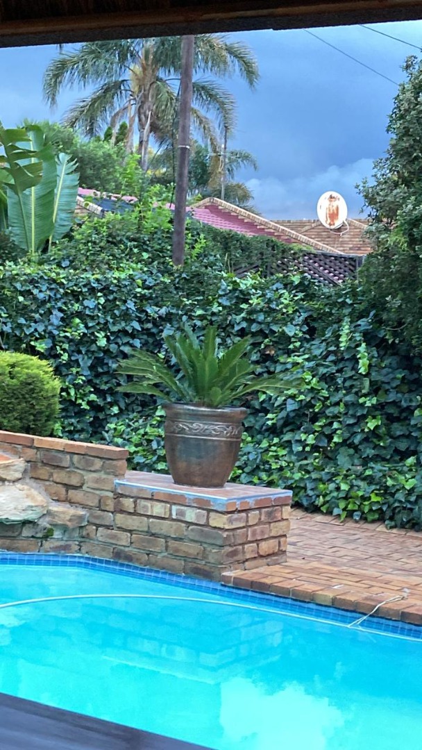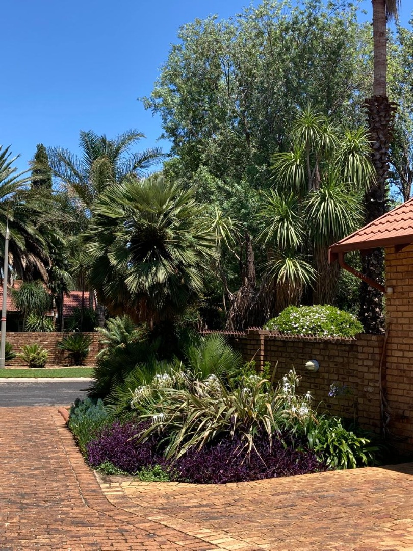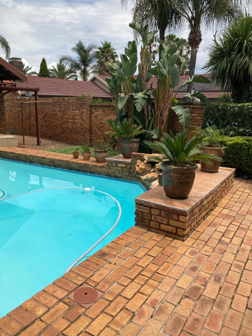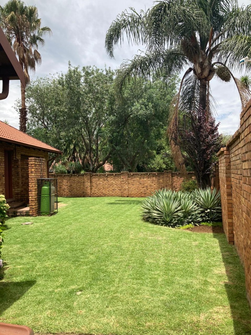 Step outside to a private oasis featuring a sparkling swimming pool with paved surrounds, perfect for enjoying the South African climate. An inviting lapa provides a dedicated covered entertainment area, ideal for hosting gatherings. The property offers exceptional parking with three garages and two additional parking spacesand an extra small garage for extra storage / big enough for a small vehicle. Complemented by extensive brick paving and a lush, mature garden. Security is paramount, with features including a perimeter wall, security gates, window bars, and the benefits of living within a security estate with 24-hour security and an access gate. Additional outside toilets add to the convenience.