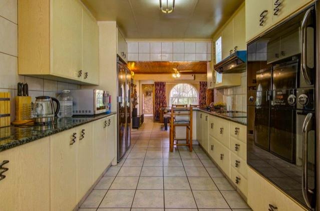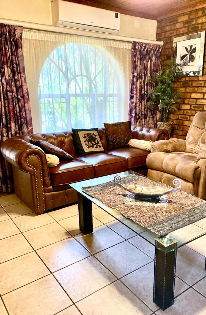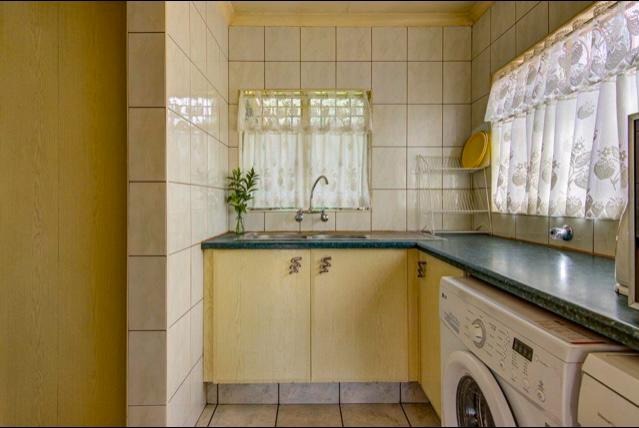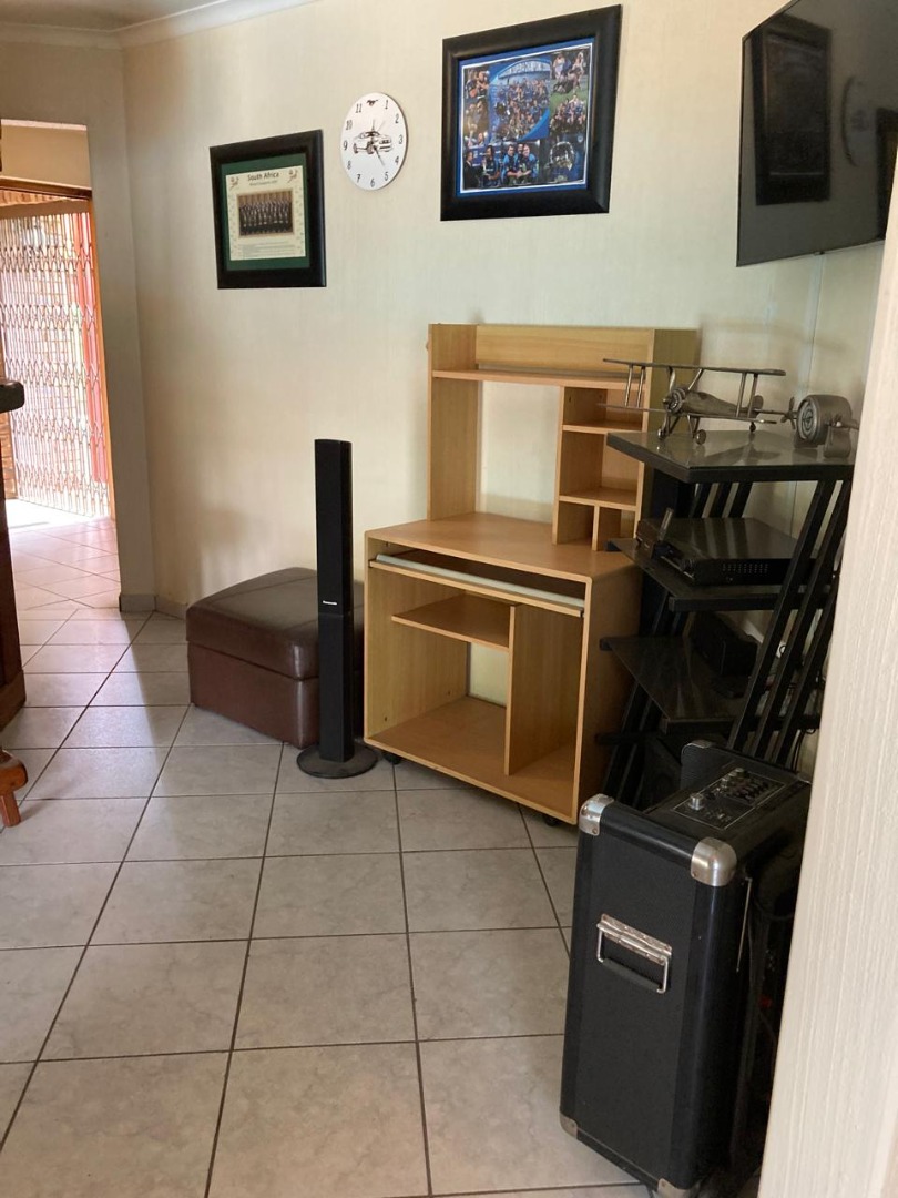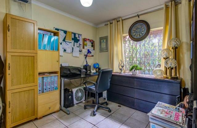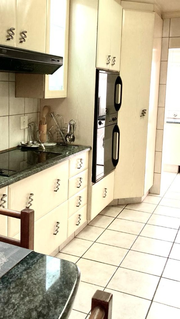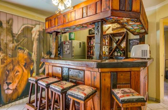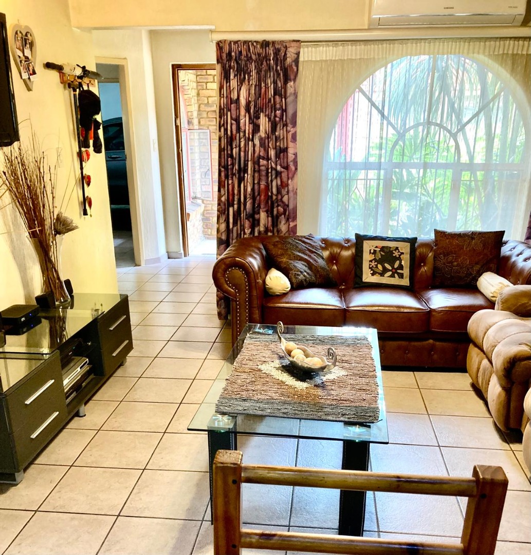 Step outside to a private oasis featuring a sparkling swimming pool with paved surrounds, perfect for enjoying the South African climate. An inviting lapa provides a dedicated covered entertainment area, ideal for hosting gatherings. The property offers exceptional parking with three garages and two additional parking spacesand an extra small garage for extra storage / big enough for a small vehicle. Complemented by extensive brick paving and a lush, mature garden. Security is paramount, with features including a perimeter wall, security gates, window bars, and the benefits of living within a security estate with 24-hour security and an access gate. Additional outside toilets add to the convenience.