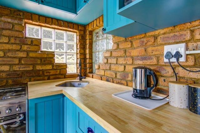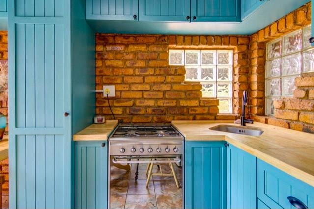 The interior includes a functional kitchen and a convenient laundry area. The dining room is enhanced by a warm wooden plank ceiling and extensive built-in wooden cabinetry, adding character and storage with sliding doors to an enclosed patio/lapa. A dedicated study offers a quiet space for work or hobbies.