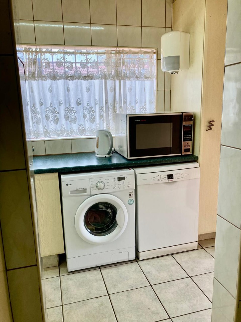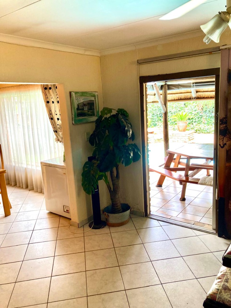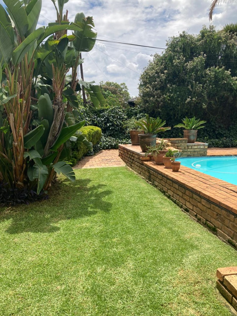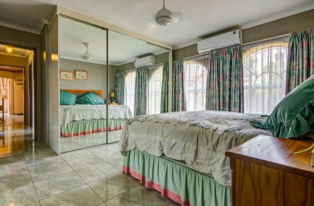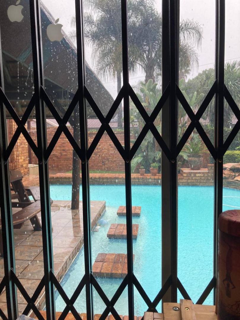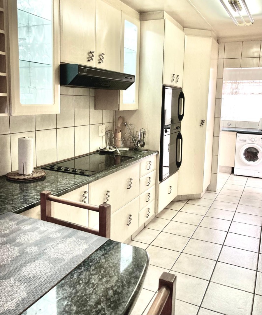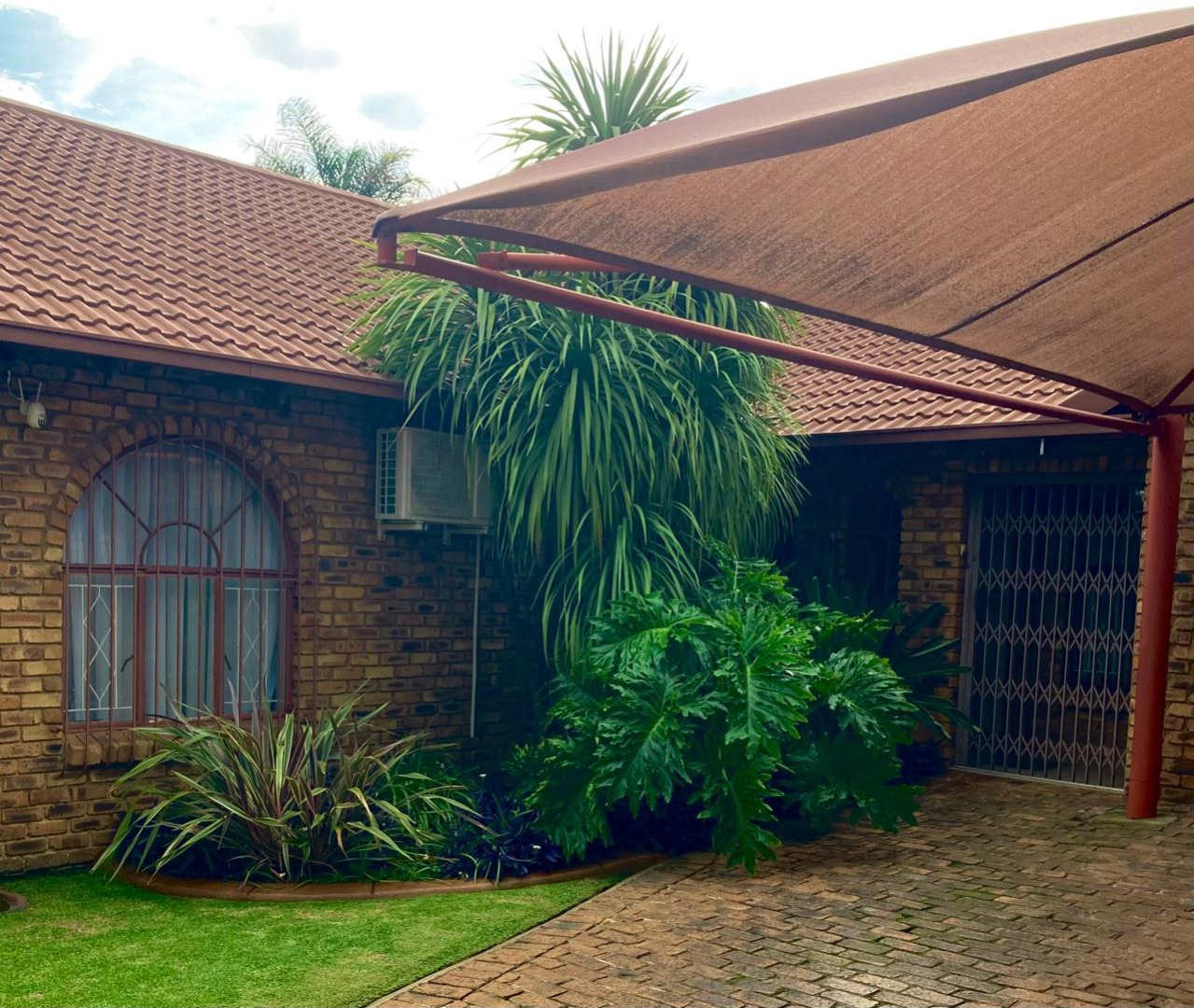 Step outside to a private oasis featuring a sparkling swimming pool with paved surrounds, perfect for enjoying the South African climate. An inviting lapa provides a dedicated covered entertainment area, ideal for hosting gatherings. The property offers exceptional parking with three garages and two additional parking spacesand an extra small garage for extra storage / big enough for a small vehicle. Complemented by extensive brick paving and a lush, mature garden. Security is paramount, with features including a perimeter wall, security gates, window bars, and the benefits of living within a security estate with 24-hour security and an access gate. Additional outside toilets add to the convenience.