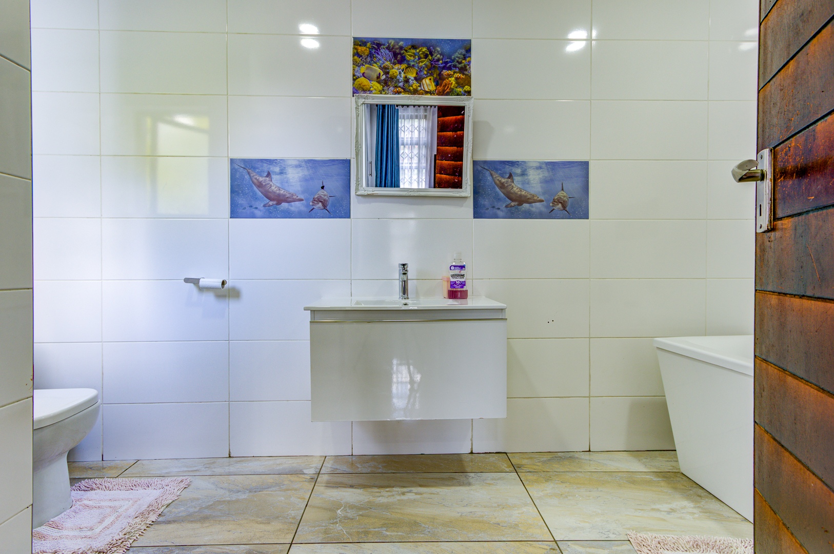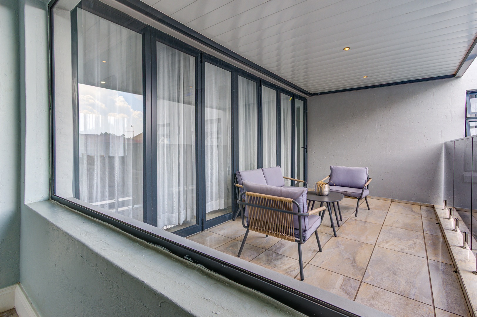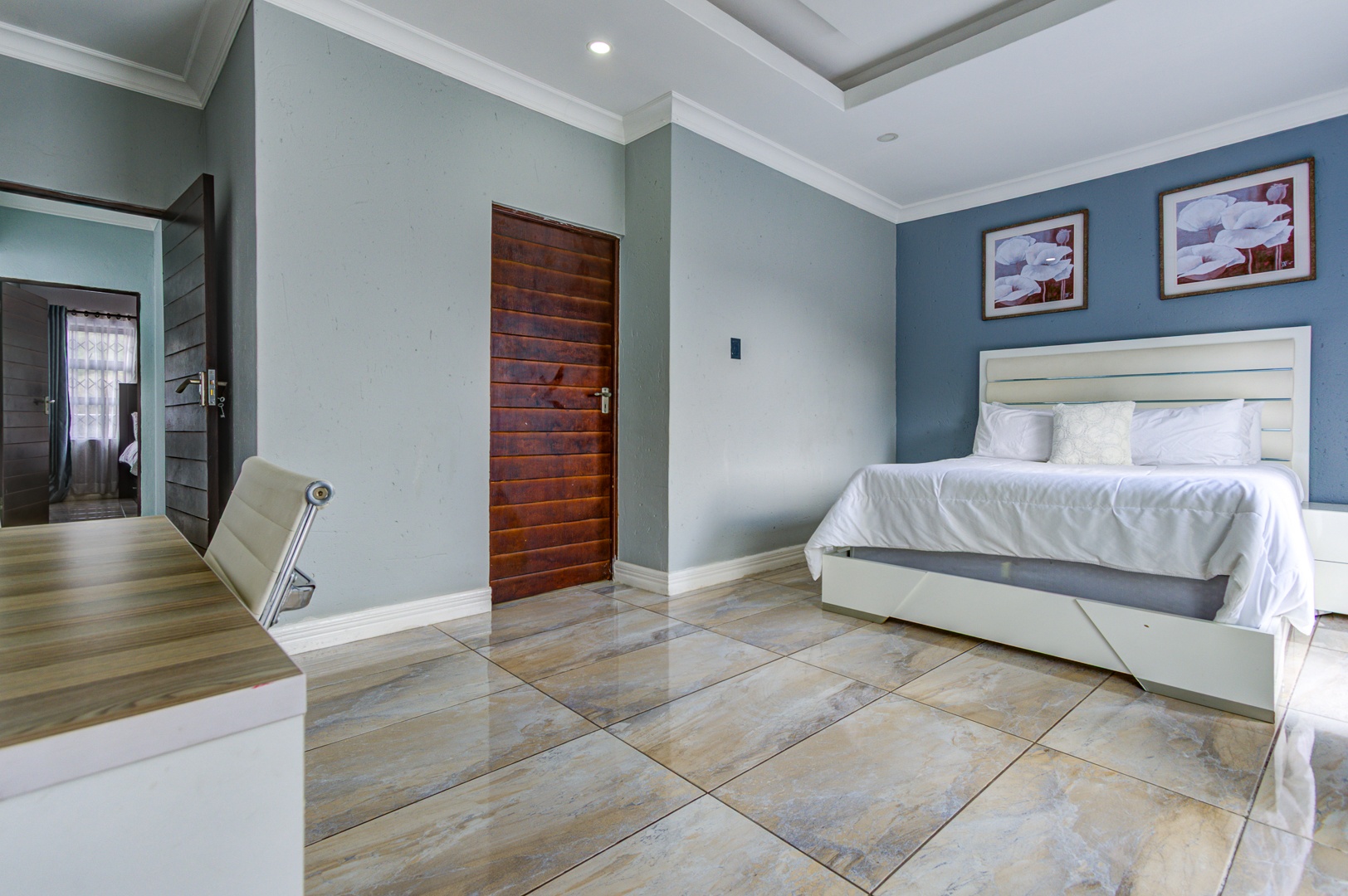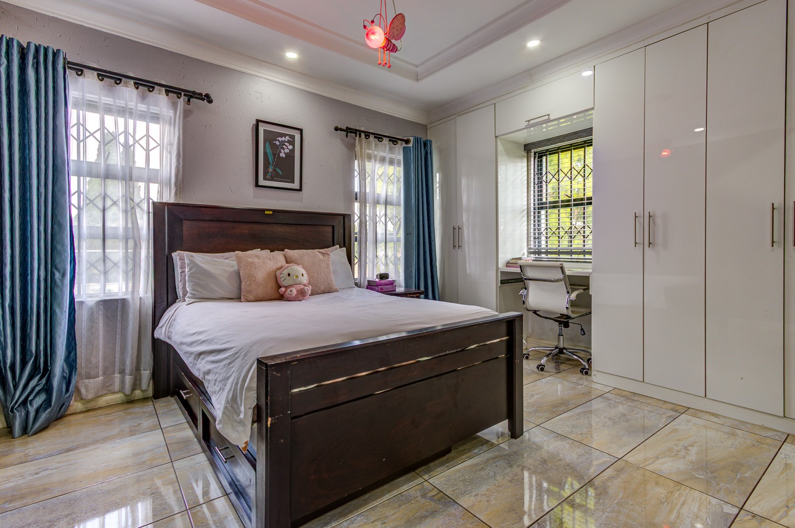 Step outside to a beautiful covered deck, overlooking the perfectly sized swimming pool, and a built-in braai area, all framed by a manicured garden that invites relaxation and outdoor gatherings.