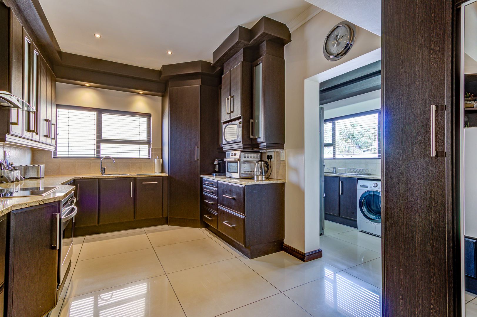 The kitchen is large with granite tops, breakfast counter, gas stove, under counter oven, and separate scullery with double sink and space for 3 appliances. A kitchen that will bring the home cook out in you, with ample space for the kids to help you cook!