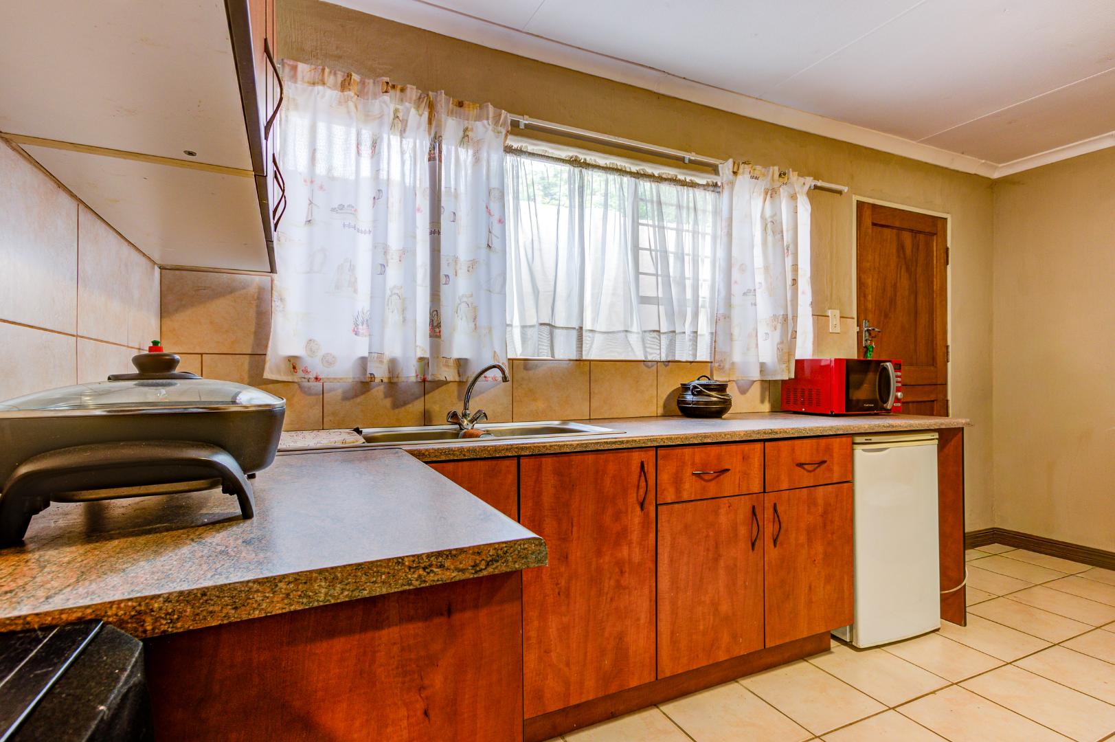 The flatlet could be used as a 5th bedroom, guest room, or separate income generating accommodation. It has an open plan kitchen and lounge, bedroom with built-in cupboards and bathroom with shower, basin and toilet.