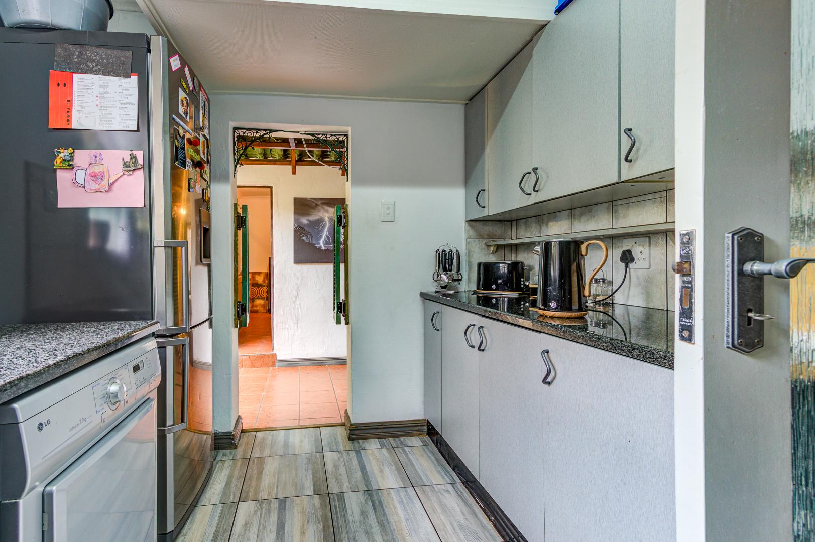 The flatlet could be used as a 5th bedroom, guest room, or separate income generating accommodation. It has an open plan kitchen and lounge, bedroom with built-in cupboards and bathroom with shower, basin and toilet.