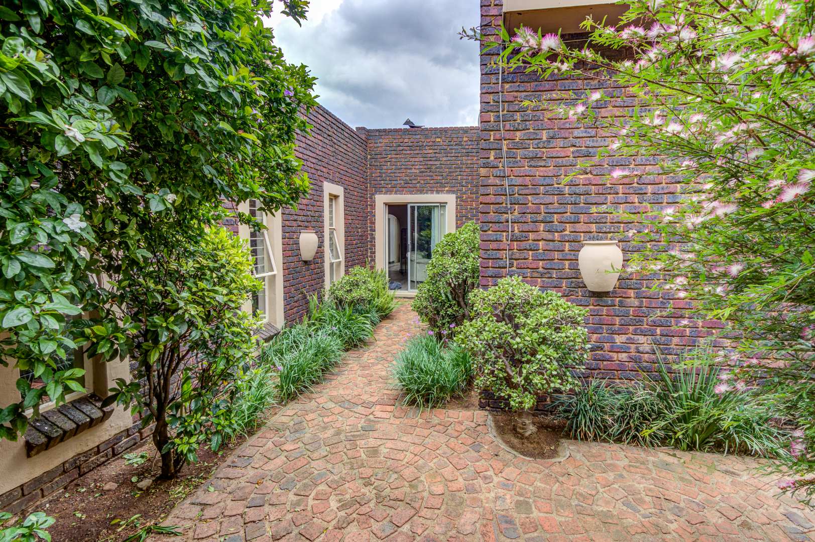 The 4 bedrooms are bright with built-in cupboards. The main bedroom has its own sliding door to a private garden.