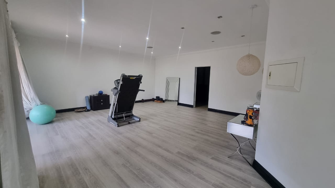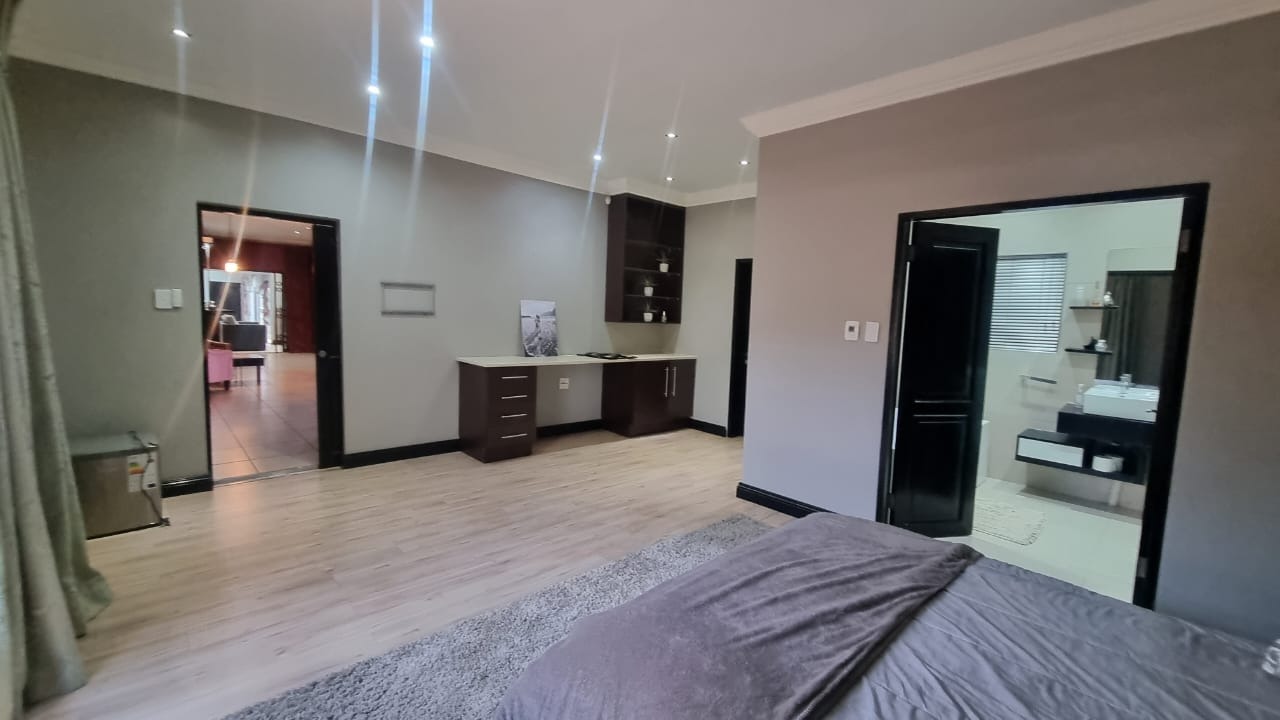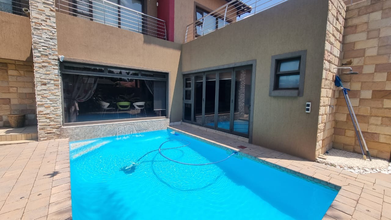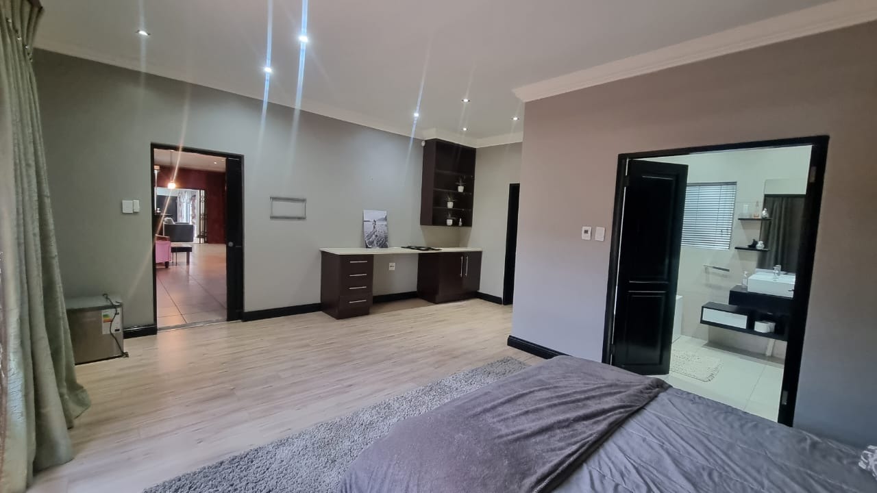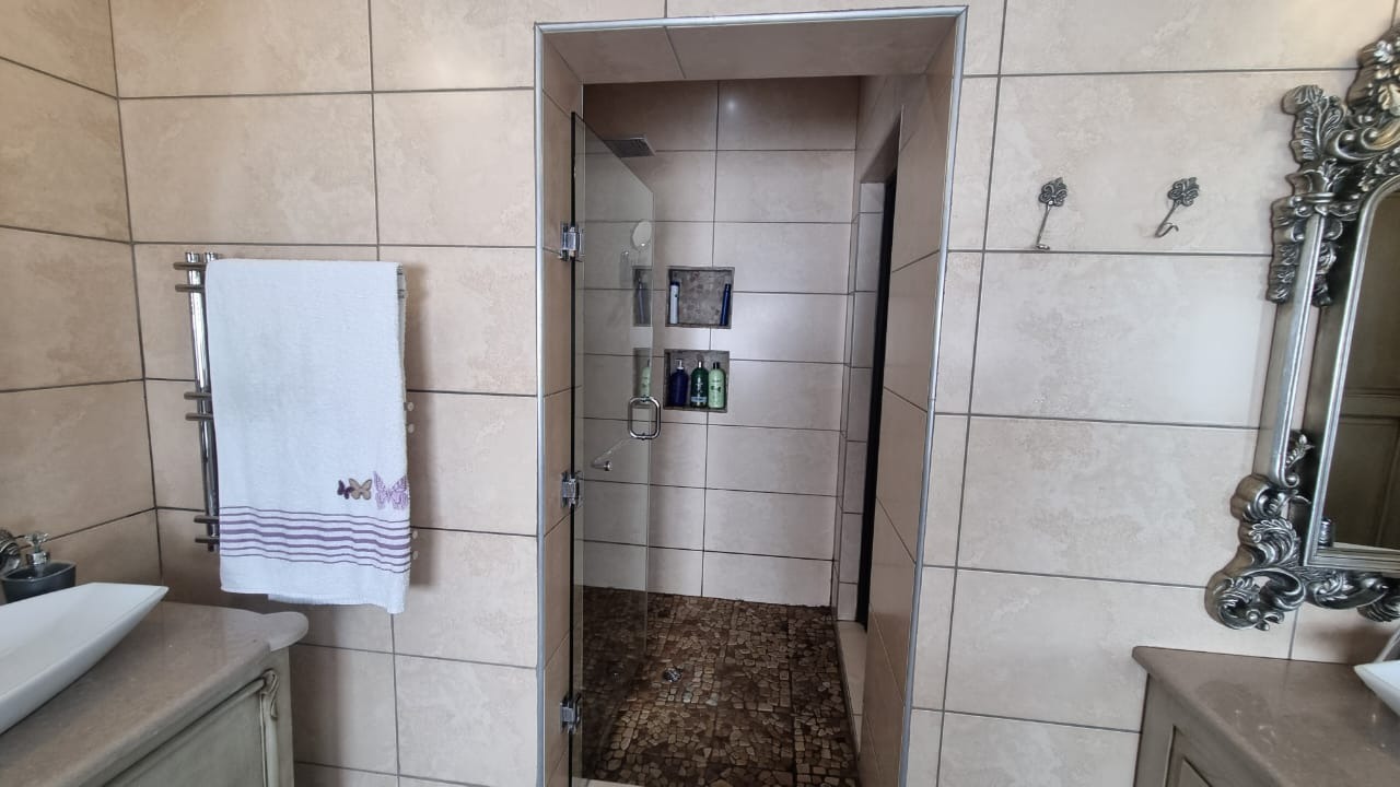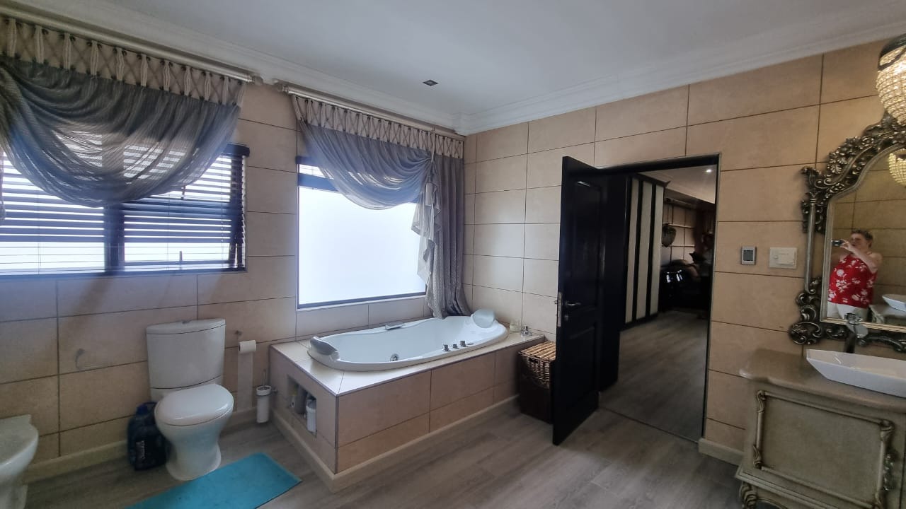 The residence offers six garages and a brand-new solar system that powers the geysers and the entire home, ensuring both luxury and sustainability. For relaxation and entertainment, you'll find a lovely jacuzzi that opens onto the pool, complemented by a sauna and a built-in kitchen area for convenience.