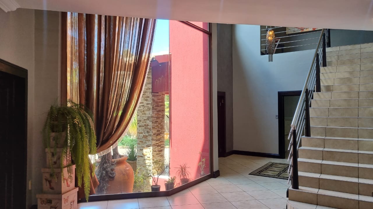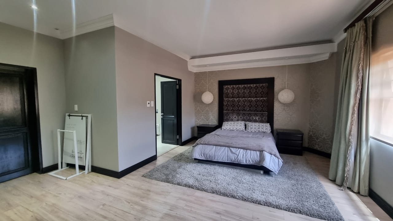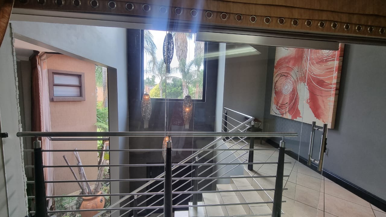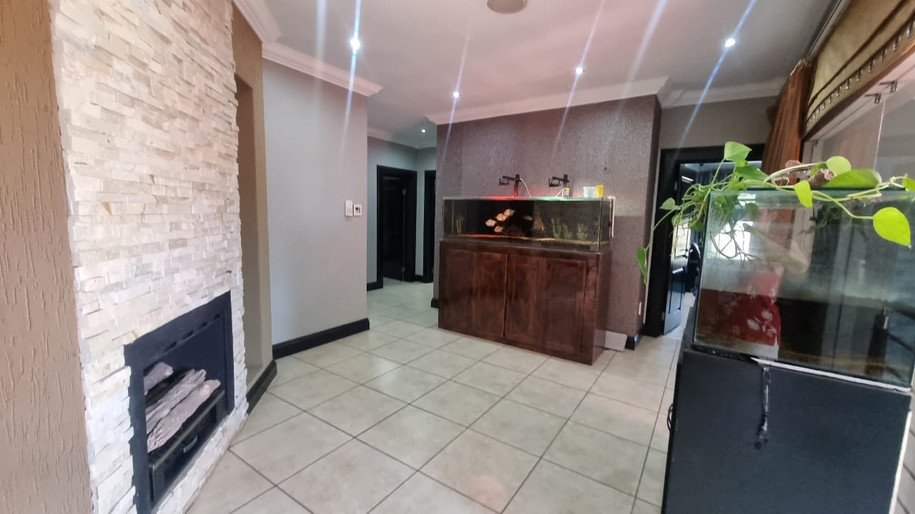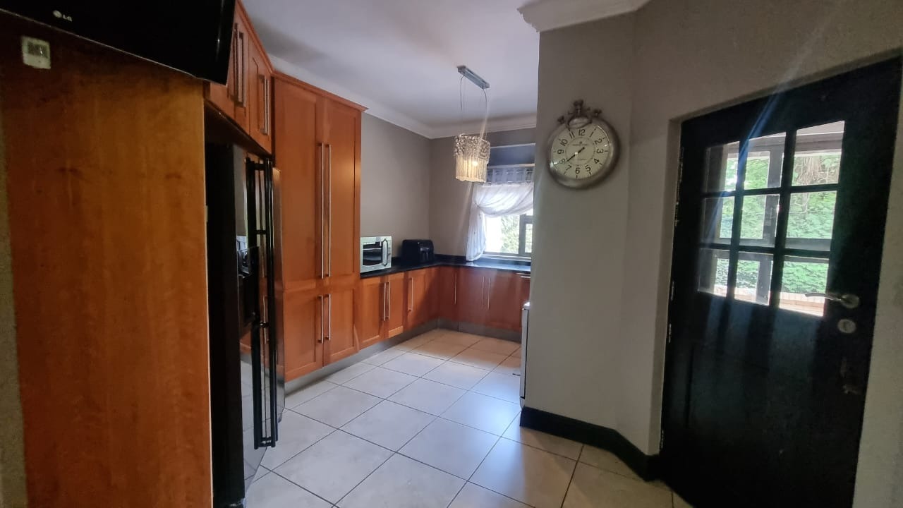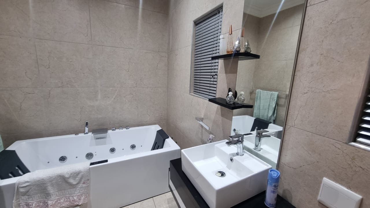 The residence offers six garages and a brand-new solar system that powers the geysers and the entire home, ensuring both luxury and sustainability. For relaxation and entertainment, you'll find a lovely jacuzzi that opens onto the pool, complemented by a sauna and a built-in kitchen area for convenience.