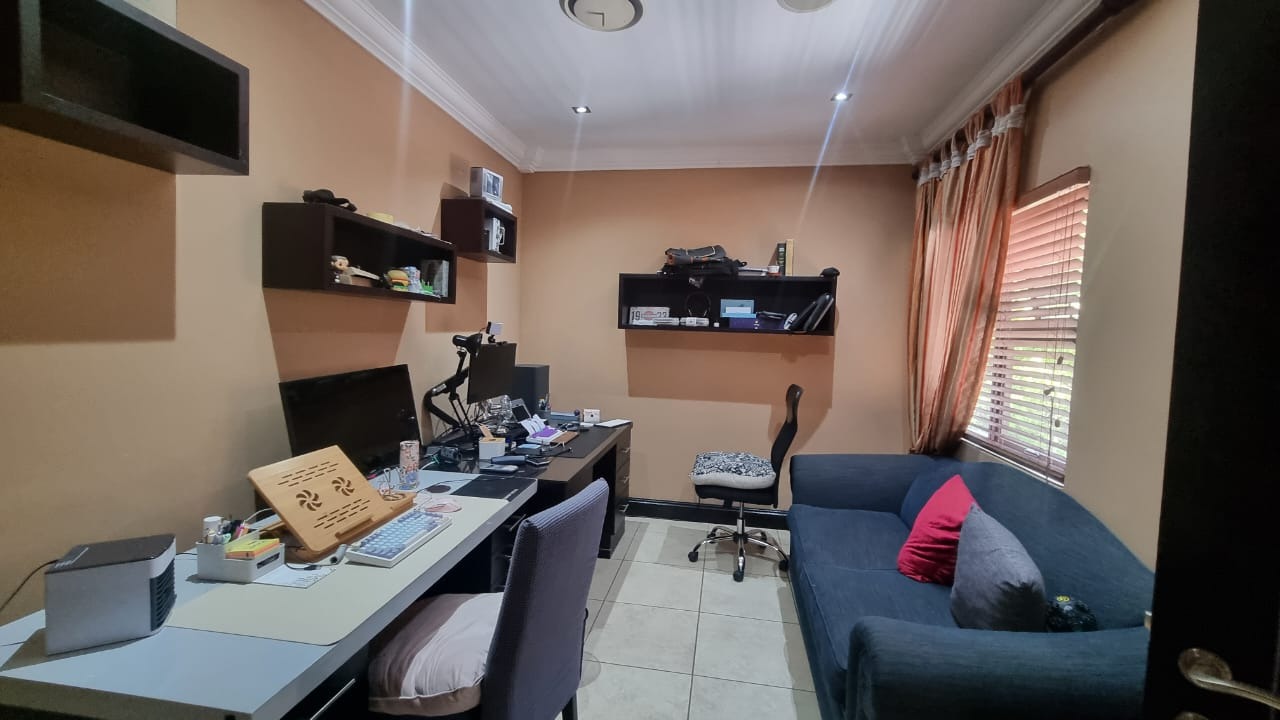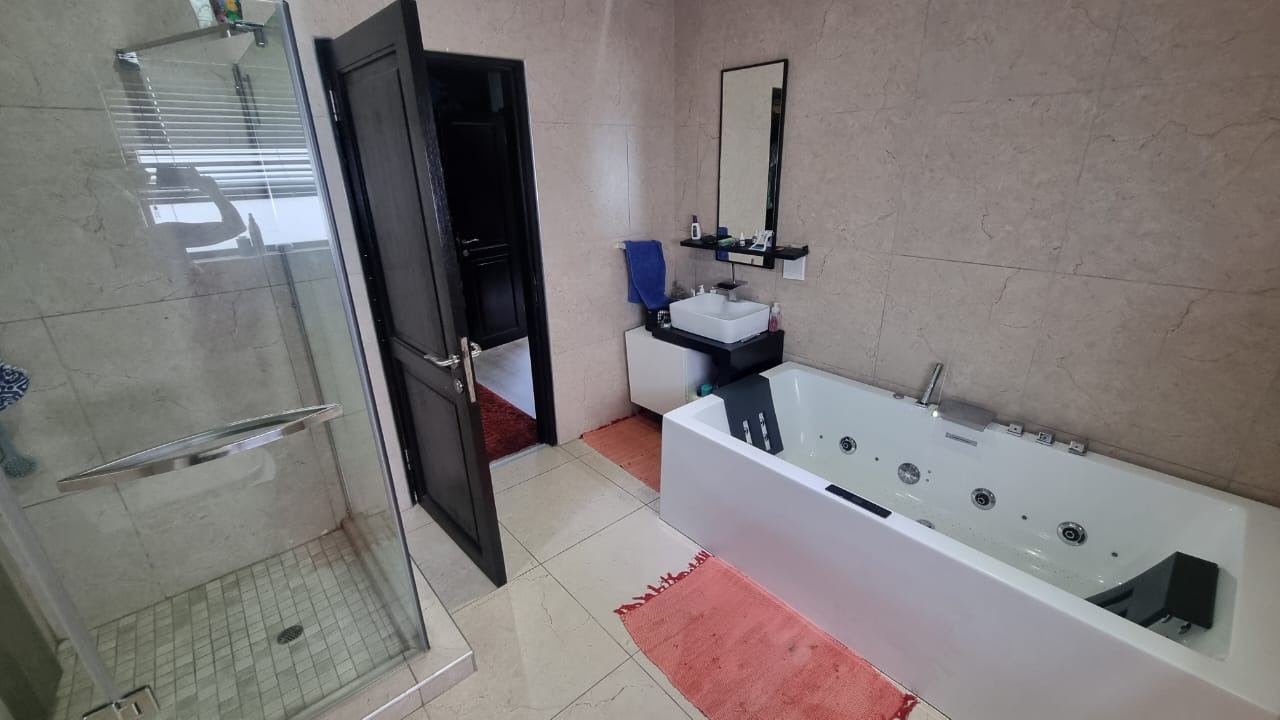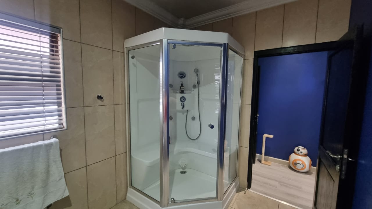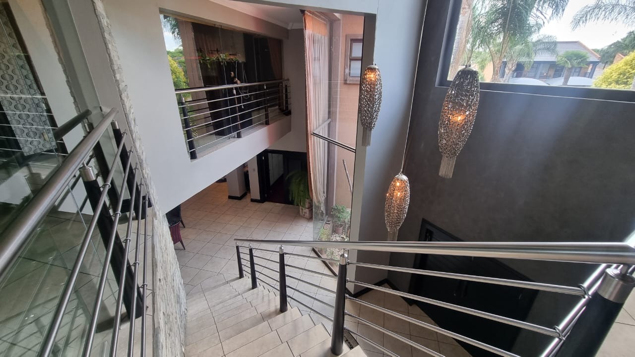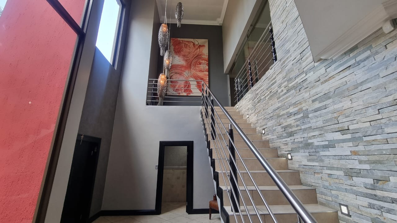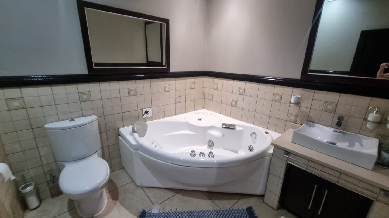 The residence offers six garages and a brand-new solar system that powers the geysers and the entire home, ensuring both luxury and sustainability. For relaxation and entertainment, you'll find a lovely jacuzzi that opens onto the pool, complemented by a sauna and a built-in kitchen area for convenience.
