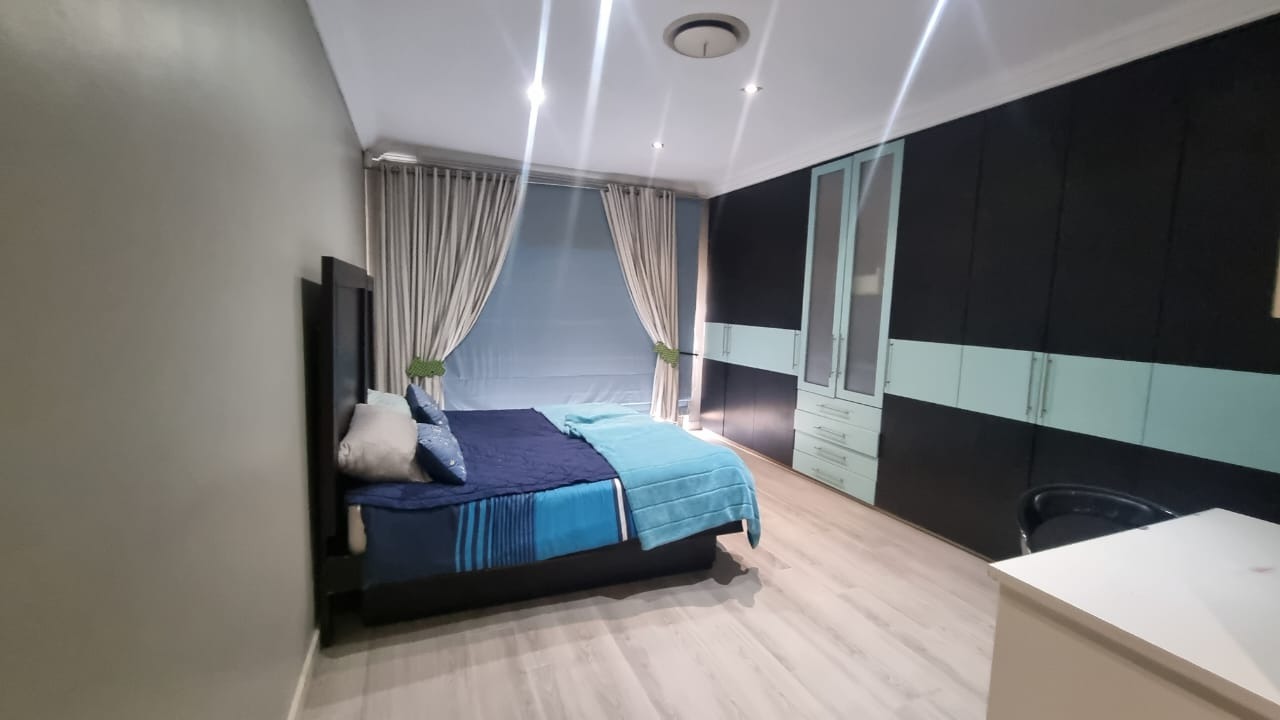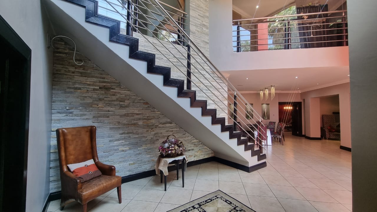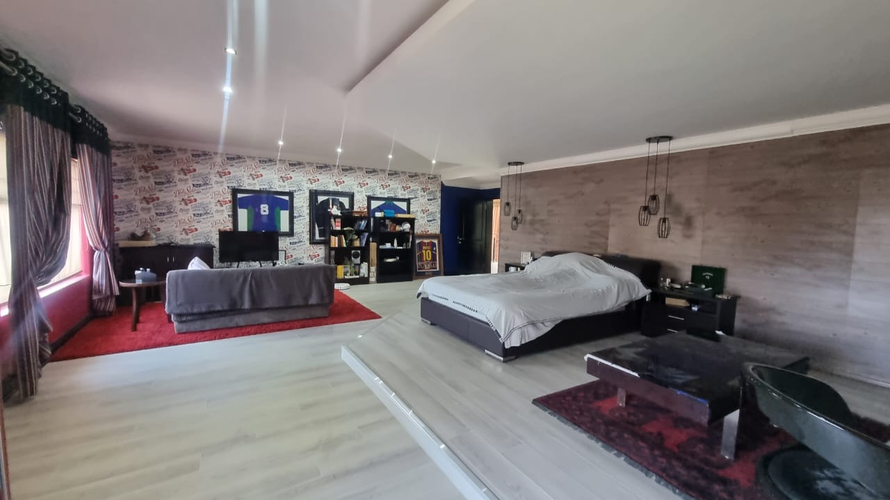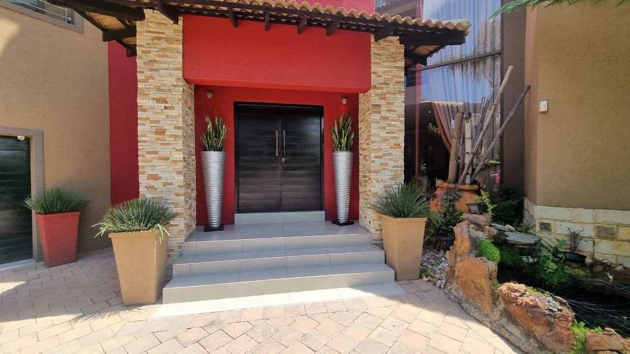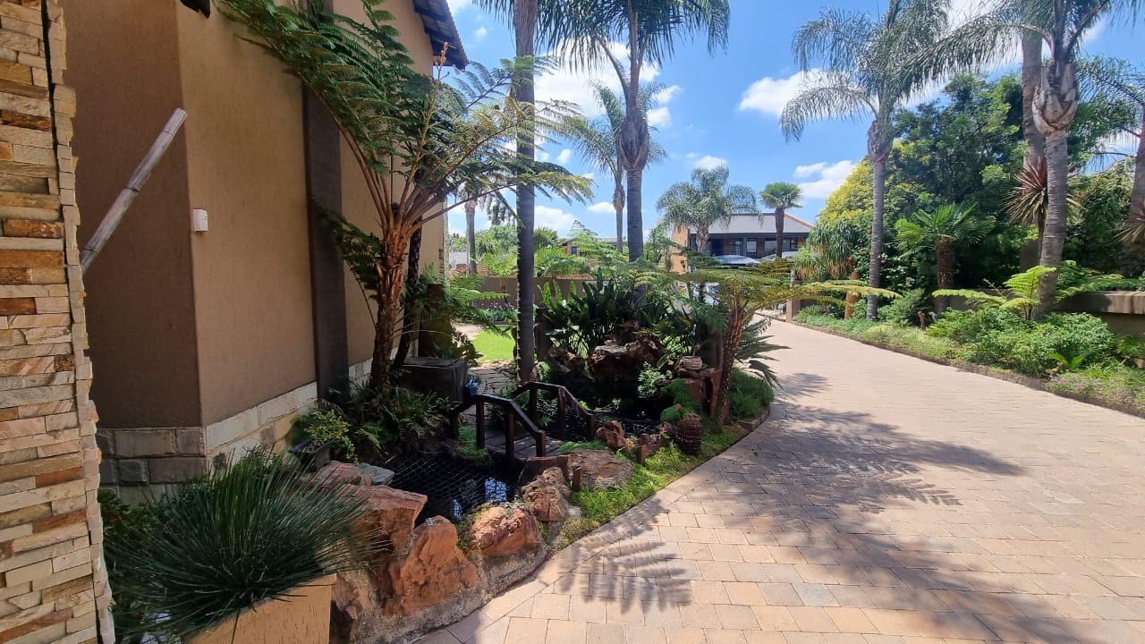 The grand double-volume entrance sets the tone for the home’s grandeur, while the meticulously manicured garden and a serene fish pond with a charming bridge add to the tranquillity. Additionally, the property includes the possibility of a separate two-bedroom double-story flatlet, featuring its own entrance and double garage, offering flexibility and privacy.