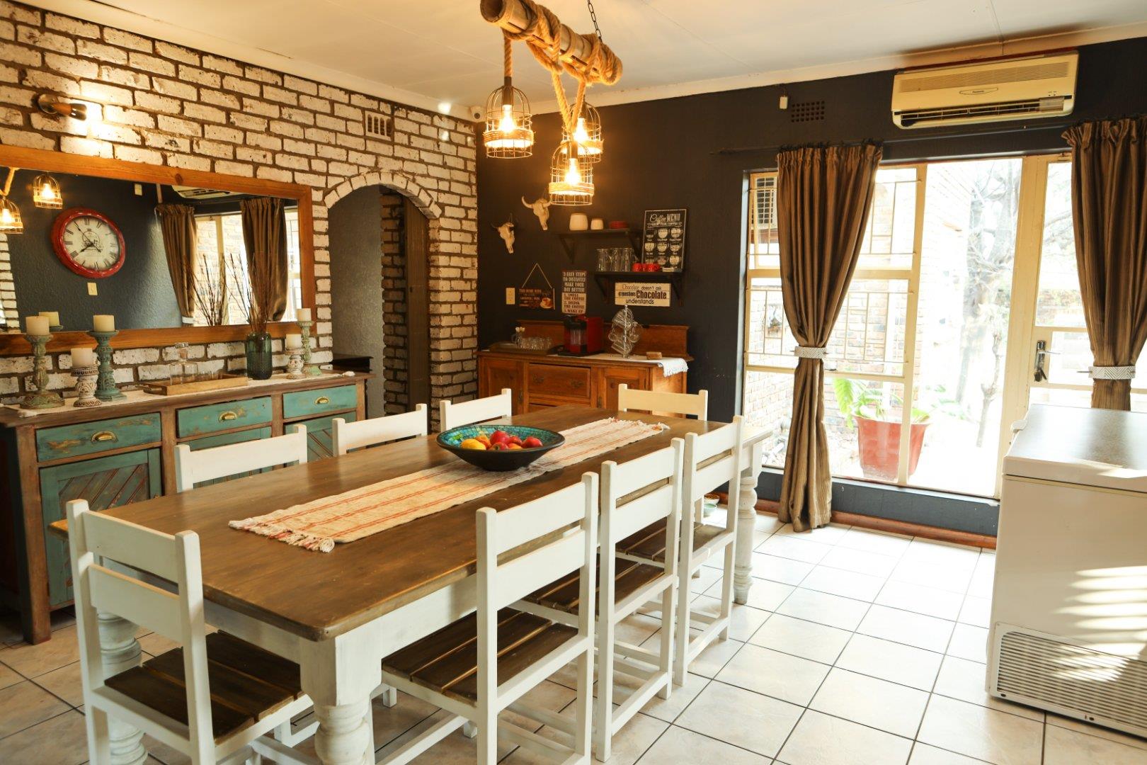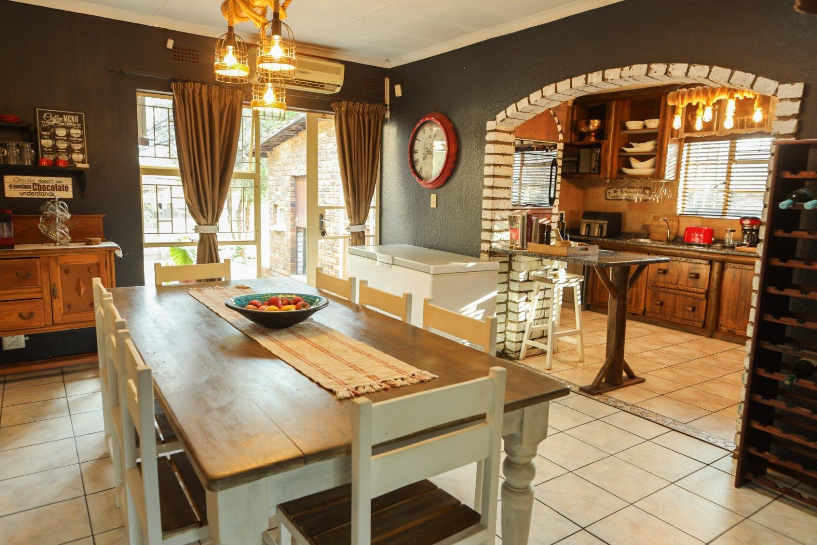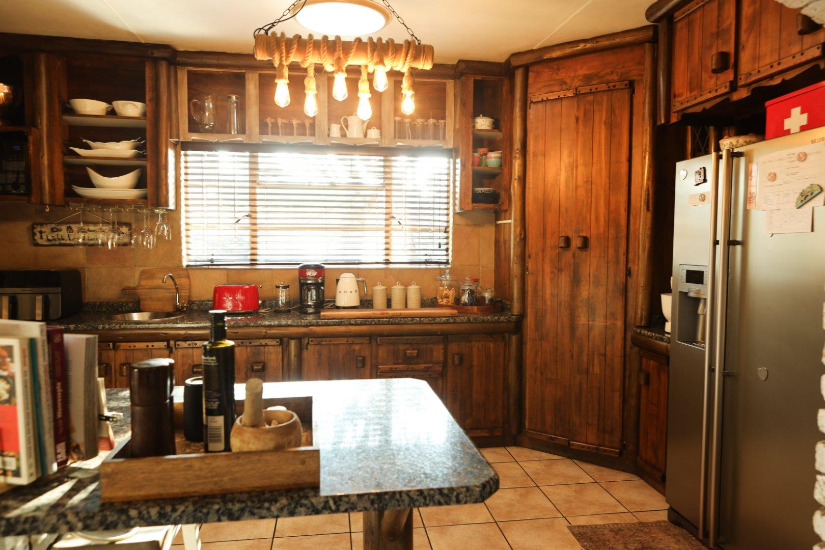 The kitchen is a solid wood kitchen with granite tops. There is space for a large double door fridge freezer. A seperate large laundry/scullery area with ample cupboard space will keep all the clutter out of the kitchen. The stove is a five burner gas stove.