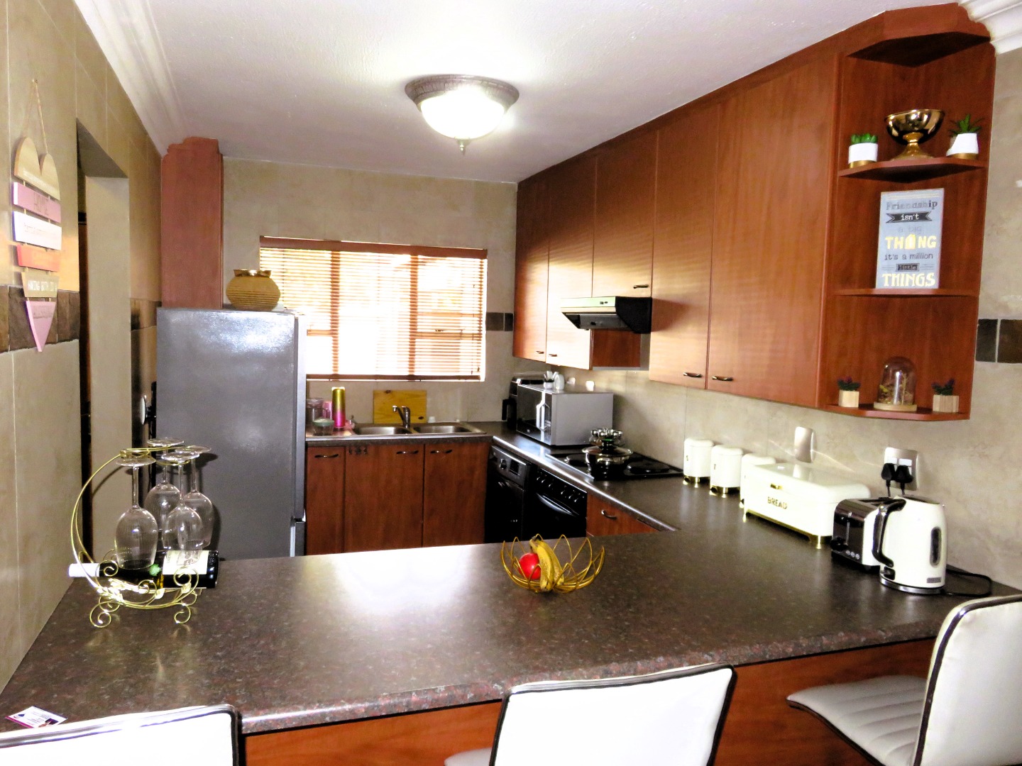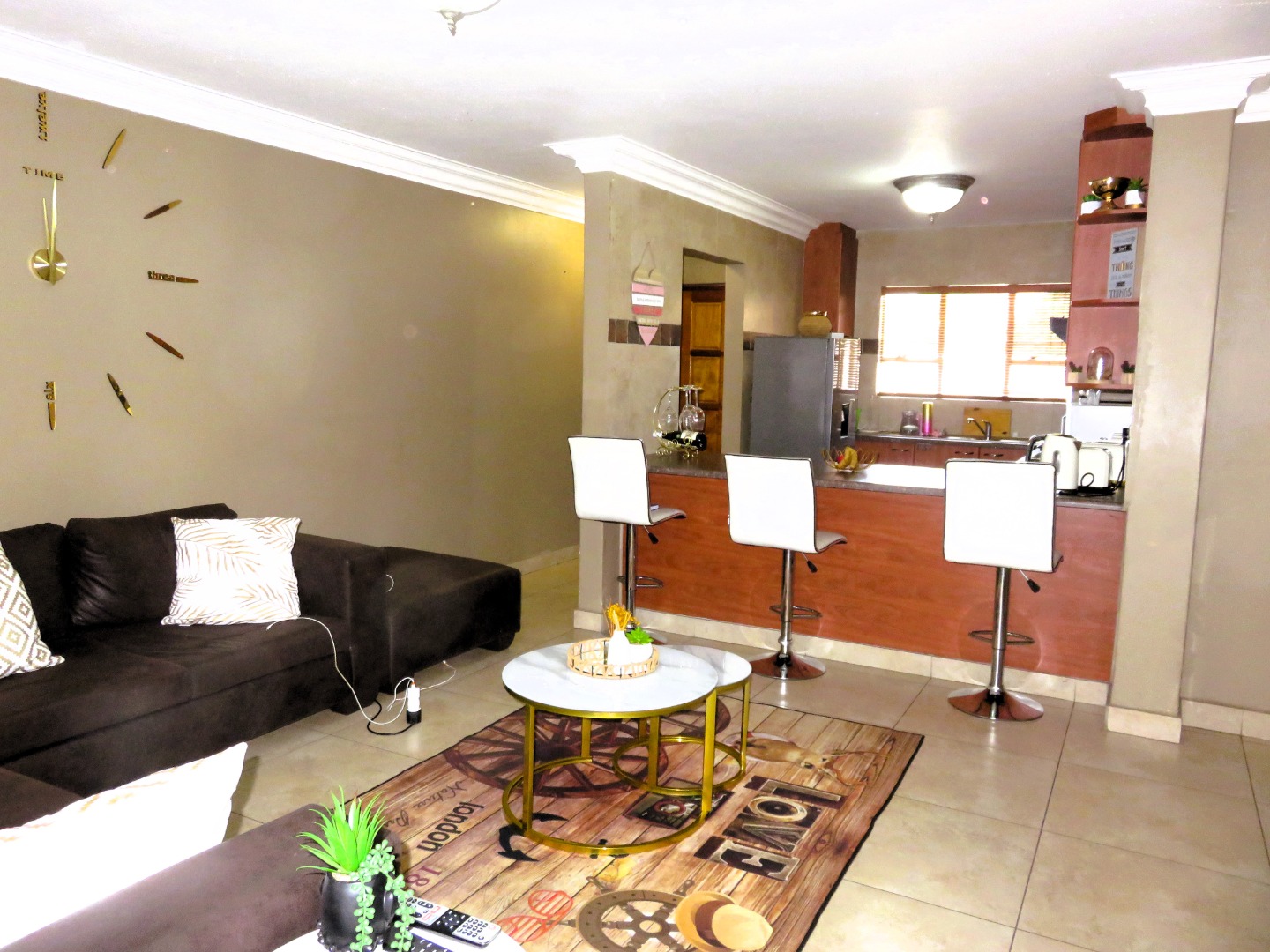 Discover modern living in this inviting 2-bedroom, 1-bathroom residence, perfectly situated within a secure complex in Van Dyk Park, Boksburg. Spanning 84 square meters, this home offers a thoughtfully designed open-plan layout, seamlessly connecting the living, dining, and kitchen areas. The well-equipped kitchen features ample wood-toned cabinetry, dark countertops, a breakfast bar, and natural light, ideal for both everyday meals and entertaining. Adjacent to the living space, a sunlit, semi-enclosed patio with large glass doors provides a versatile area for relaxation or casual dining.