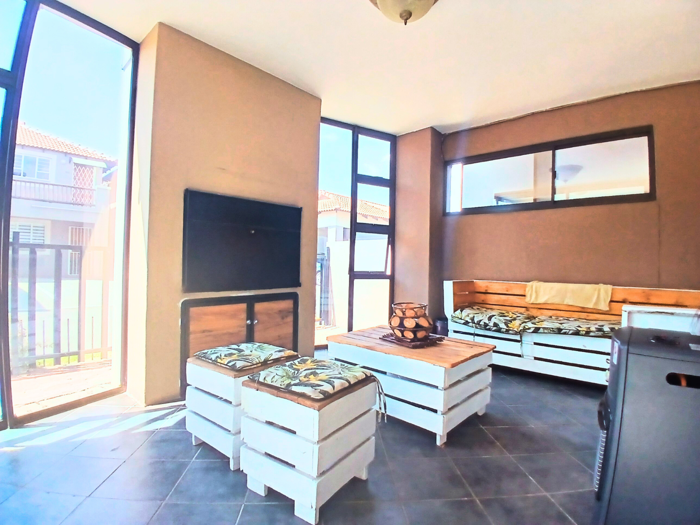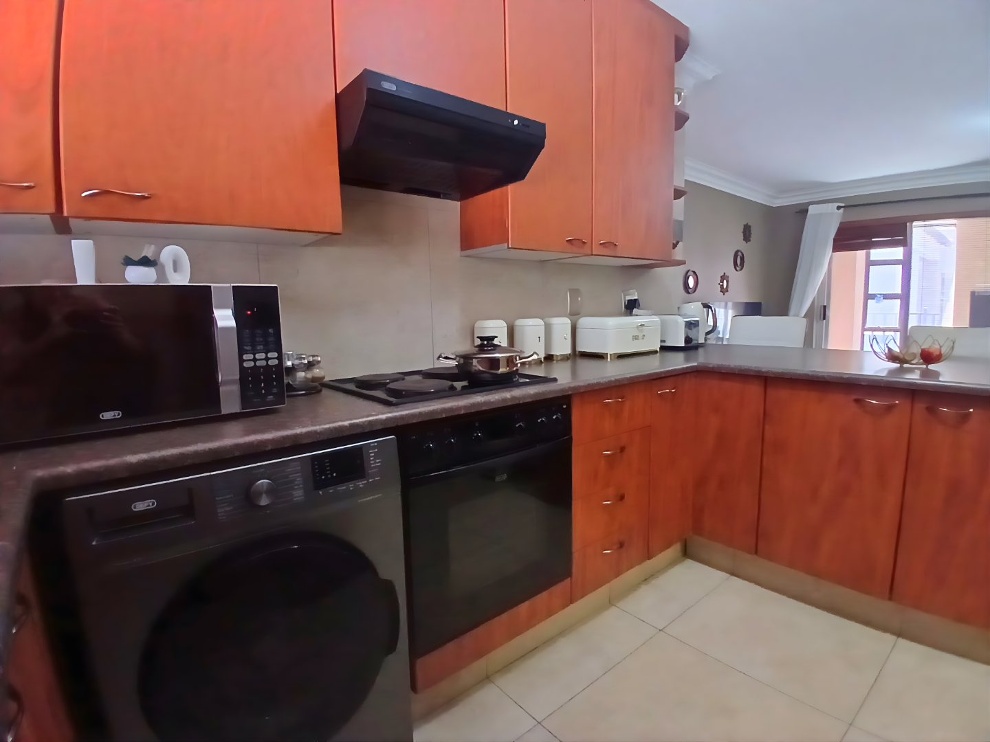 Discover modern living in this stylish 2-bedroom, 1-bathroom apartment located within a secure complex in Van Dyk Park, Boksburg. Spanning 83 square meters, this unit boasts a contemporary open-plan layout, seamlessly connecting the lounge and a modern kitchen. The kitchen features a convenient breakfast bar, perfect for casual dining. Tiled flooring throughout ensures easy maintenance, complemented by sliding doors enhancing natural light and access. A built-in braai, communal pool and braai area provide excellent options for outdoor cooking and social gatherings.