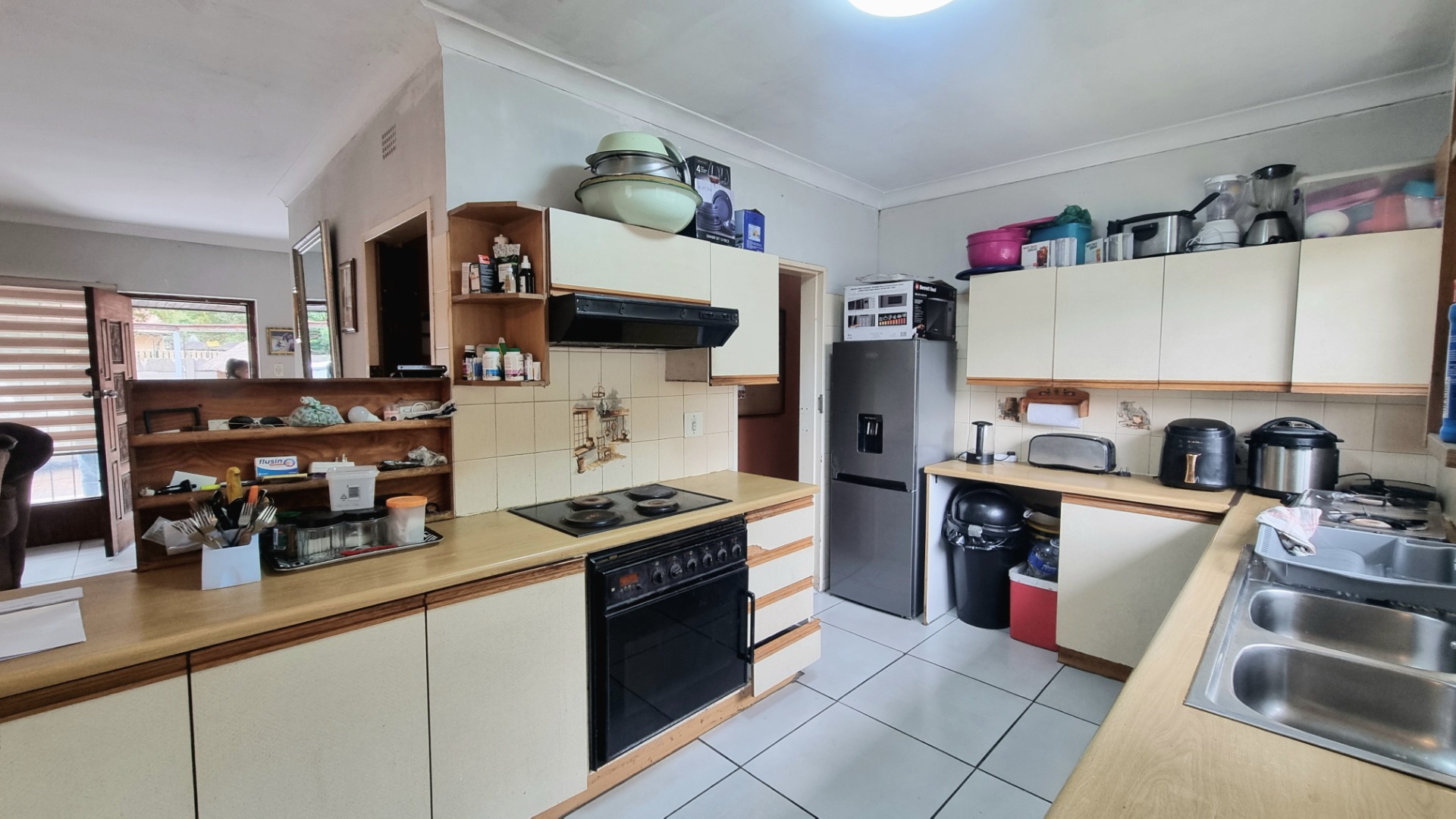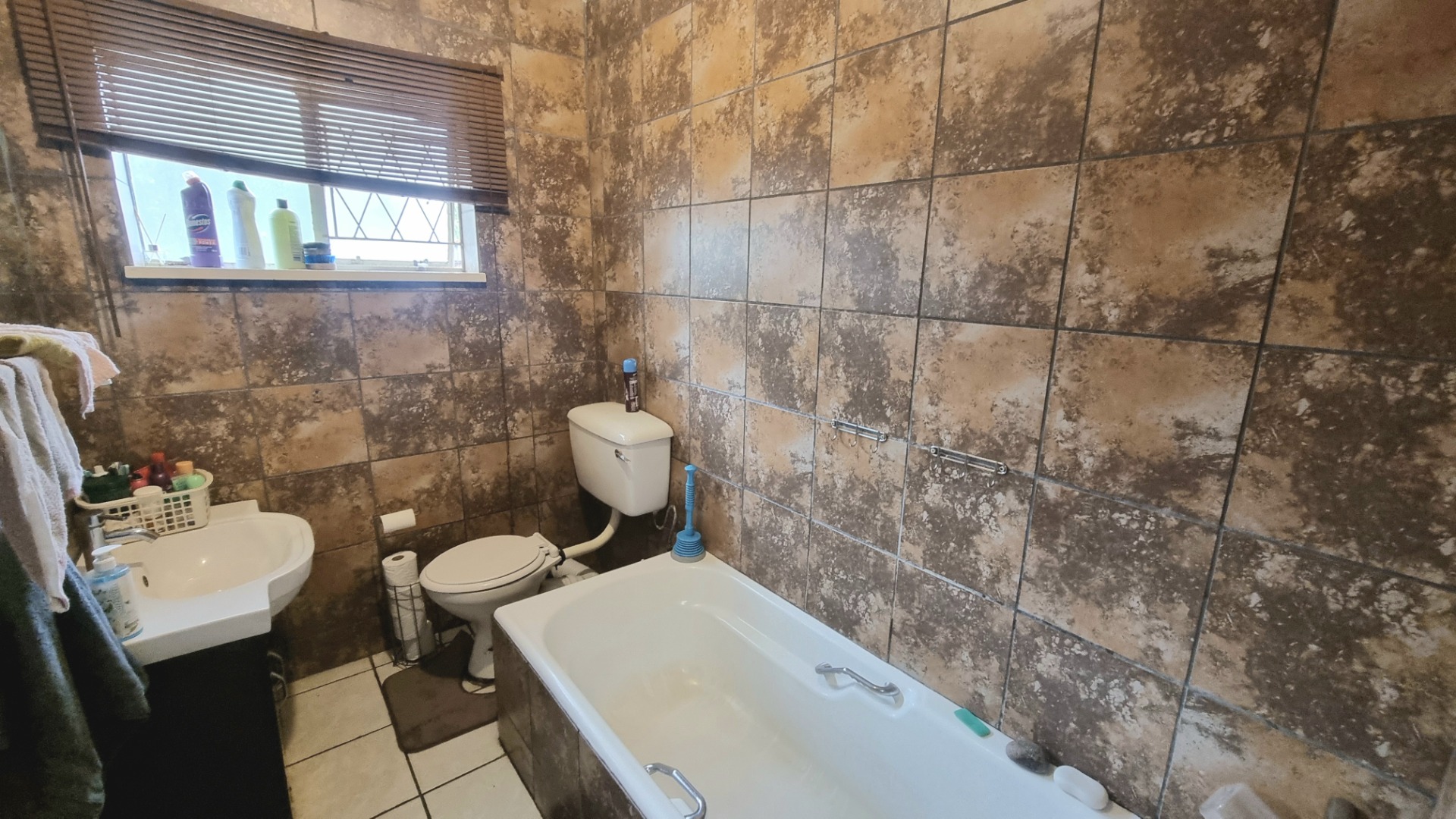 Discover this inviting single-story family home situated in the established suburb of Witfield, Boksburg. The property presents a practical exterior with a double garage and an expansive paved driveway, offering generous parking space for up to six vehicles. This residence provides a solid foundation for comfortable living, complemented by a tiled roof and a fully walled perimeter for privacy. Step inside to an open-plan layout designed for seamless living, featuring tiled flooring throughout for effortless maintenance. The integrated living, dining, and kitchen areas create a versatile space for daily activities. The functional kitchen is equipped with a built-in hob, oven, extractor fan, double sink, and ample cabinetry, catering to all culinary needs. A convenient small office nook is also integrated into the living space, ideal for remote work or study. This home boasts four comfortable bedrooms and two bathrooms, including a private en-suite for added convenience. Outside, the property truly shines with its dedicated entertainment zone. Enjoy sunny South African days by the swimming pool, complemented by a charming thatched lapa – perfect for hosting gatherings or simply relaxing. A patio further extends your outdoor living options. Practical features include security bars on windows, enhancing peace of mind. The home is also fibre-ready, ensuring high-speed internet connectivity for modern living. With pets allowed, this property offers a welcoming environment for the entire family. Key Features: * 4 Bedrooms, 2 Bathrooms (1 En-suite) * Open-Plan Living Areas * Functional Kitchen with Built-in Appliances * Double Garage & Paved Driveway (6 Parking Spaces) * Swimming Pool & Thatched Lapa * Patio & Walled Property * Fibre Ready * Pet-Friendly
