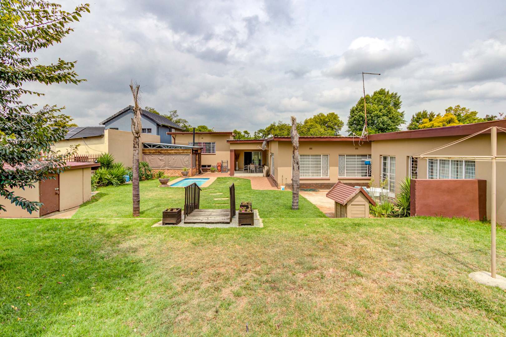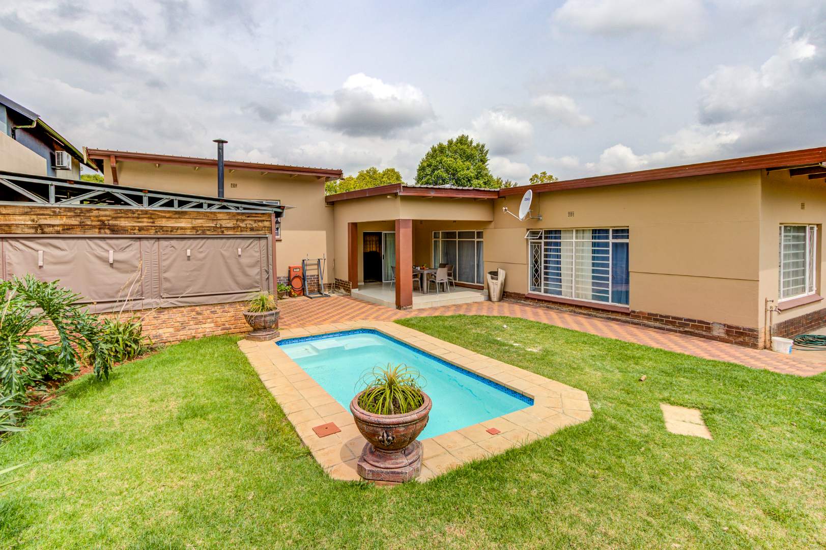 Set on a large 991m² stand, the outdoor space is ideal for entertaining. Enjoy hot summer days around the swimming pool and host memorable gatherings under the Lapa with a built-in braai — a perfect setting for family and friends.