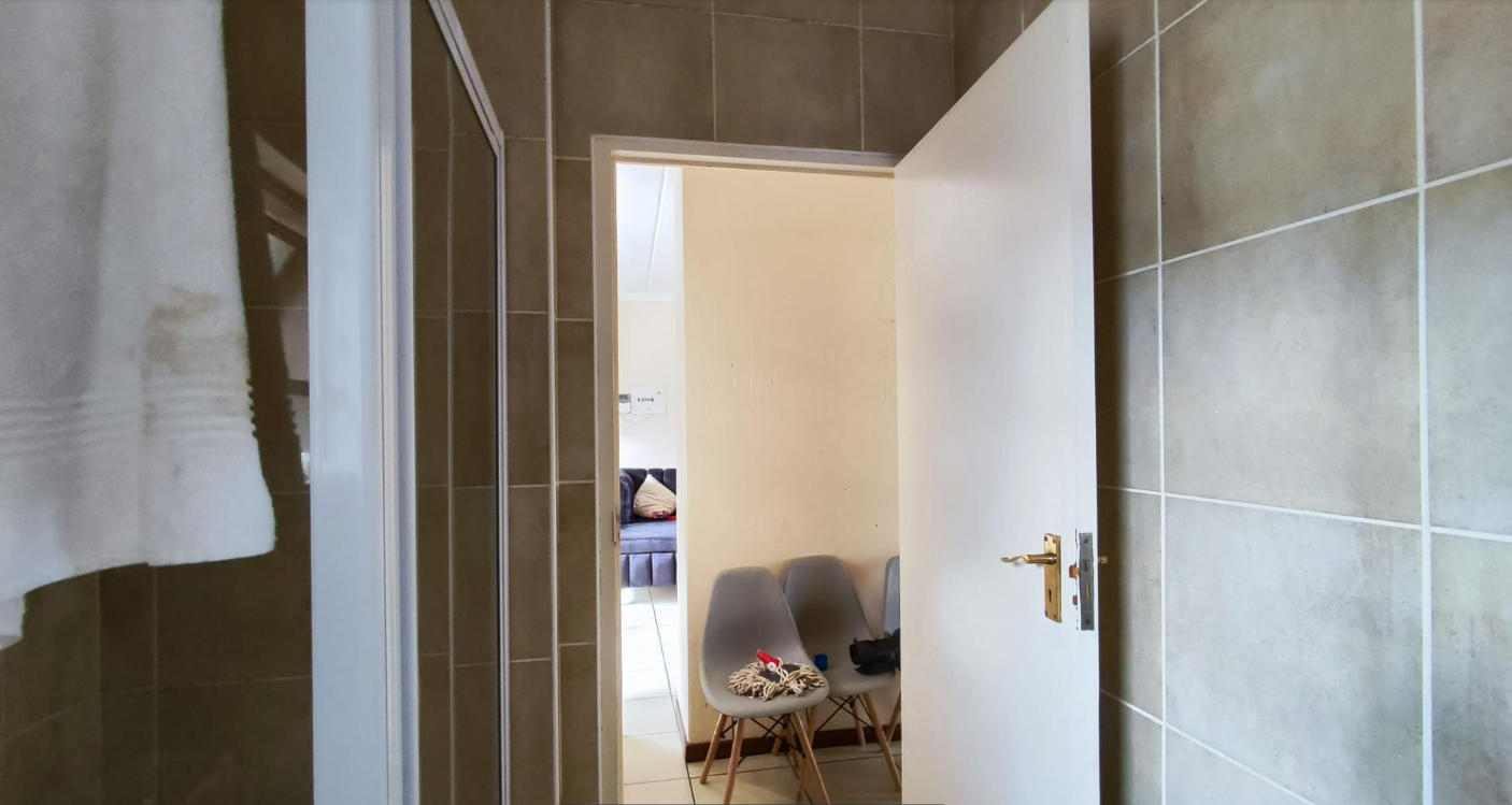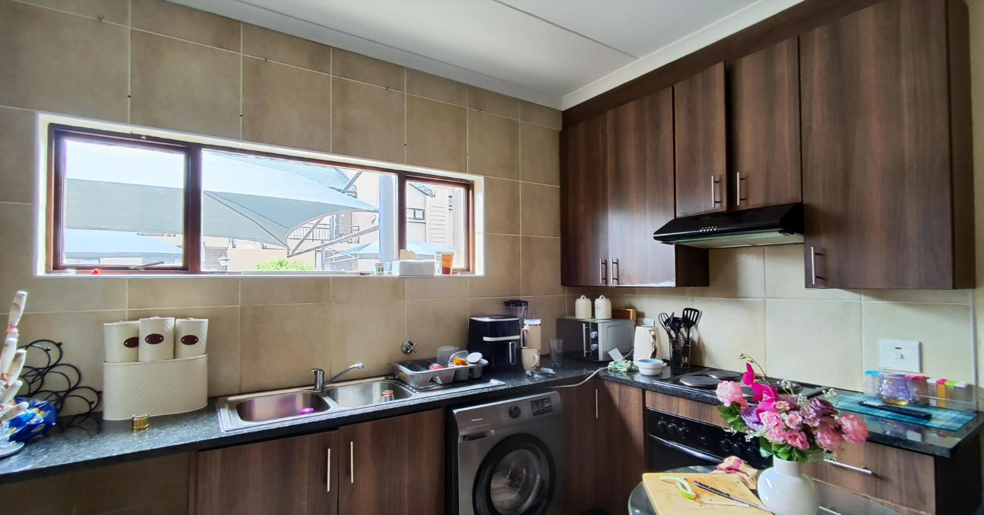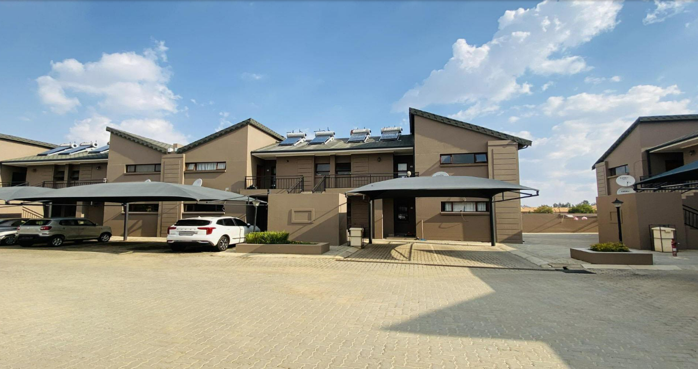 This modern 2-bedroom, 1-bathroom unit is nestled within a secure estate in the desirable Helderwyk suburb of Brakpan. The complex showcases a contemporary design with neutral-toned facades and well-maintained paved pathways, creating an inviting first impression. Residents benefit from 24-hour security and access gate control, ensuring peace of mind within this well-managed security estate. Inside, the 58 sqm floor plan features an open-plan living area that seamlessly connects to the kitchen. The interior boasts practical tiled flooring and neutral walls. The kitchen is equipped with modern dark wood-look cabinetry, a built-in oven and hob, a double sink, and convenient space for a washing machine, all illuminated by natural light. The unit offers two comfortable bedrooms, each featuring built-in wardrobes for ample storage and good natural light, complemented by a well-appointed bathroom. Further enhancing the lifestyle, the property includes one dedicated covered parking bay. The estate also features solar water heaters, contributing to energy efficiency, and residents can enjoy access to a communal gym. This property presents an excellent opportunity for secure, modern living in Brakpan, providing easy access to local amenities and transport routes. Key Features: * 2 Bedrooms, 1 Bathroom * 58 sqm Floor Size * Open-Plan Living Area * Modern Kitchen with Built-in Oven/Hob * Built-in Wardrobes * 1 Covered Parking Bay * Solar Water Heaters * Access to Estate Gym * 24-Hour Security Estate * Paved Areas
