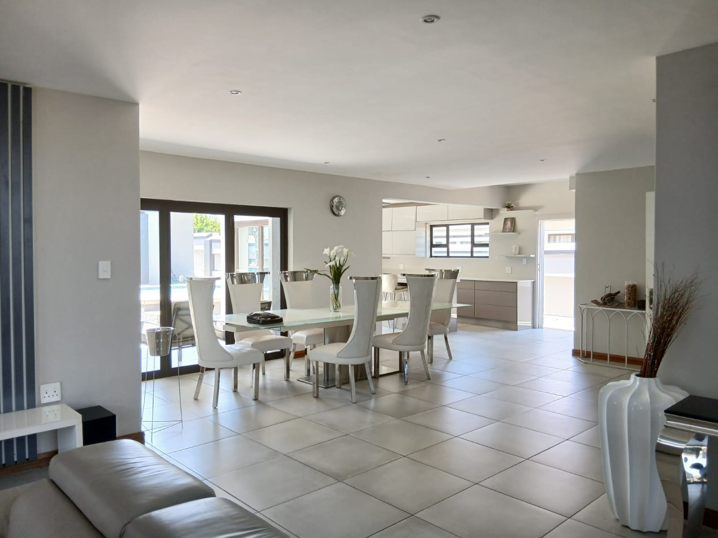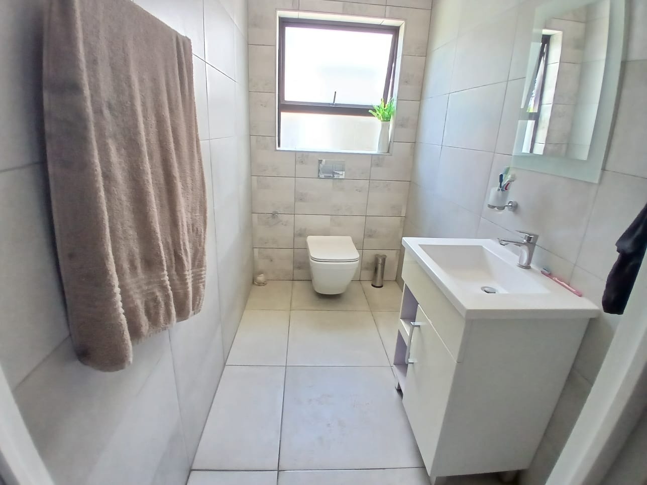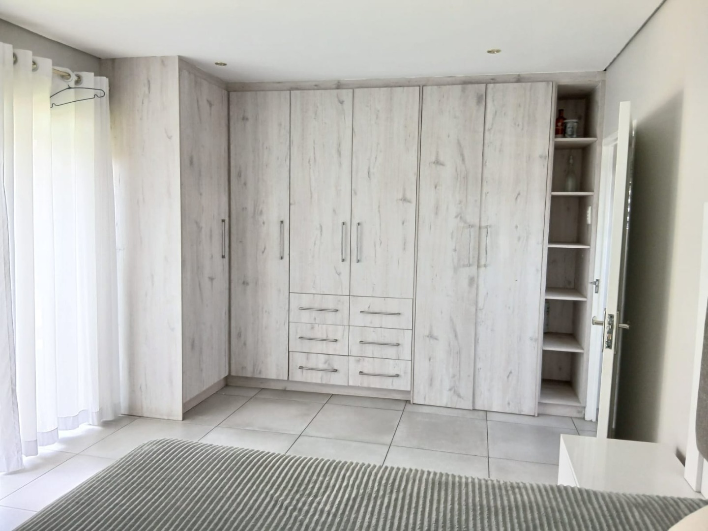 Outdoor amenities include a refreshing swimming pool, complemented by a built-in braai within the garden for al fresco dining. A double garage and additional paved parking for four vehicles provide ample convenience. Security is paramount, with 24-hour surveillance, an access gate, an alarm system, and a security gate ensuring comprehensive peace of mind. Fibre connectivity is available, and pets are permitted. Helderwyk offers a desirable lifestyle within a secure and well-regarded community.