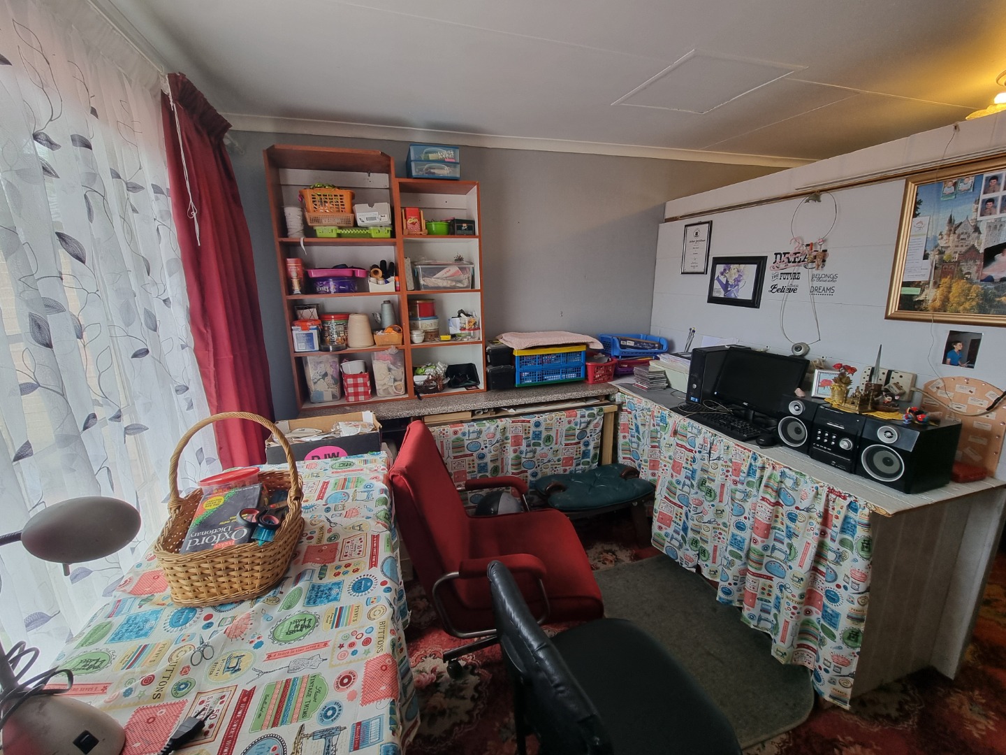 The residence comprises three comfortable bedrooms, including one with an en-suite bathroom, ensuring privacy and convenience. Each bedroom offers ample space, with one featuring extensive wardrobe storage. Outdoor amenities include a secure access gate and a paved driveway, leading to two garages and additional parking for three vehicles, catering to all your parking needs. The property is pet-friendly, allowing your furry companions to enjoy the space.