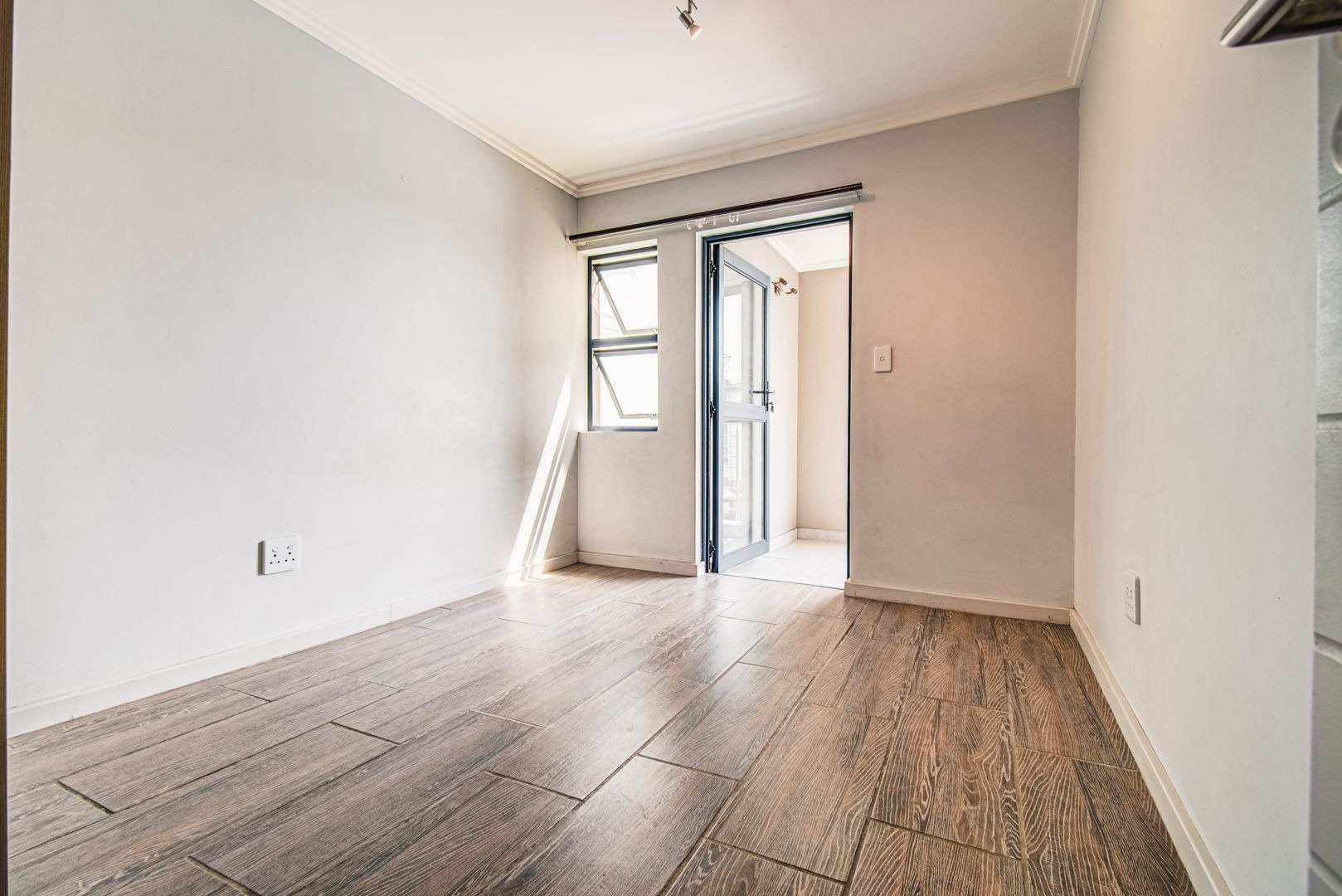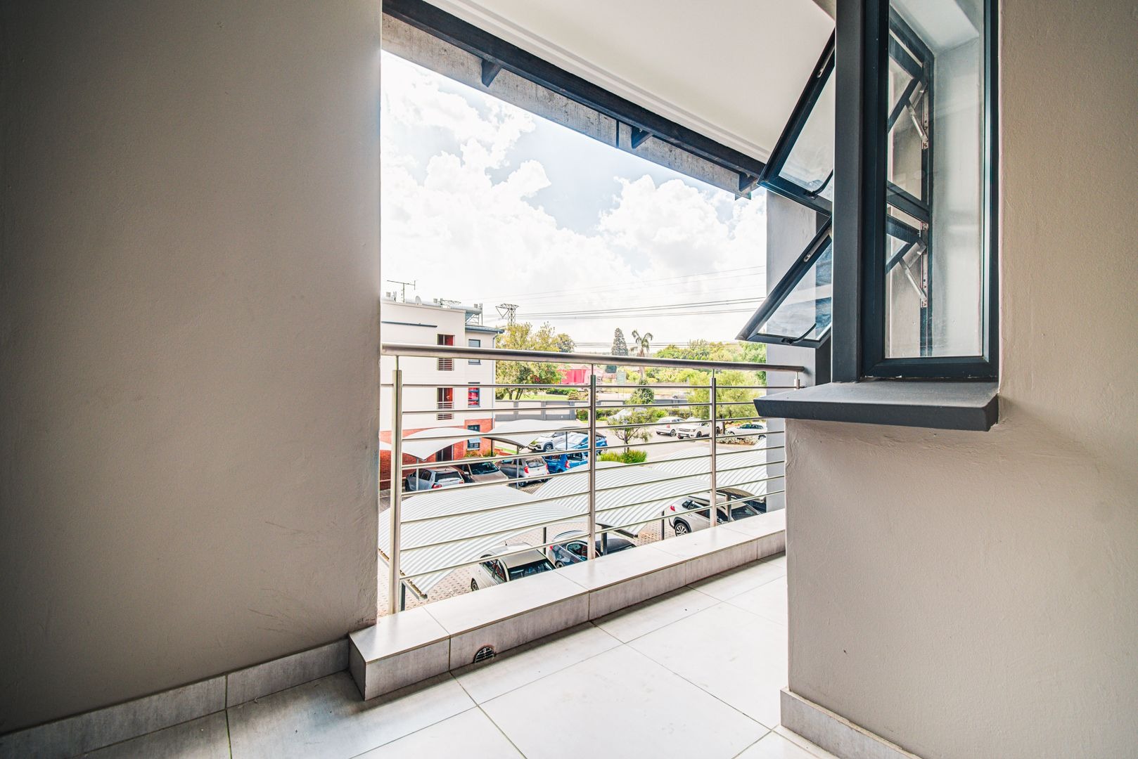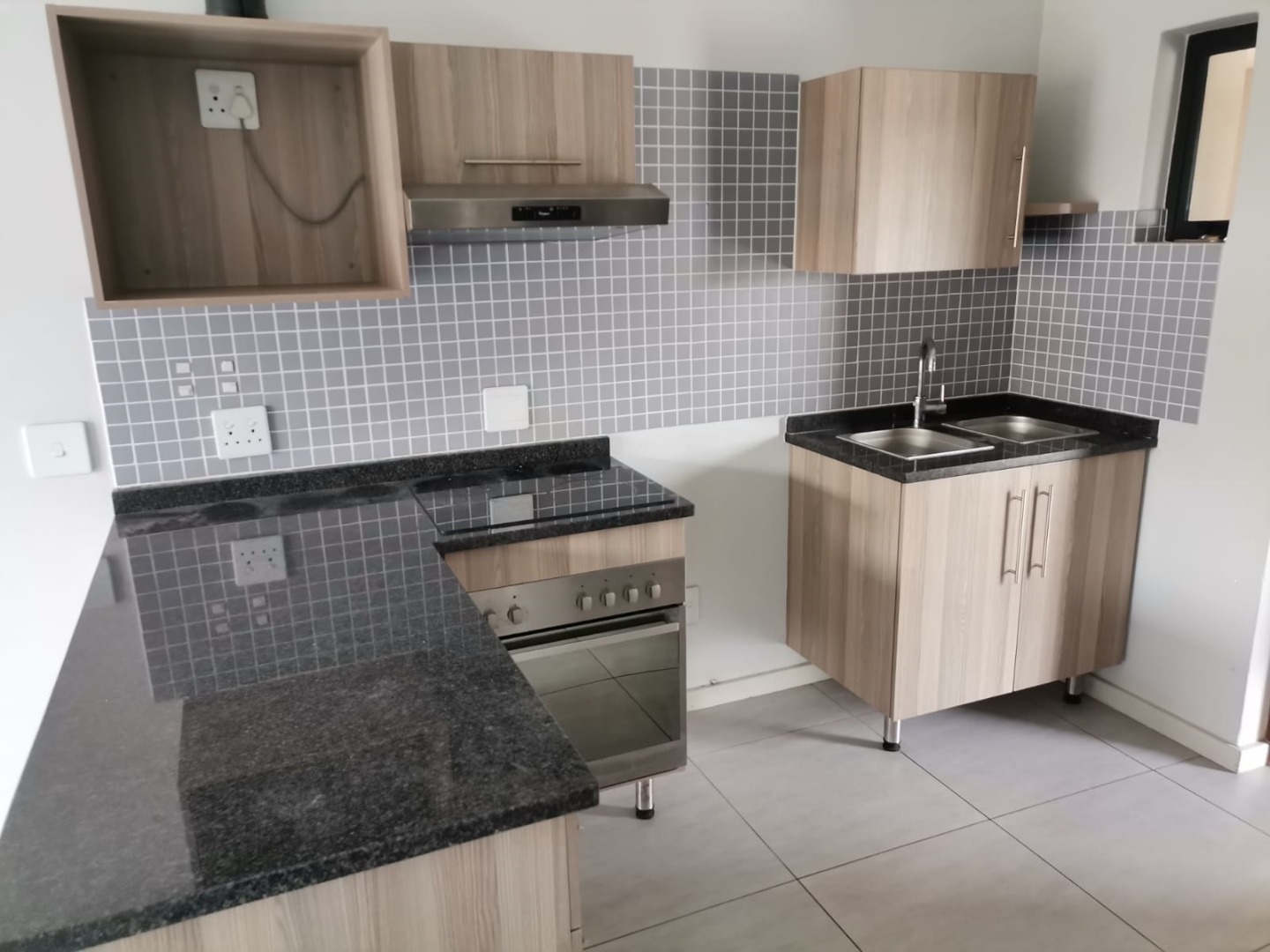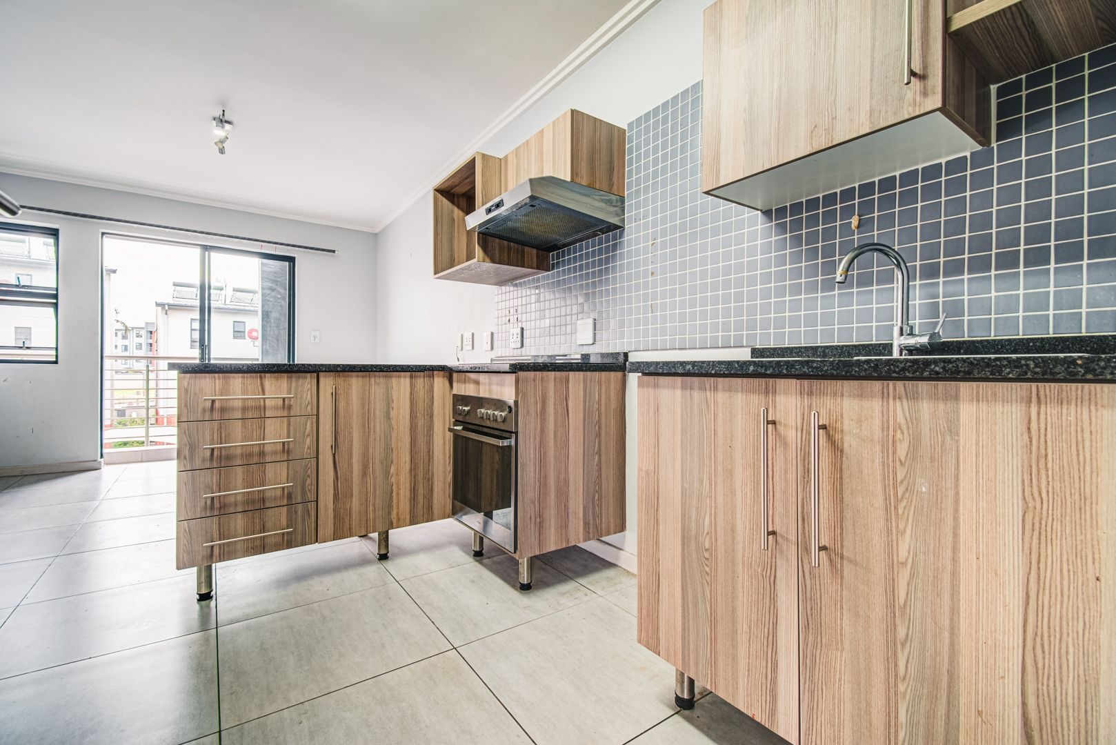 Discover modern living in this inviting 1-bedroom, 1-bathroom apartment, perfectly situated within the secure The Curve residential complex in Eden Glen, Edenvale. Spanning a comfortable 47.00 sqm, this unit offers a contemporary open-plan layout designed for effortless living. The kitchen is a highlight, featuring sleek wood-look cabinetry, dark countertops, a stylish tiled backsplash, and includes a built-in oven with a hob and extractor fan, catering to all your culinary needs. The living area seamlessly connects to a private balcony, providing a pleasant outdoor space for relaxation.