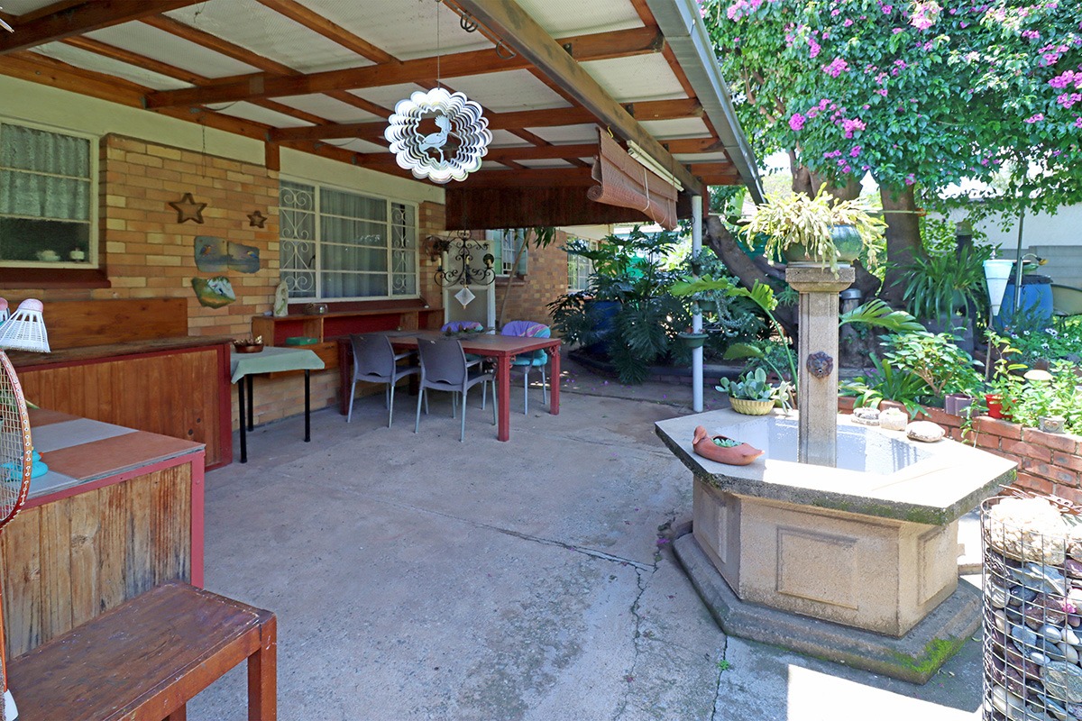 Outdoor living is a highlight, with a spacious covered patio perfect for dining and relaxation, overlooking the tranquil garden which includes a decorative water feature. The property also benefits from a single garage, an additional parking space, a flatlet, staff quarters, and outside toilets, adding to its versatility and convenience. Pets are allowed, making it an ideal family home.
