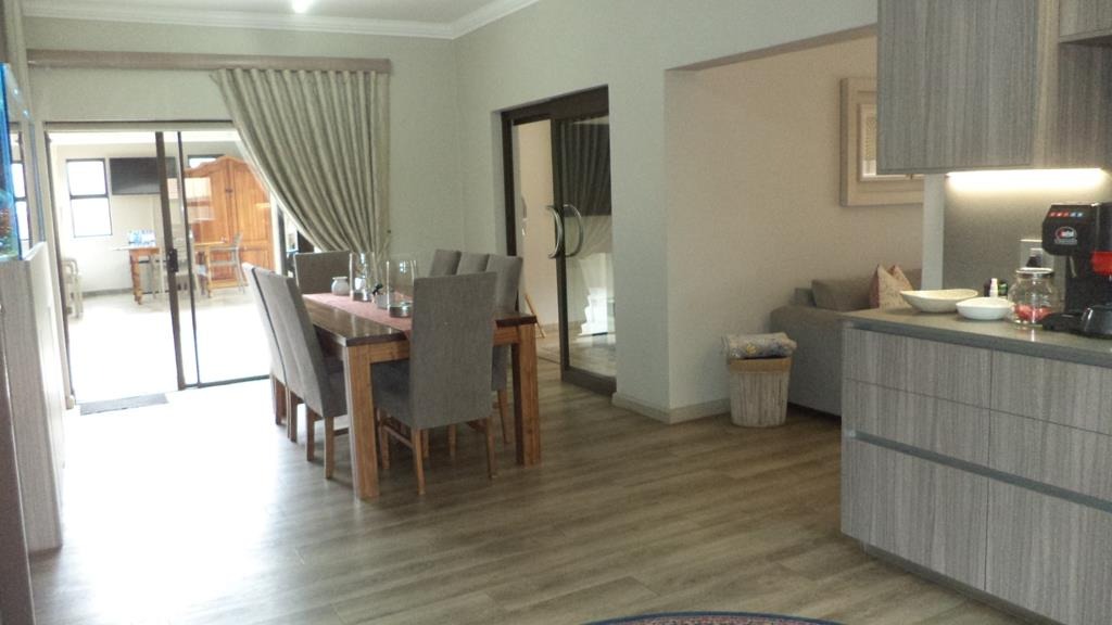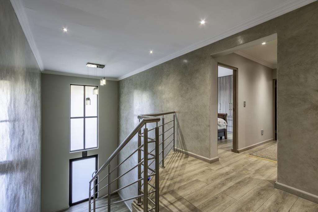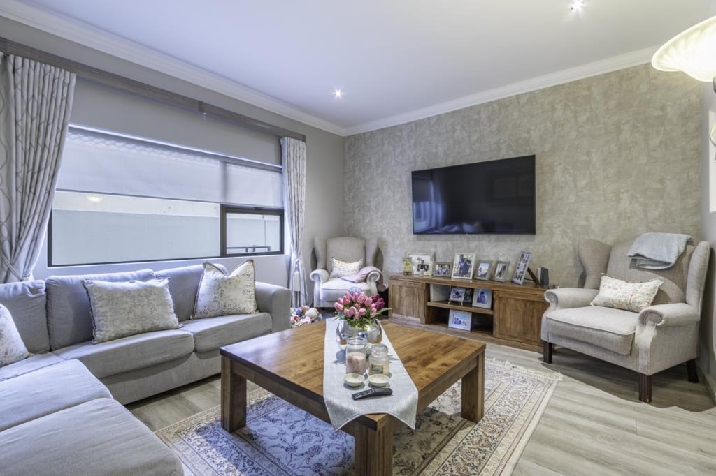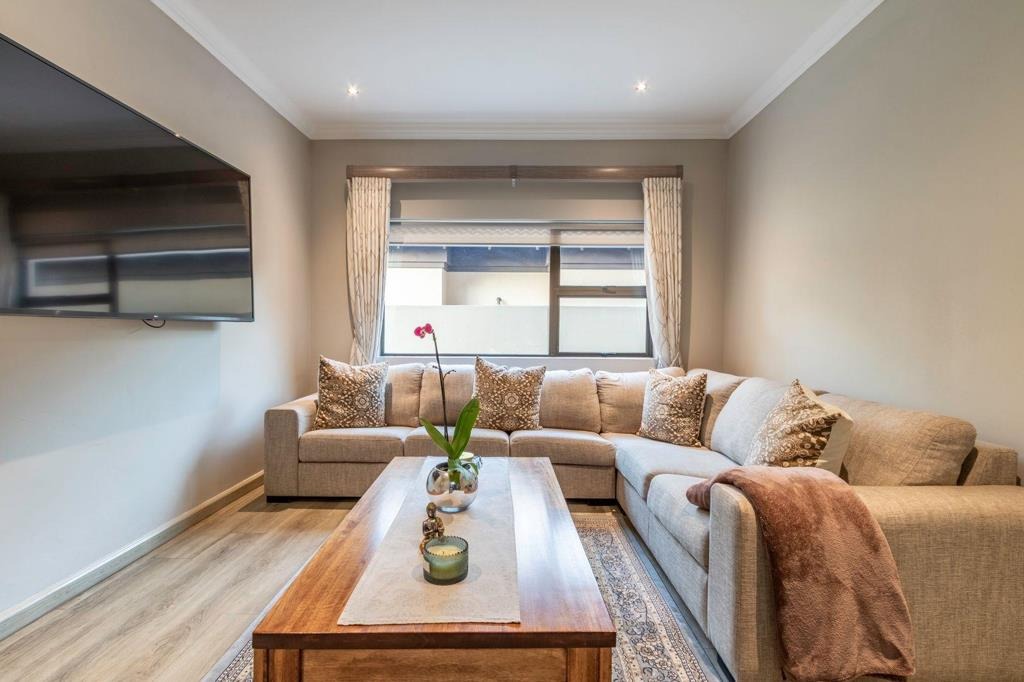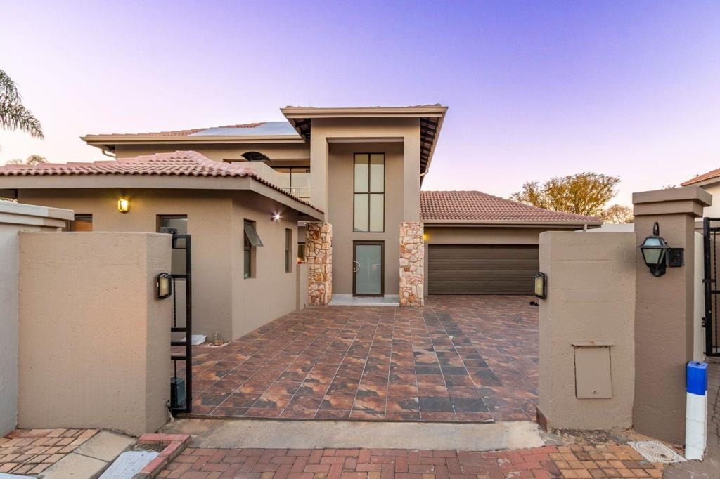 Discover this modern 3-bedroom, 2-bathroom residence nestled within a secure estate in Greenstone Hill, Edenvale. The property boasts a contemporary architectural design with attractive stone accents and a prominent, well-lit entrance, ensuring excellent kerb appeal. Enjoy peace of mind with a secure perimeter wall, access gate, intercom, and 24-hour security.