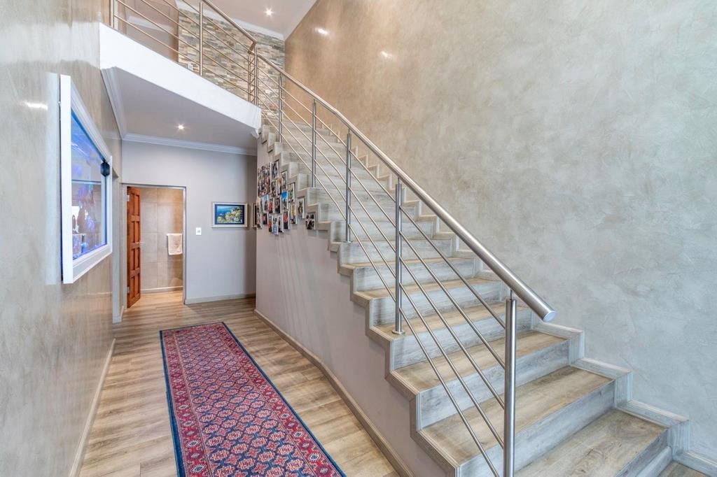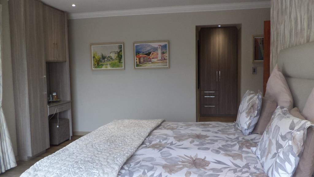 Discover this modern 3-bedroom, 2-bathroom residence nestled within a secure estate in Greenstone Hill, Edenvale. The property boasts a contemporary architectural design with attractive stone accents and a prominent, well-lit entrance, ensuring excellent kerb appeal. Enjoy peace of mind with a secure perimeter wall, access gate, intercom, and 24-hour security.
