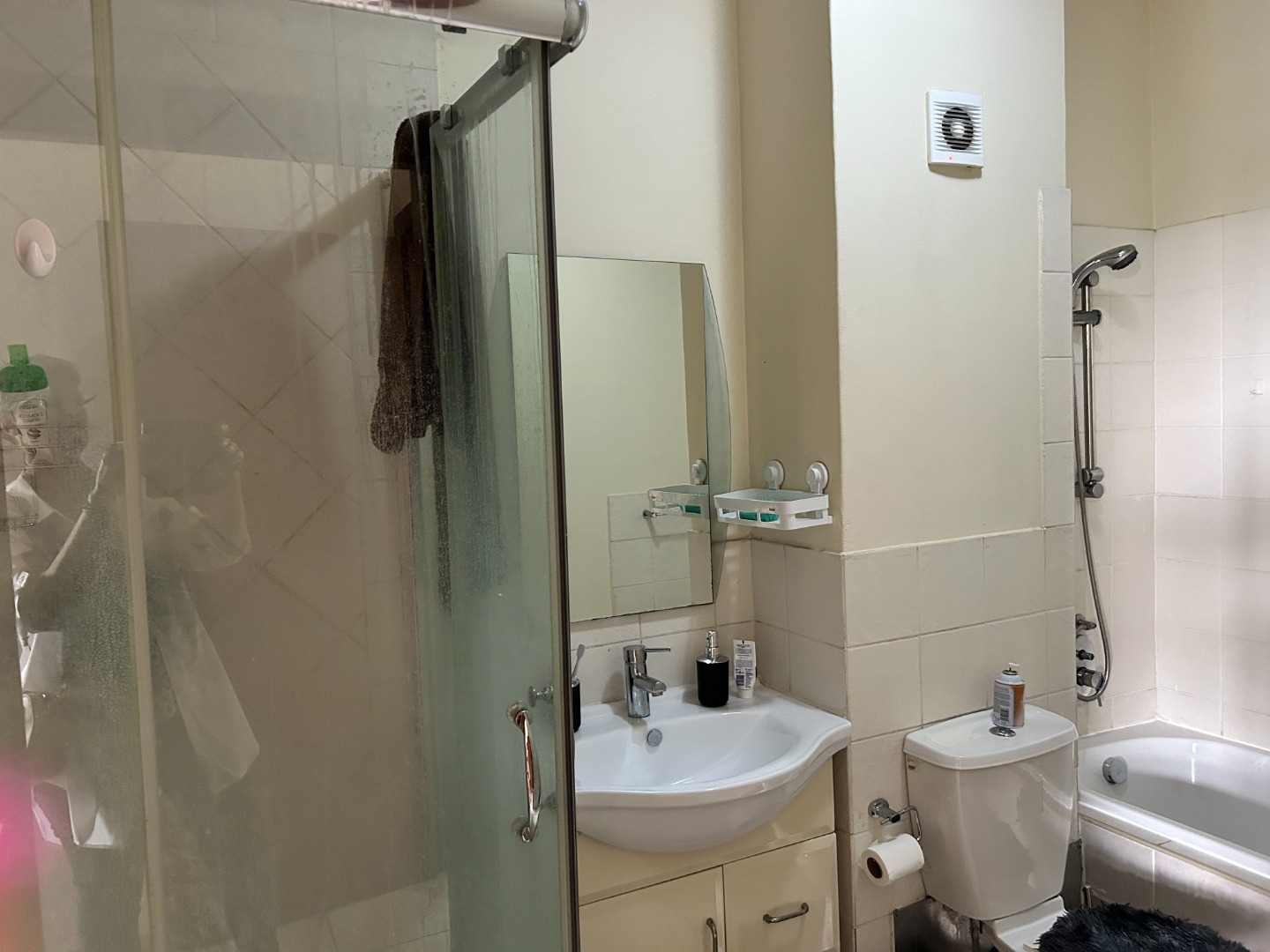 The bathroom is complete and well-appointed, offering a bath, shower, vanity and loo — designed for flexibility and convenience.