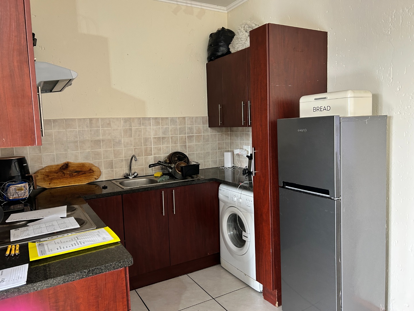 The kitchen is fitted with black granite countertops and ample cupboard space, with provision for one undercounter appliance and a fridge. The layout is efficient and easy to manage.