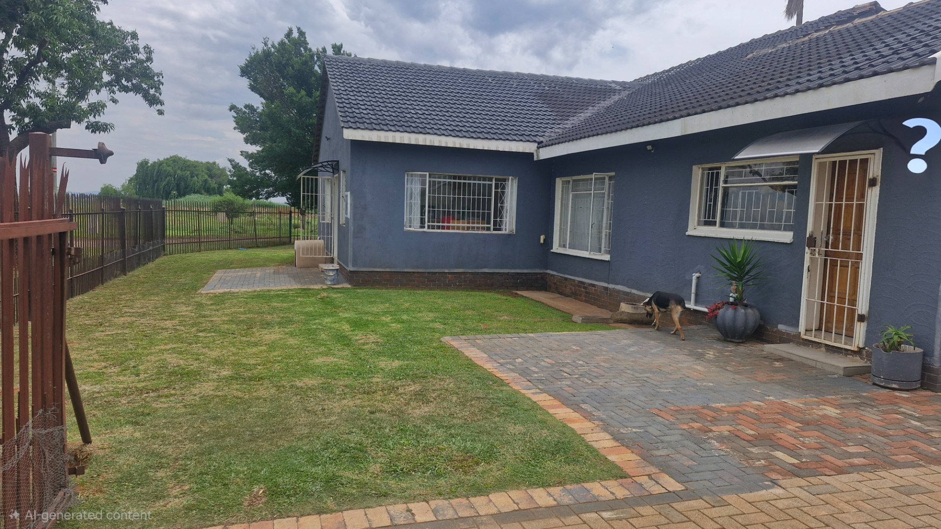 THIS MASSIVE PROPERTY IS LOCATED IN A CORNER STAND CONSIST OF THREE BEDROOMS MAIN WITH INSUITE, OPEN PLAN LOUNGE, DINNING ROOM KITCHEN AND SECOND BATH , WITH TWO OUTSIDE COTTAGES AND DOUBLE GARAGE. ITS A CORNER HOUSE WITH HUGE YARD WITH LOTS OF POTENTIAL FOR FURTHER EXPANSION CLOSE TO SHOPS AND SCHOOLS. ELSPARK IS WELL DEVELOPED AREA CLOSE TO ALL AMMENITIES AND JUST OFF N17 HIGHWAY TO JOBURG AND SPRINGS AND R21 TO OR TAMBO AIRPORT JUST 15 MINUTES AWAY