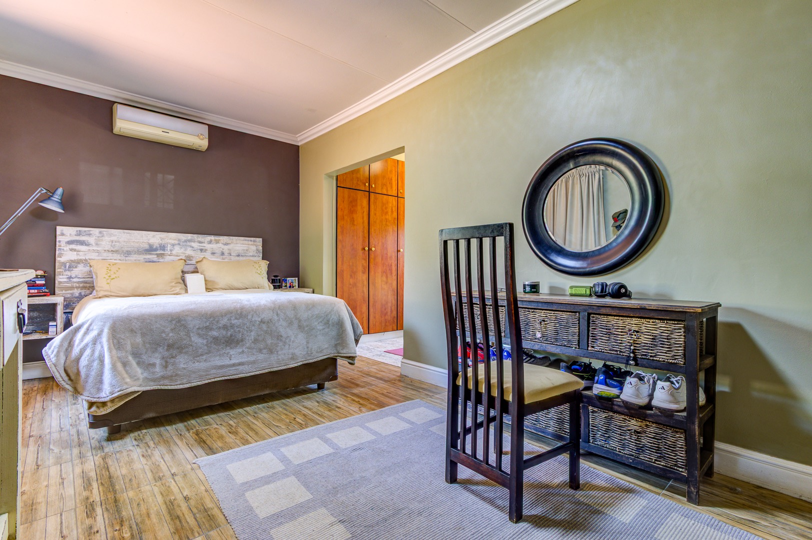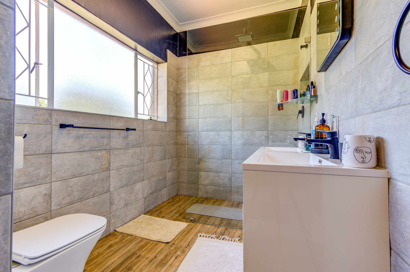 Discover this charming 4-bedroom, 2.5-bathroom residential sale property located in Germiston Central, Germiston, South Africa. Boasting a generous Erf size of 1592 sqm and a floor size of 308 sqm, this home offers ample space for comfortable family living. The property immediately impresses with its excellent kerb appeal, featuring a beautifully landscaped garden, paved driveway, and a convenient carport providing two parking spaces. The exterior is enhanced by an extensive solar panel system, ensuring energy efficiency and reduced utility costs. A highlight is the spacious, enclosed sunroom, perfect for relaxation or entertaining, offering abundant natural light and views of the lush garden. Inside, the home presents a welcoming lounge area with a prominent fireplace, ideal for cooler evenings. Modern wood-look tiled flooring flows throughout, complemented by air conditioning for year-round comfort. The well-appointed kitchen caters to all culinary needs, while a dedicated laundry room adds to the home's practicality. Accommodation includes four comfortable bedrooms, with one featuring an ensuite bathroom, alongside an additional 1.5 bathrooms. The outdoor space is a true oasis, featuring a sparkling swimming pool and a well-maintained garden, providing a private retreat. For peace of mind, the property is equipped with an alarm system, electric fencing, and CCTV. Germiston Central offers a convenient suburban lifestyle within the broader Germiston area, providing access to local amenities and transport routes. This home combines classic charm with modern efficiencies, making it an ideal family residence.