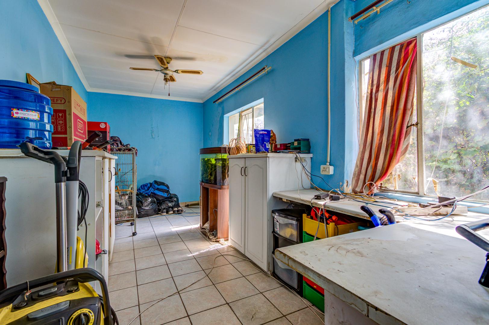 A sliding door connects the home to the workshop, currently in use but offering exciting potential to be converted into a second, smaller house or cottage. The Wendy house, once used as an office, adds further flexibility. Attached to the workshop is a double garage, while the expansive erf presents subdivision possibilities for those seeking investment value.