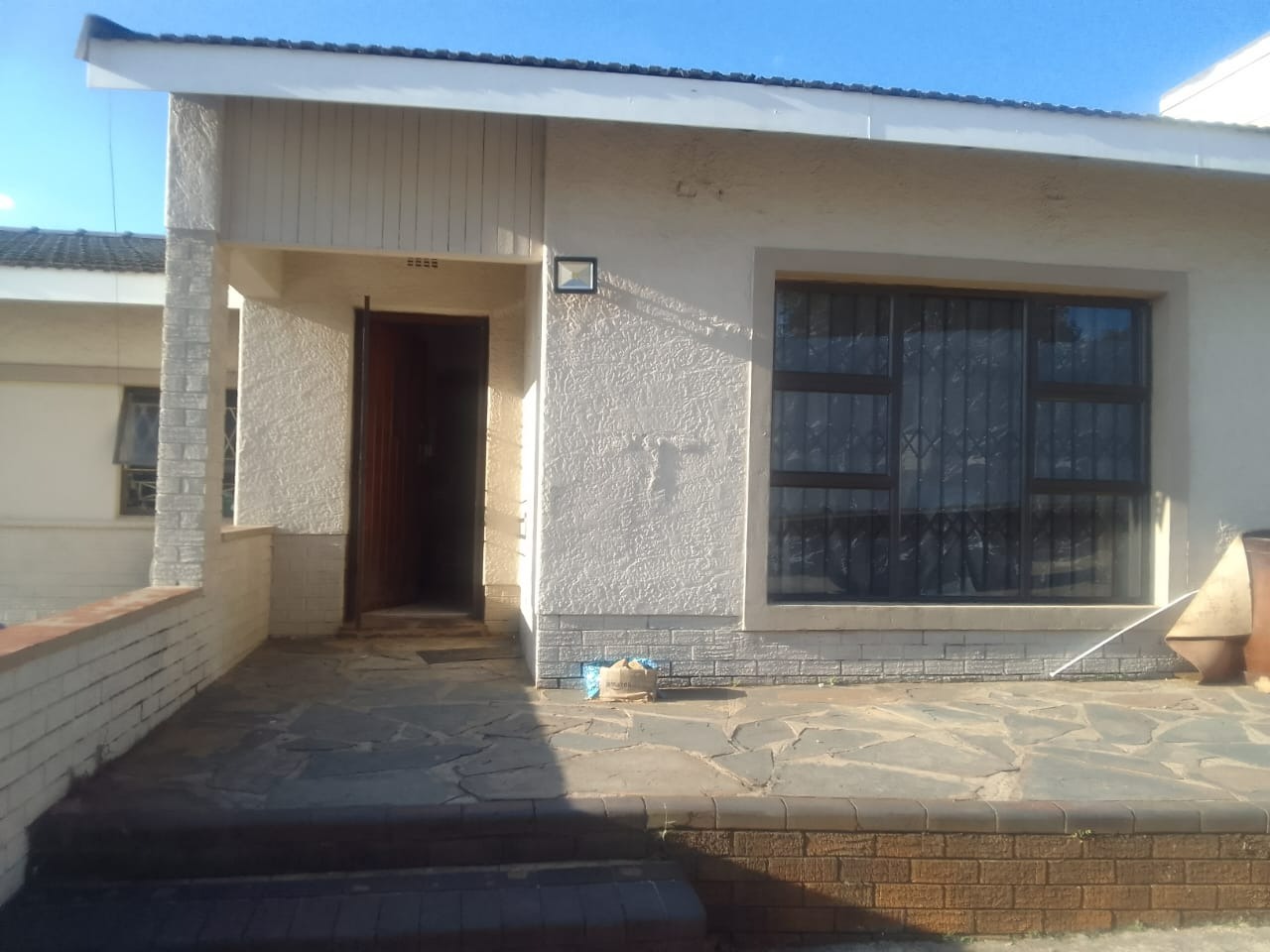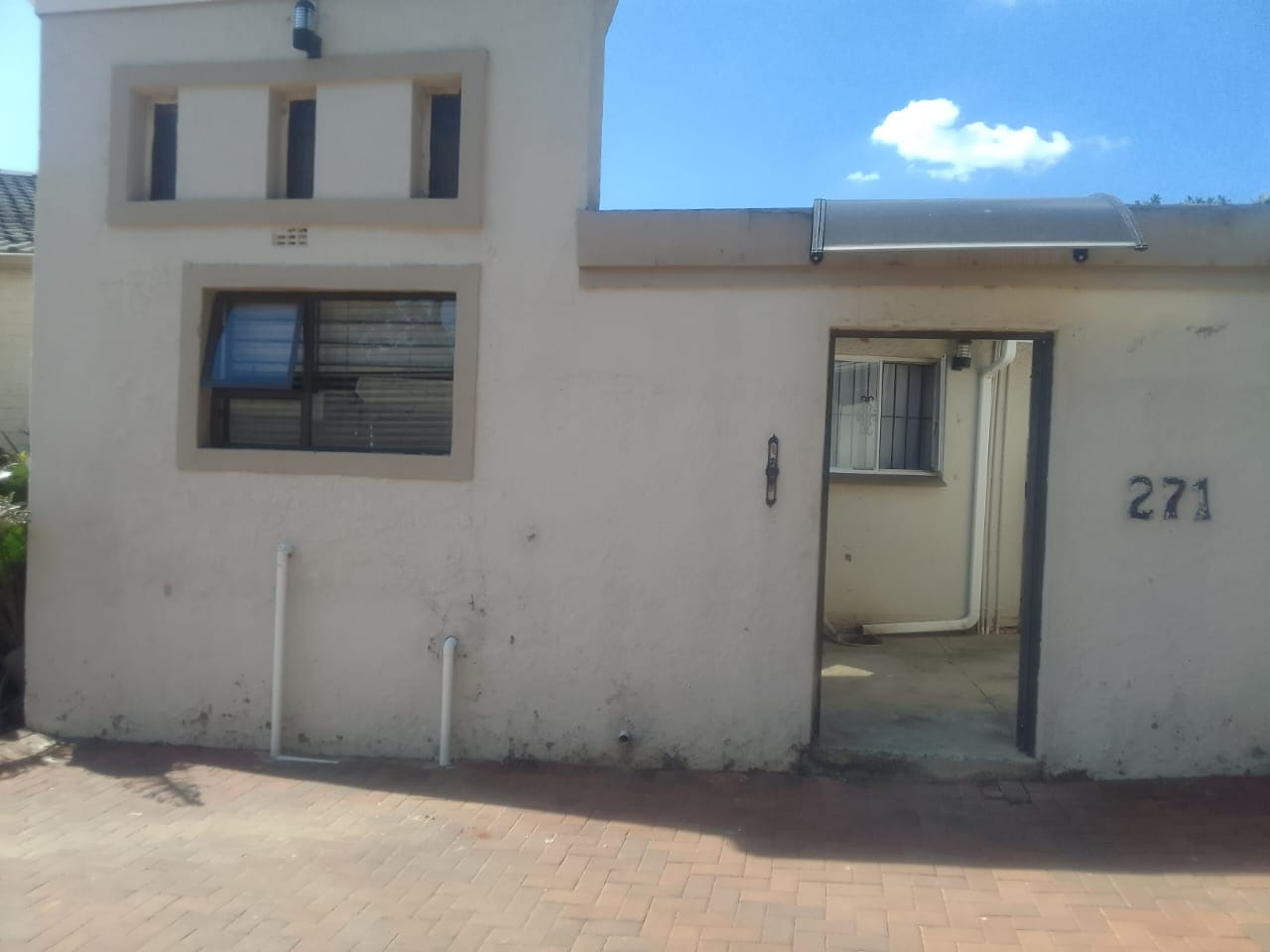 Security is a key feature, with robust security gates at entrances and burglar bars on windows, providing peace of mind. The property benefits from a large paved outdoor area, ideal for low-maintenance living, and includes access to a communal braai area, perfect for social gatherings. A satellite dish is also installed, catering to modern connectivity needs.