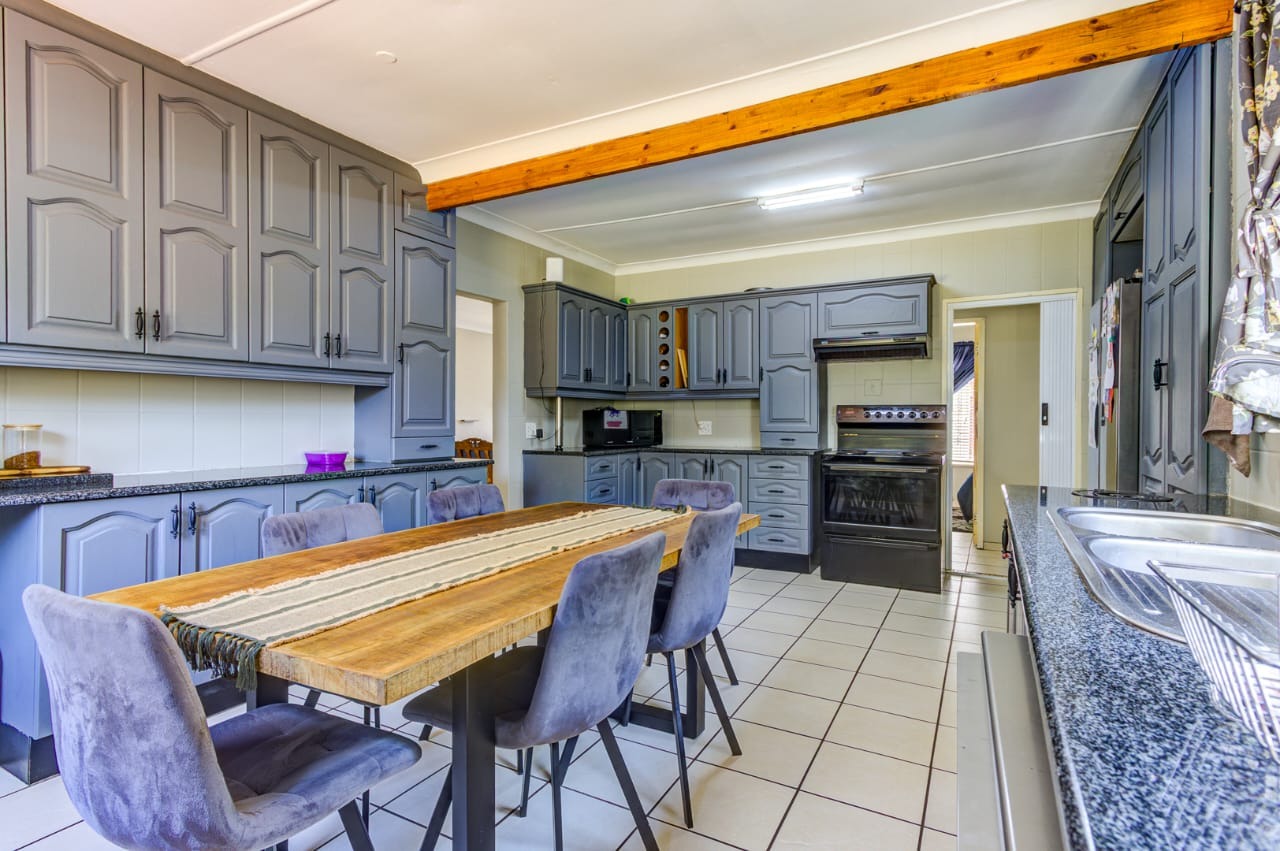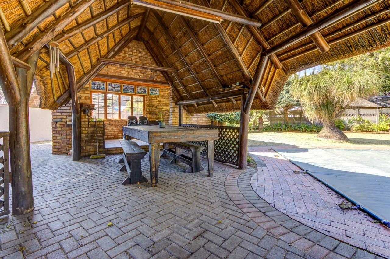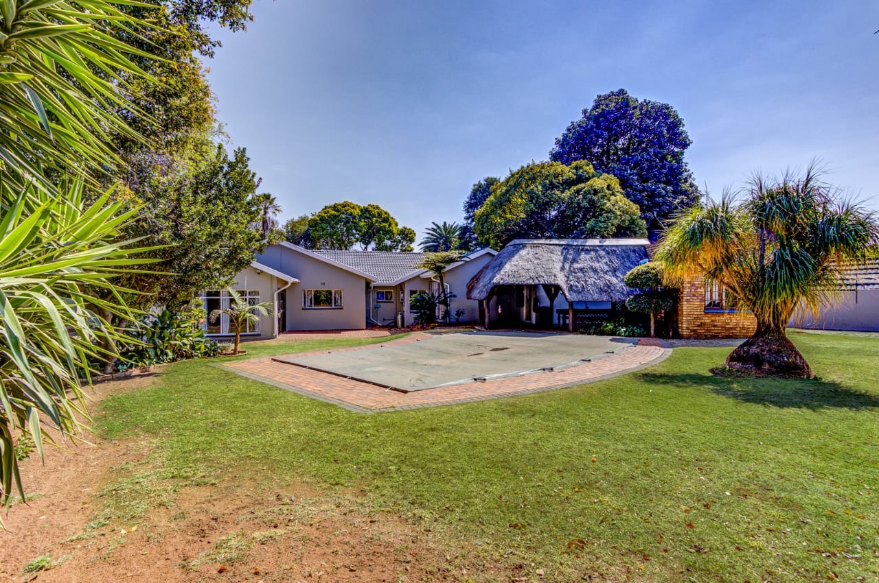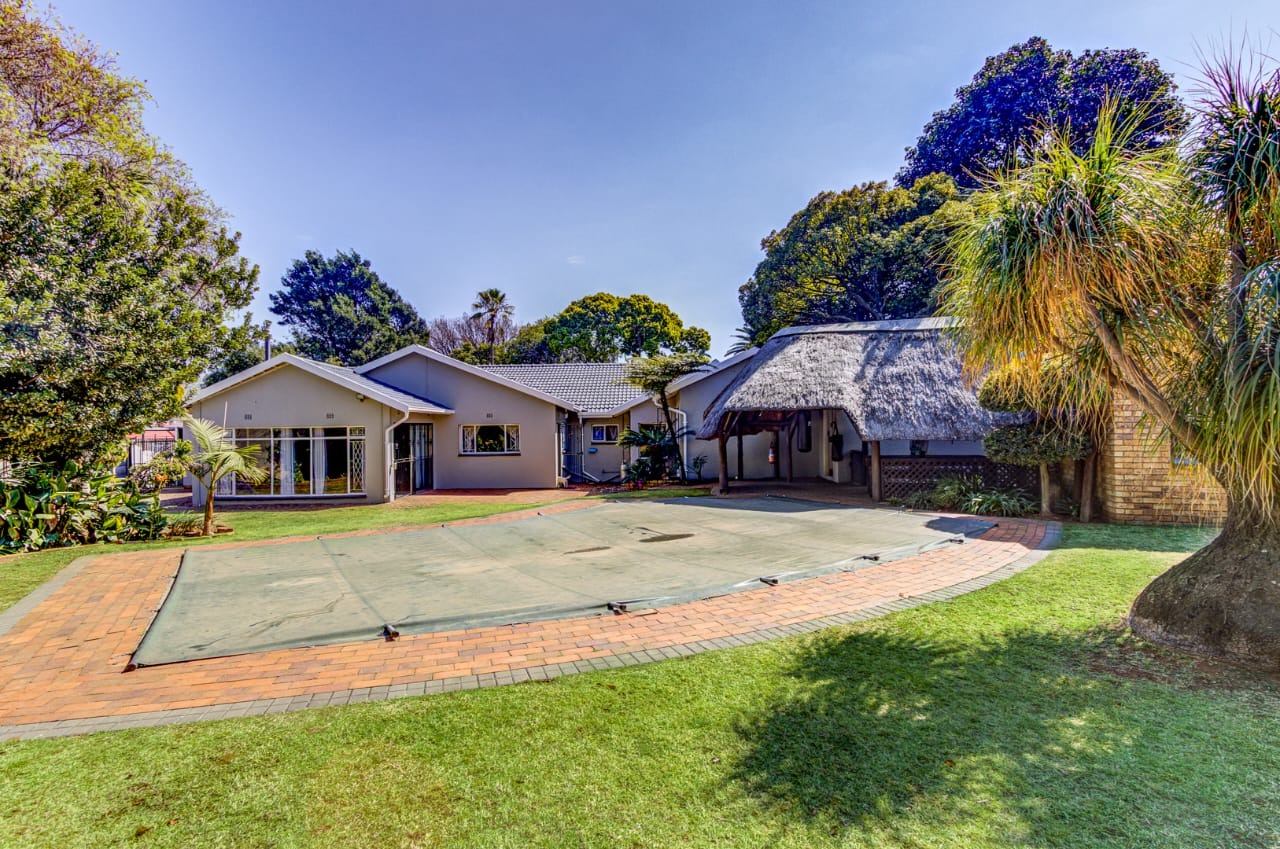 This distinguished single-story residence, situated within a gated community in Kempton Park, presents an exceptional opportunity for discerning buyers. Boasting a well-maintained grey exterior and a tiled roof, the property immediately conveys a sense of established quality. The expansive front lawn, complemented by mature trees, enhances its kerb appeal, while a long brick-paved driveway leads to a double garage and an additional double carport, ensuring ample secure parking for multiple vehicles. The interior comprises four well-proportioned bedrooms and two bathrooms, providing comfortable accommodation for a family. The functional kitchen is equipped with extensive grey cabinetry, dark countertops, and tiled flooring, seamlessly integrating a dining area for convenience. This central hub is complemented by a dedicated dining room and two spacious lounges, offering versatile living and entertaining spaces. Further enhancing functionality are a dedicated study, a pantry, and a laundry room. Outdoor living is a significant feature of this property, set on a generous 1487 sqm erf. The meticulously maintained garden hosts a covered swimming pool and a charming thatched lapa, perfect for outdoor entertaining and relaxation. A built-in braai further enhances the al fresco dining experience. The property also benefits from extensive paving, a flatlet, staff quarters, and outside toilets, adding to its practical amenities. Pets are permitted, catering to family needs. Security is paramount, with the residence located within a gated community featuring 24-hour security, an alarm system, security post, access gate, electric fencing, burglar bars, and security gates. Modern conveniences include air conditioning and fibre connectivity. Situated in Allen Grove, Kempton Park, this location offers a desirable suburban lifestyle with convenient access to local amenities and transport routes. Key Features: * Four Bedrooms, Two Bathrooms * Double Garage, Double Carport * Swimming Pool & Thatched Lapa * Gated Community with 24-Hour Security * Air Conditioning & Fibre Connectivity * Spacious 1487 sqm Erf with Garden * Dedicated Study, Pantry, Laundry * Flatlet & Staff Quarters