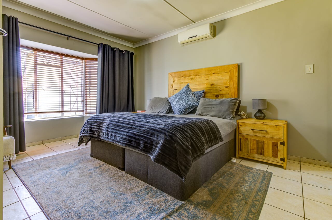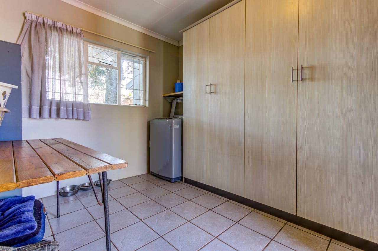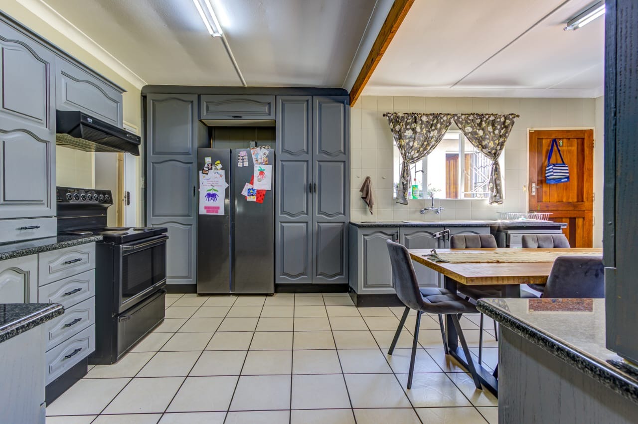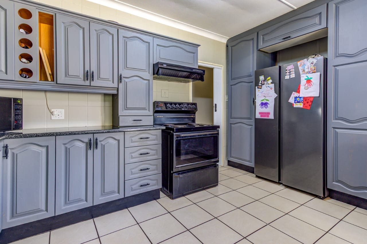 This distinguished single-story residence, situated within a gated community in Kempton Park, presents an exceptional opportunity for discerning buyers. Boasting a well-maintained grey exterior and a tiled roof, the property immediately conveys a sense of established quality. The expansive front lawn, complemented by mature trees, enhances its kerb appeal, while a long brick-paved driveway leads to a double garage and an additional double carport, ensuring ample secure parking for multiple vehicles. The interior comprises four well-proportioned bedrooms and two bathrooms, providing comfortable accommodation for a family. The functional kitchen is equipped with extensive grey cabinetry, dark countertops, and tiled flooring, seamlessly integrating a dining area for convenience. This central hub is complemented by a dedicated dining room and two spacious lounges, offering versatile living and entertaining spaces. Further enhancing functionality are a dedicated study, a pantry, and a laundry room. Outdoor living is a significant feature of this property, set on a generous 1487 sqm erf. The meticulously maintained garden hosts a covered swimming pool and a charming thatched lapa, perfect for outdoor entertaining and relaxation. A built-in braai further enhances the al fresco dining experience. The property also benefits from extensive paving, a flatlet, staff quarters, and outside toilets, adding to its practical amenities. Pets are permitted, catering to family needs. Security is paramount, with the residence located within a gated community featuring 24-hour security, an alarm system, security post, access gate, electric fencing, burglar bars, and security gates. Modern conveniences include air conditioning and fibre connectivity. Situated in Allen Grove, Kempton Park, this location offers a desirable suburban lifestyle with convenient access to local amenities and transport routes. Key Features: * Four Bedrooms, Two Bathrooms * Double Garage, Double Carport * Swimming Pool & Thatched Lapa * Gated Community with 24-Hour Security * Air Conditioning & Fibre Connectivity * Spacious 1487 sqm Erf with Garden * Dedicated Study, Pantry, Laundry * Flatlet & Staff Quarters