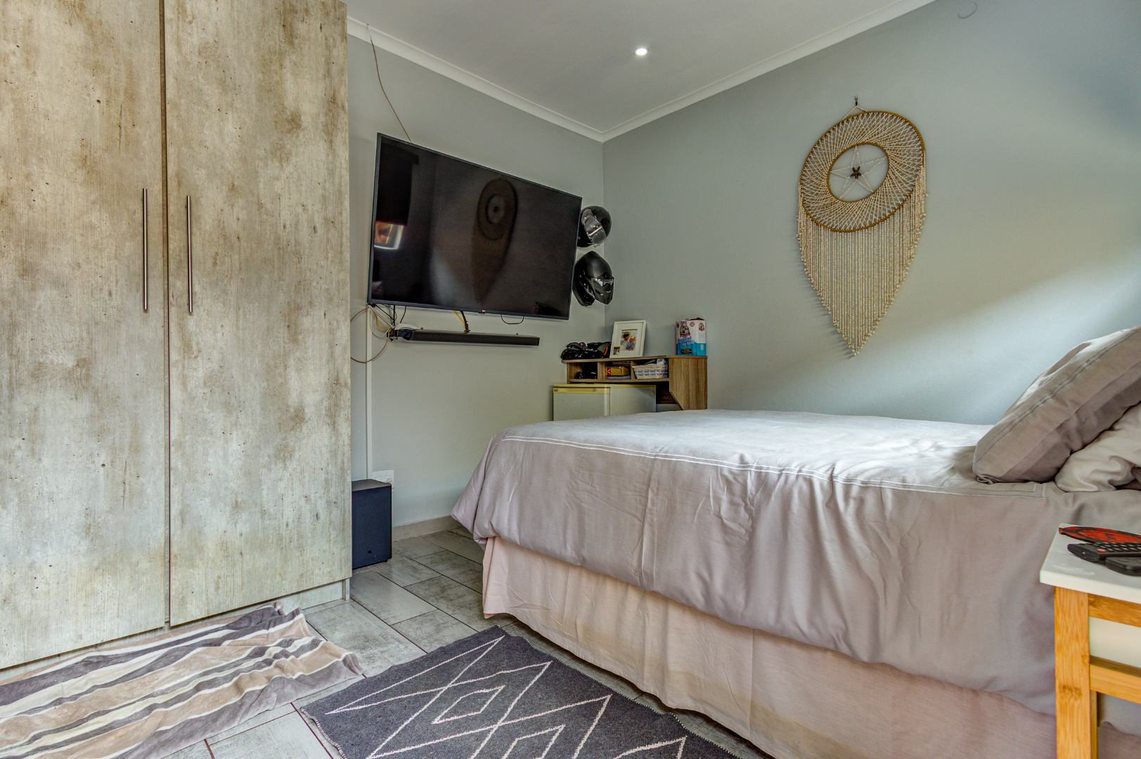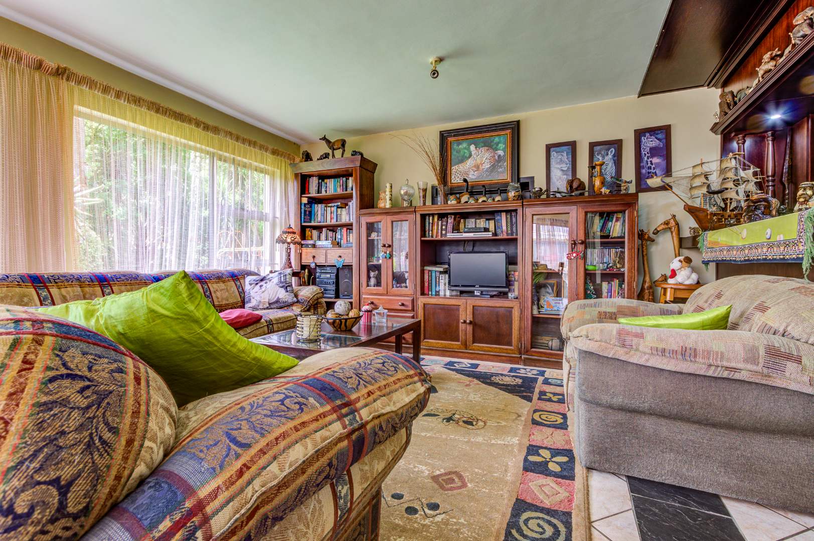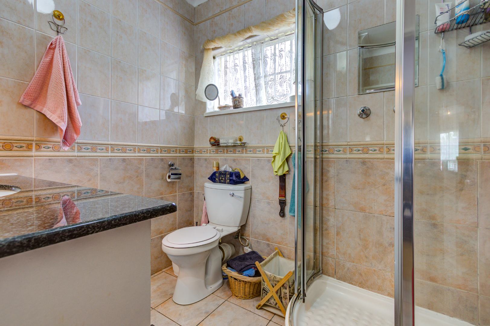 This home offers four well-sized Bedrooms with built-in cupboards and garden views, as well as two full Bathrooms. The main bedroom includes a sunlounge and more cupboards and an en-suite bathroom with shower and Full height display vanity.