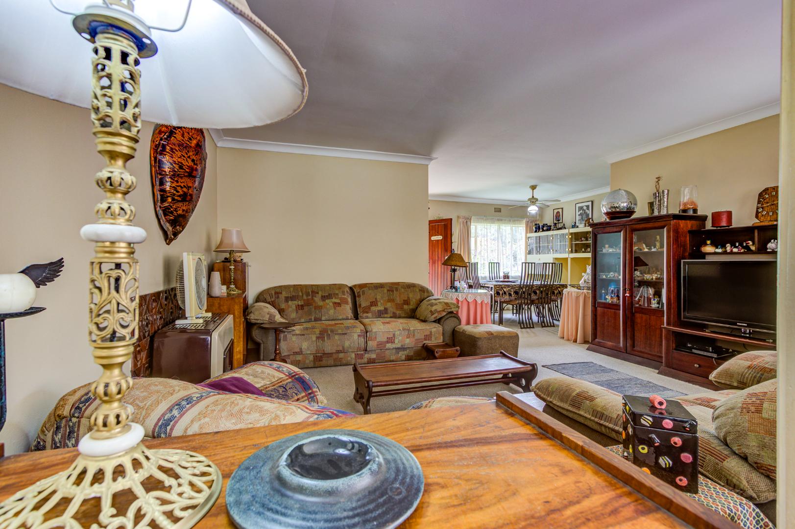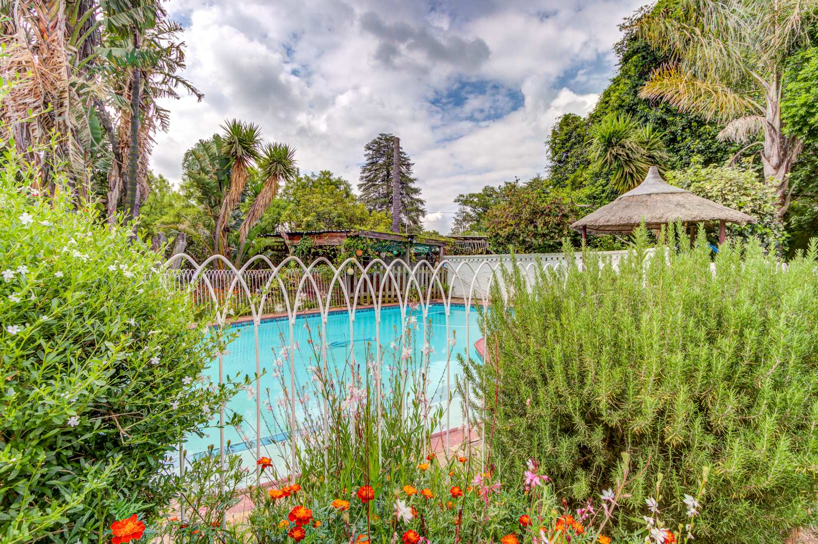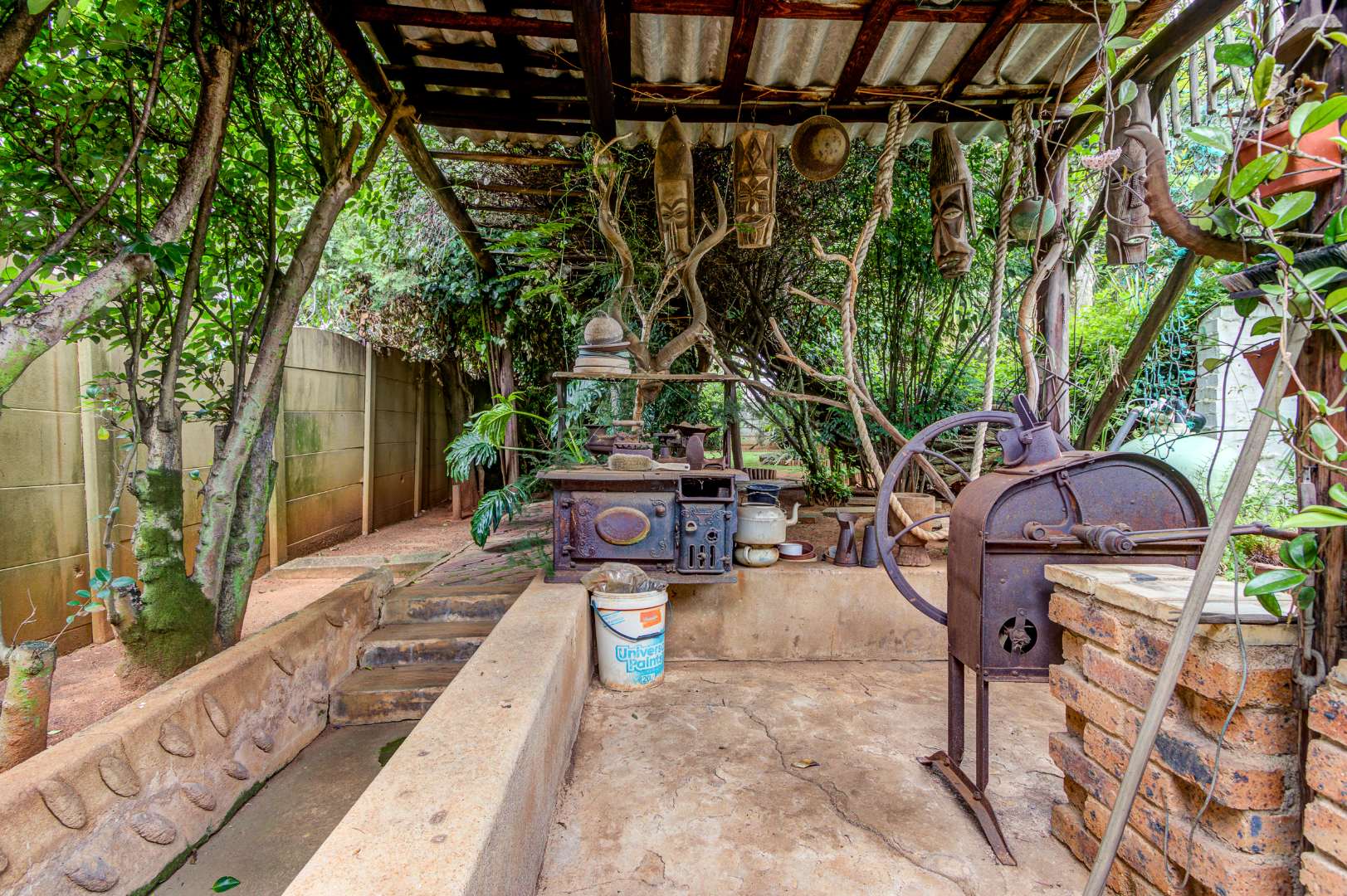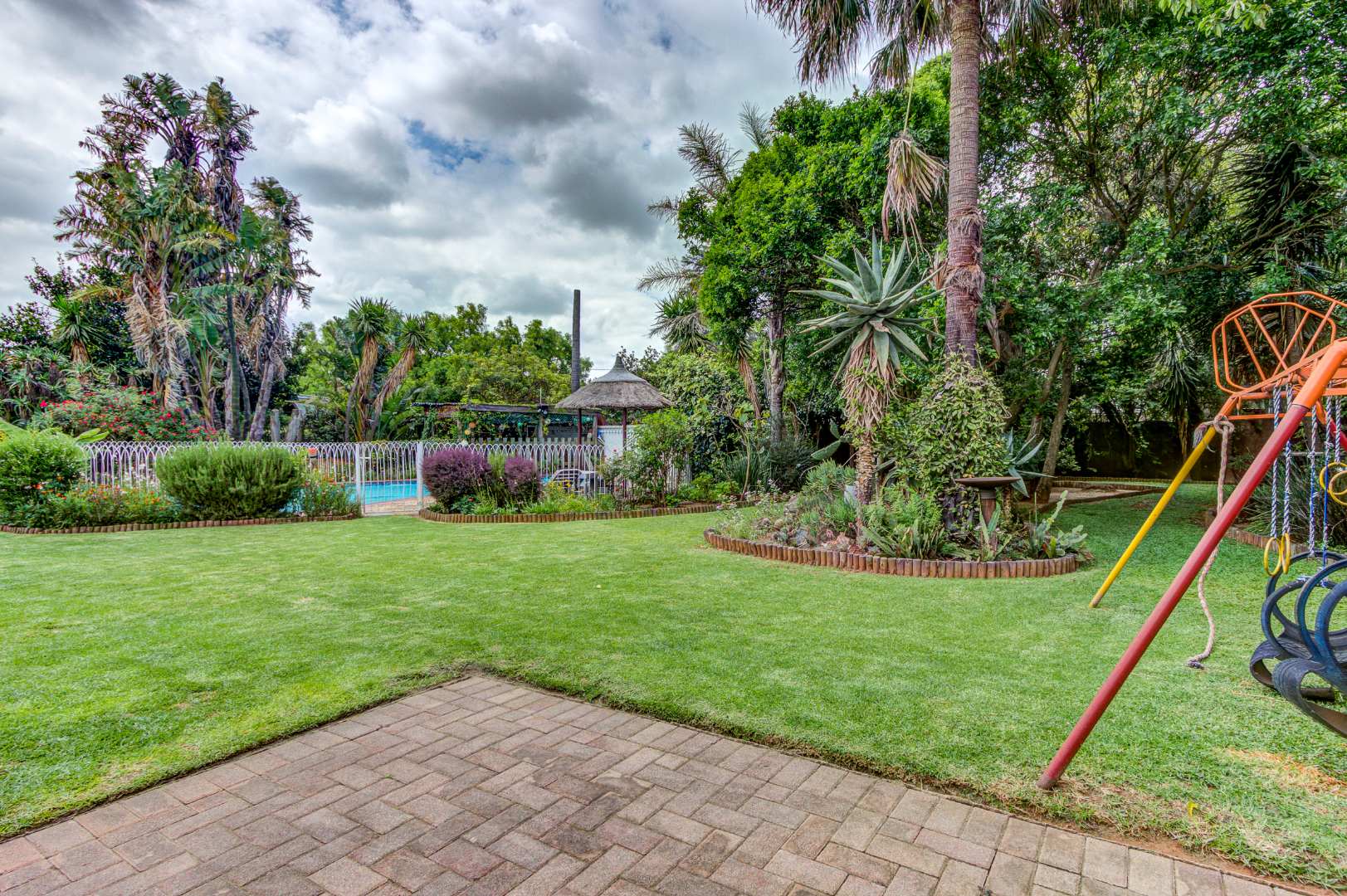 The garden is a true highlight, with winding pathways leading to multiple outdoor entertainment spaces, additional Braai facilities, seating areas, and a charming pond, all surrounded by a well-kept garden that offers privacy and