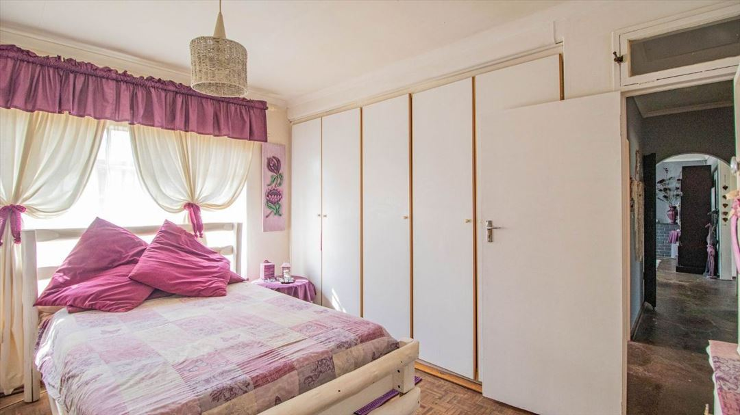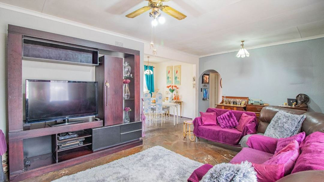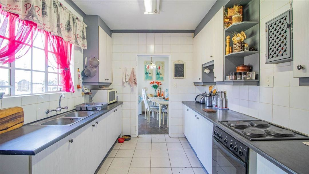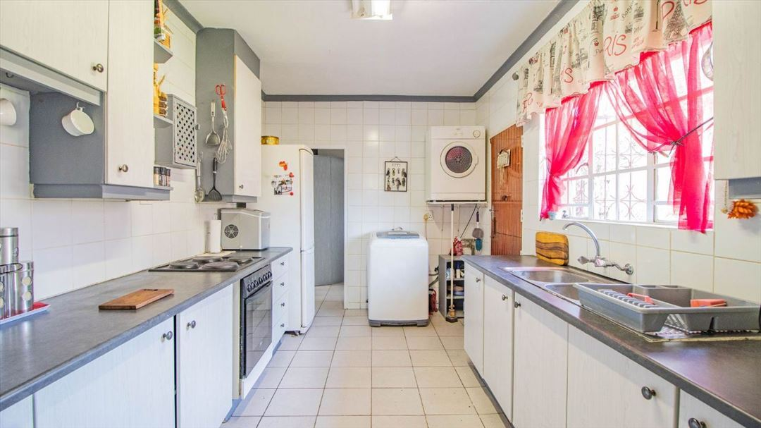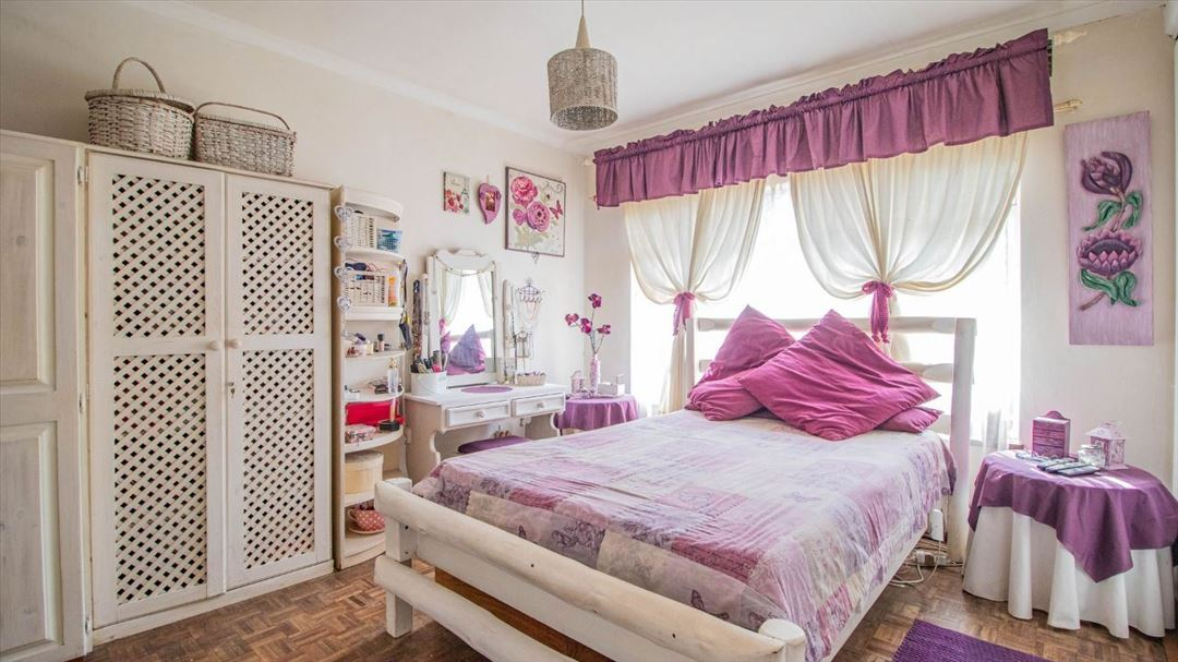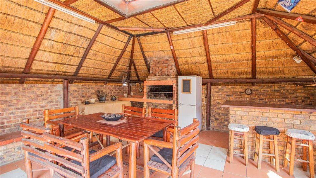 This lovely four-bedroom home has a welcoming feel throughout. It offers two well-sized bathrooms, a practical kitchen, a comfortable lounge, and a separate dining room ideal for family meals. The entrance hall creates a warm first impression, leading to a spacious family room that serves as the heart of the home. Outside, there is a well-designed braai area and a thatched lapa, perfect for relaxed gatherings and outdoor entertaining. With four garages providing plenty of parking and storage space, this home offers a classic, comfortable lifestyle suited for family living and everyday convenience.
