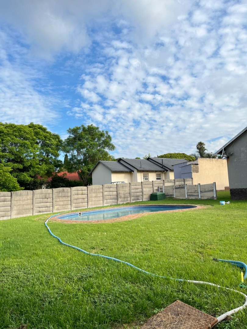 Outdoor living is well catered for on the generous 991 sqm erf. The property boasts a well-kept lawn and a refreshing swimming pool, ideal for relaxation and entertaining. With a double garage and additional parking for up to five vehicles, convenience is assured. Pets are allowed, ideal for family living. Security is addressed with an alarm system and a security gate on the sliding door.