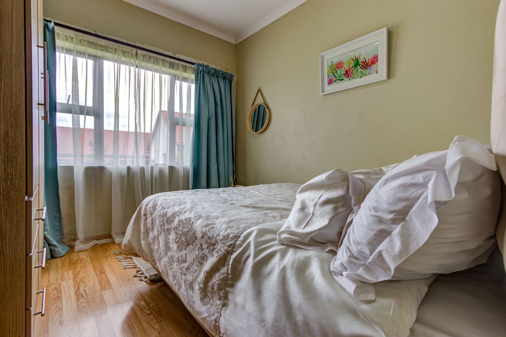 4 well-proportioned bedrooms, all fitted with built-in cupboards and laminated flooring, providing ample space for the whole family. There are three bathrooms, including two en-suite bathrooms, ensuring convenience and privacy.