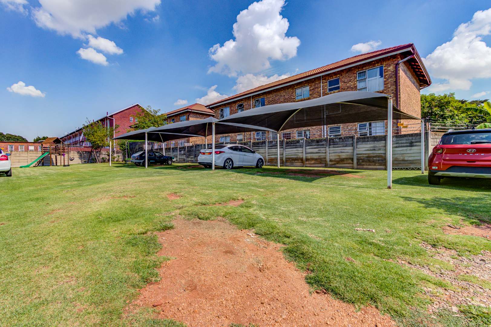 This inviting multi-story residence, nestled within a well-maintained complex in Birchleigh, Kempton Park, offers comfort and convenience. The durable red brick exterior is complemented by a lush, mature garden and a neatly kept lawn, creating a welcoming first impression. Natural light streams through numerous windows, enhancing the home's bright and airy feel.