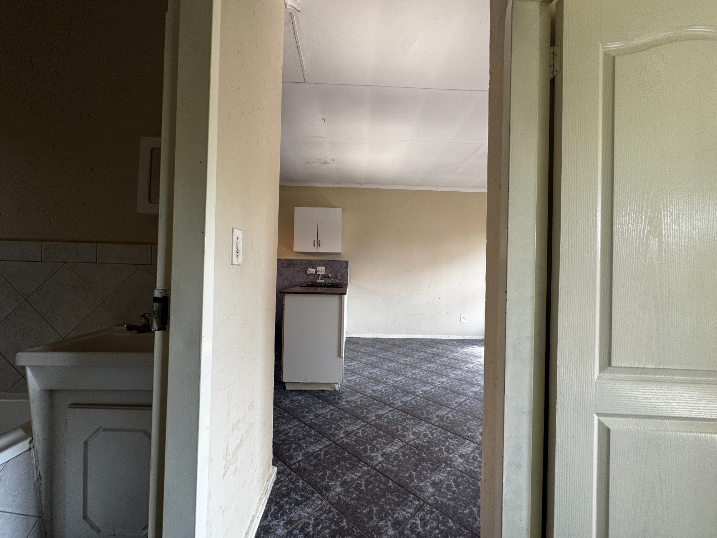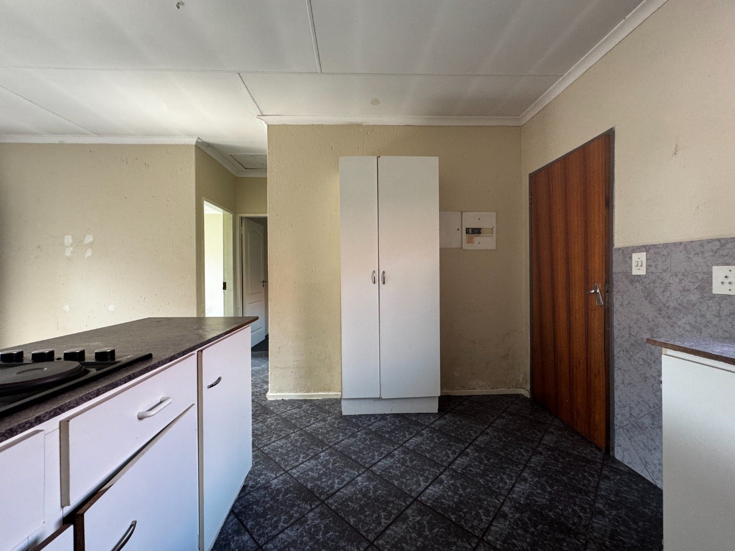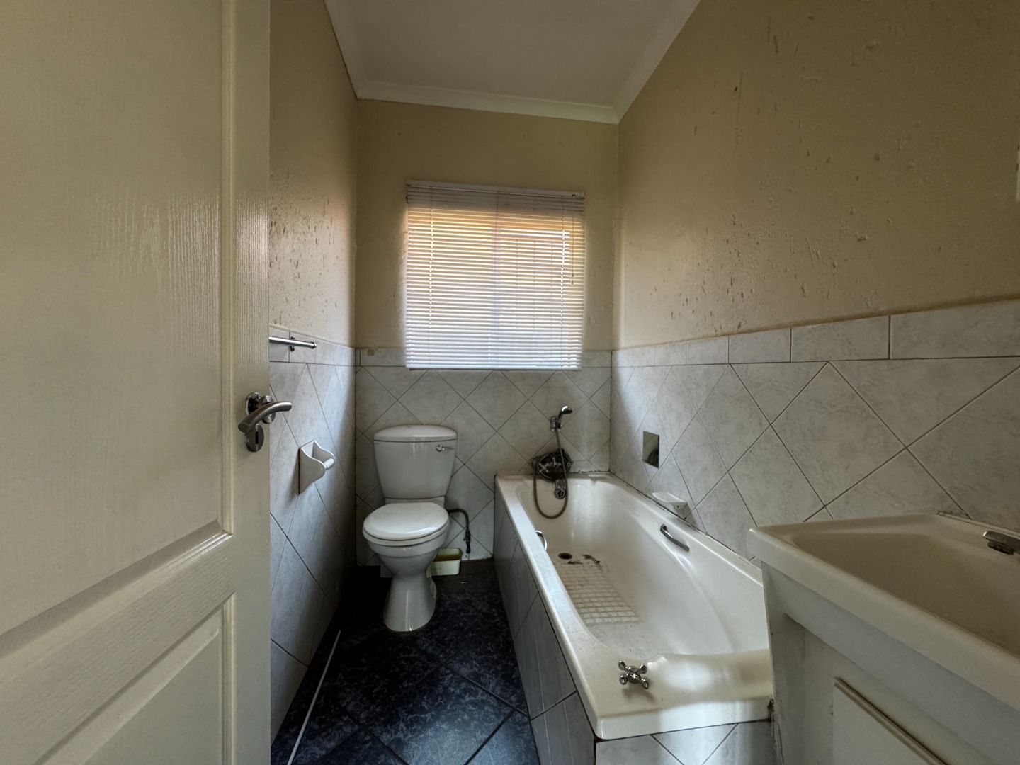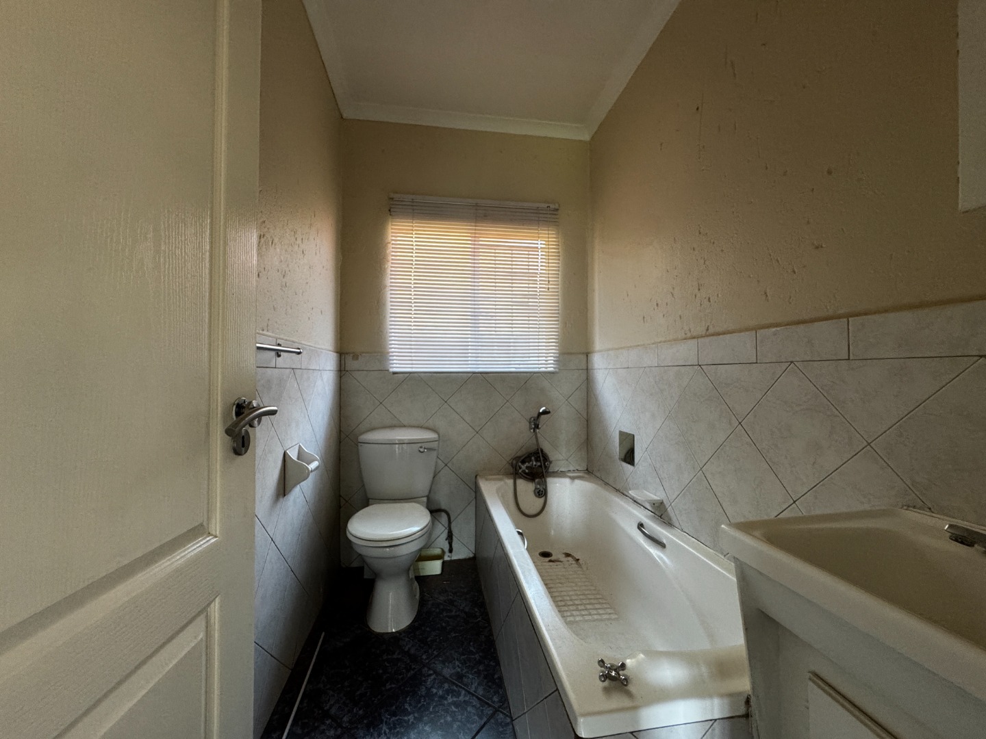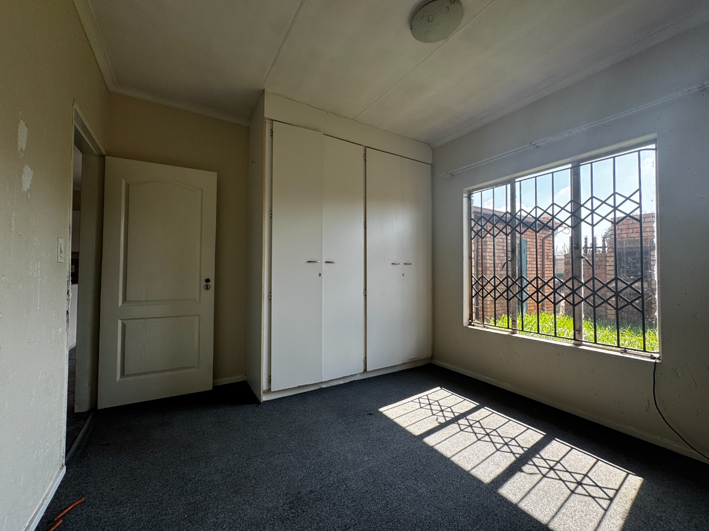 Accommodation includes two large carpeted bedrooms, each fitted with built-in cupboards. These rooms provide comfort and ample storage, making them well-suited for family living or shared accommodation. The bathroom is equipped with a basin, bathtub, and toilet, serving the household’s needs efficiently.