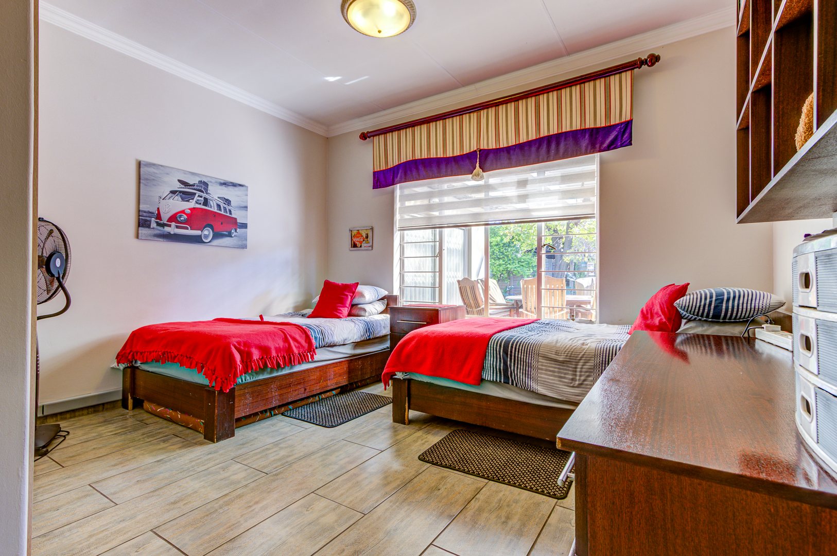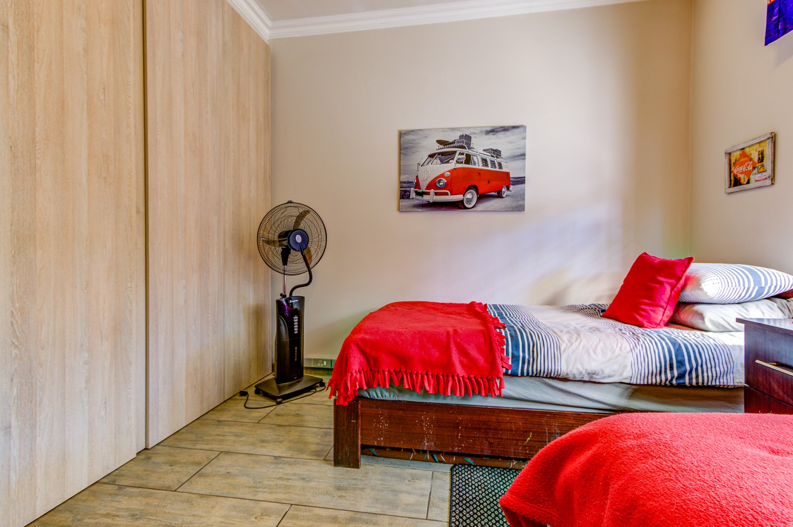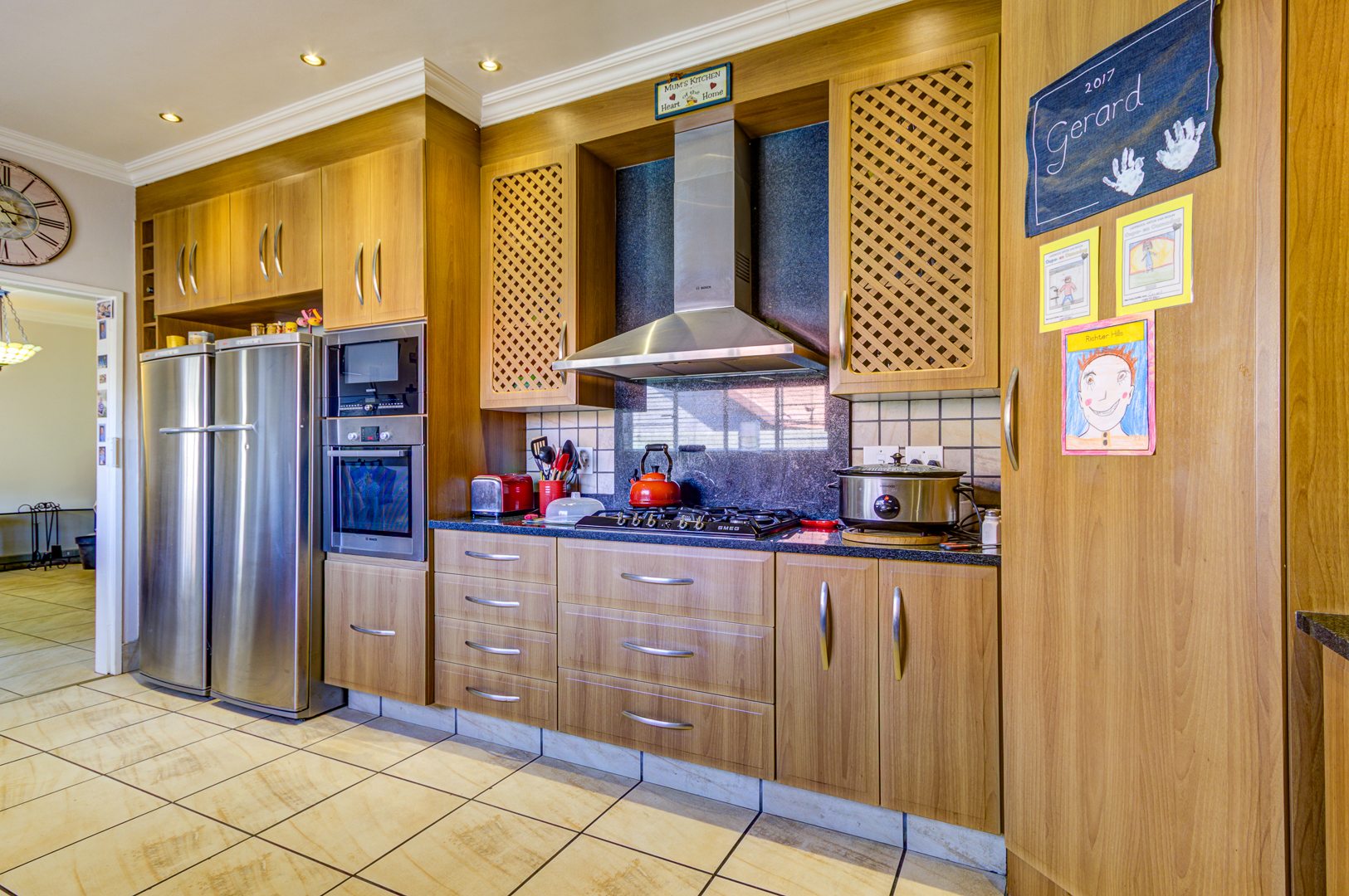 2 Garages with automated roll-up doors and 2 carports. Servants quarters with room, toilet and shower. Neat and established garden with a solar heated Marbelite pool with safety net. Covered patio and lots of paving. Burglar bars, safety gates, Jojo tank with pressure pump, 7 solar panels and inverter with 1 Lithium battery. All blinds included in this sale.