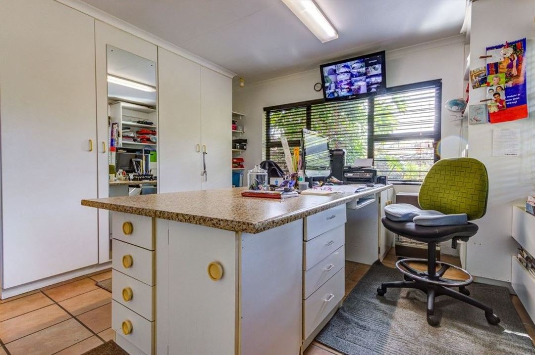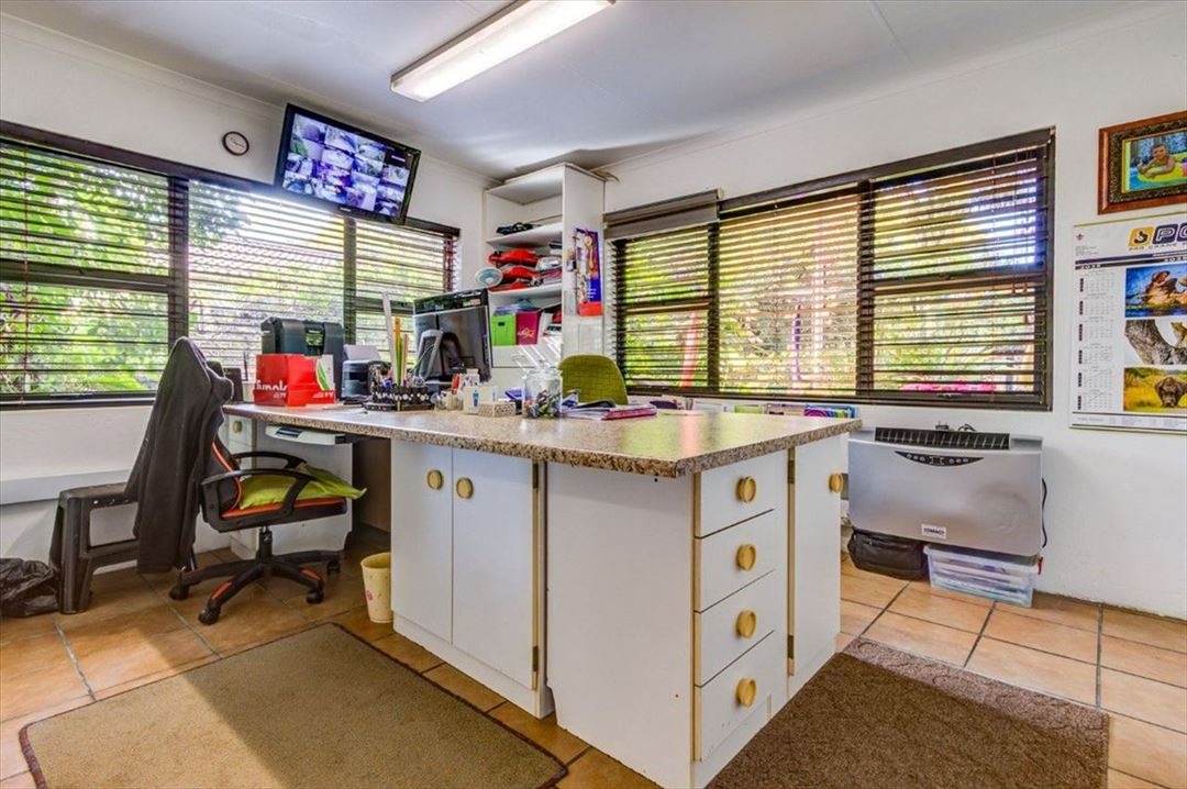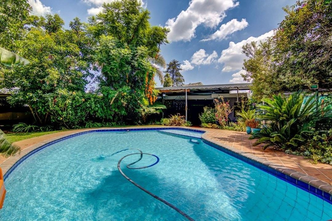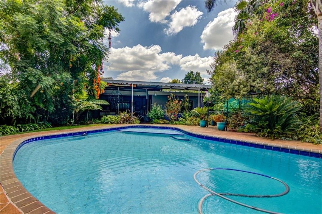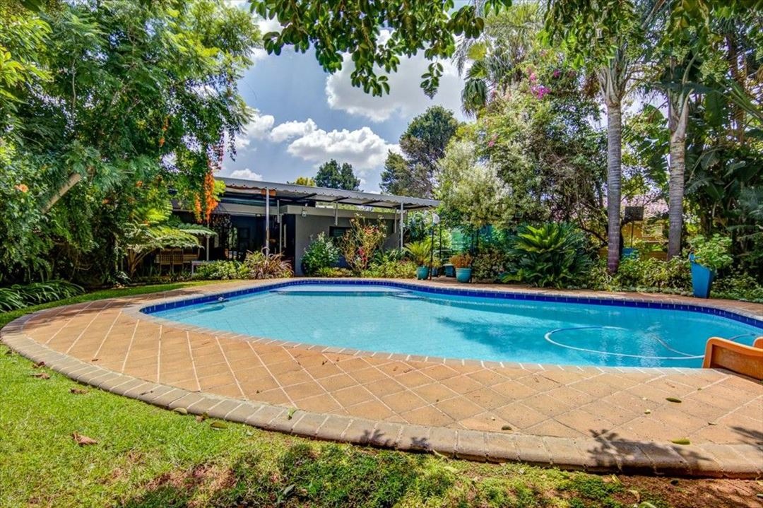Step outside to a private oasis, highlighted by a large, inviting swimming pool set amidst lush, mature landscaping. A covered outdoor area provides the perfect spot for alfresco dining or relaxation, while a unique treehouse with a slide adds a playful touch. The property also benefits from a flatlet and staff quarters, offering versatile living options, and is pet-friendly.