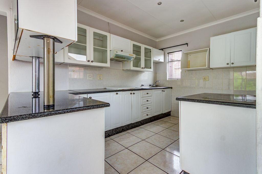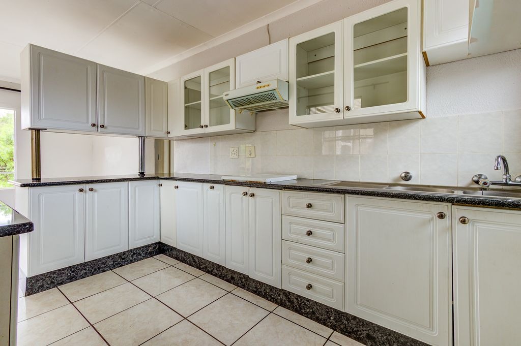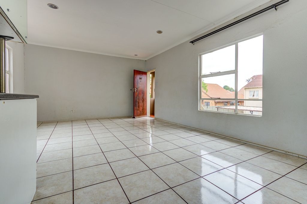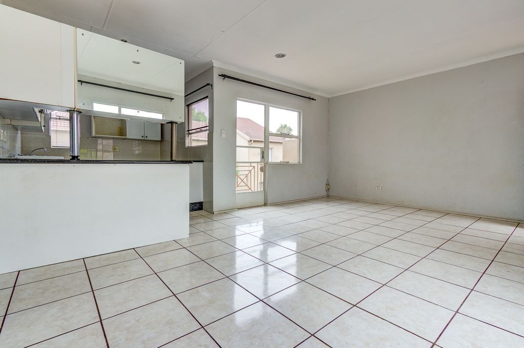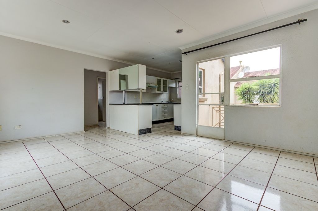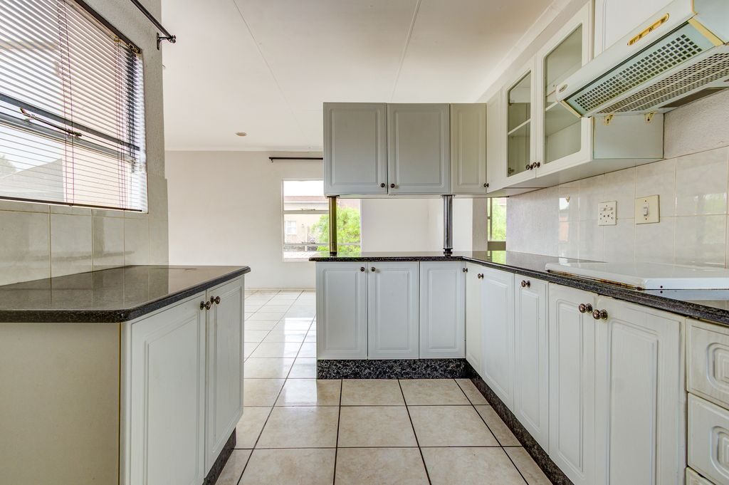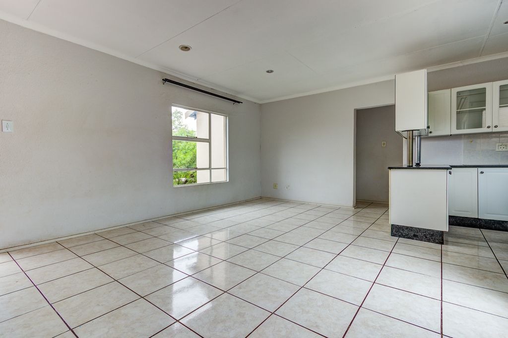 Discover this inviting apartment located within a secure complex in Bonaero Park, Kempton Park. This residential sale property offers a comfortable and practical living space, ideal for individuals or small families seeking convenience and community amenities. The interior features an open-plan layout, seamlessly connecting the living and dining areas, both adorned with durable tiled flooring and neutral-toned walls that allow for easy personalization. The functional kitchen is equipped with white cabinetry, dark speckled granite countertops, a built-in hob, and a breakfast bar, providing a practical space for daily meals.