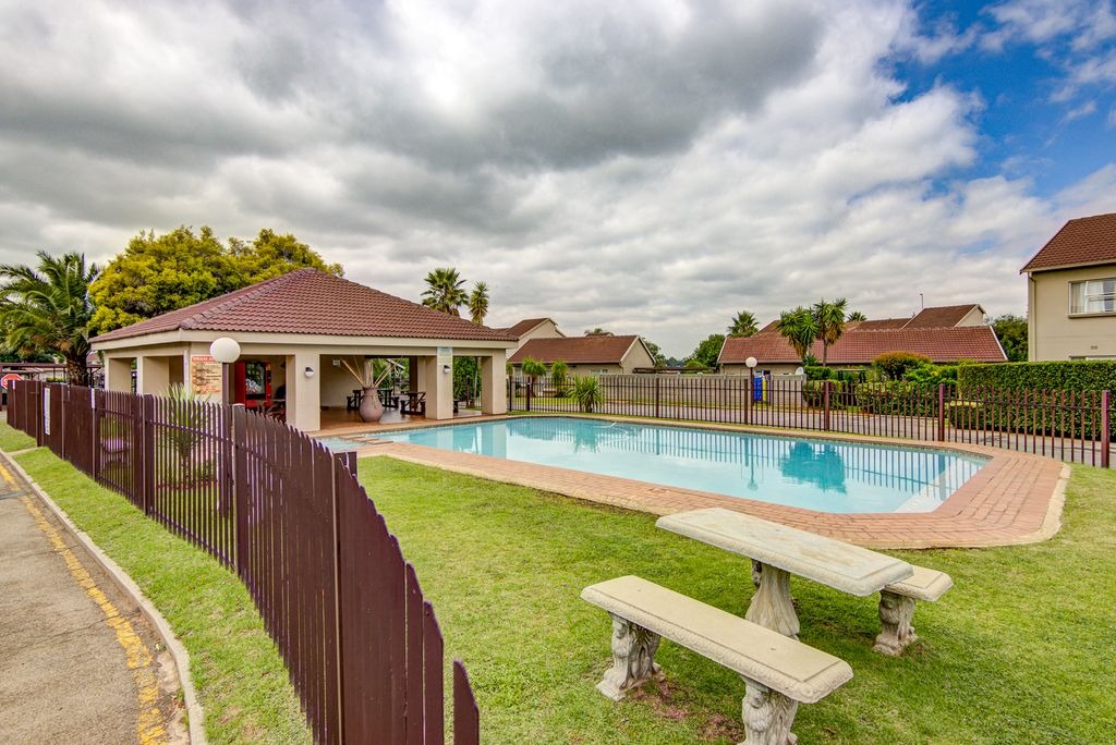 Residents benefit from a host of communal amenities designed for an enhanced lifestyle. The complex boasts a well-maintained communal swimming pool, complete with a shaded entertainment area and stone benches, perfect for leisure and social gatherings. Lush green lawns and established landscaping contribute to the pleasant exterior, complemented by covered parking for vehicles. Security is paramount, with 24-hour security, an access gate, and security gates on individual units, providing peace of mind. The property also features fibre connectivity, catering to modern communication needs.