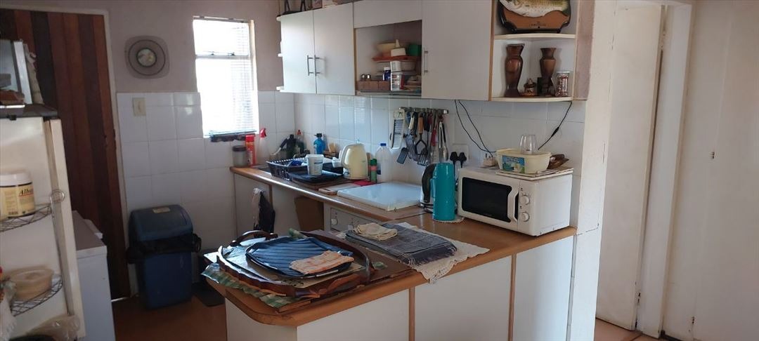 The home features an inviting open-plan lounge and dining area, both enhanced by wooden flooring that adds warmth and character. The open-plan kitchen offers a breakfast counter, melamine cabinetry, tiled floors and walls, and a combo scullery, along with a convenient pantry cupboard.