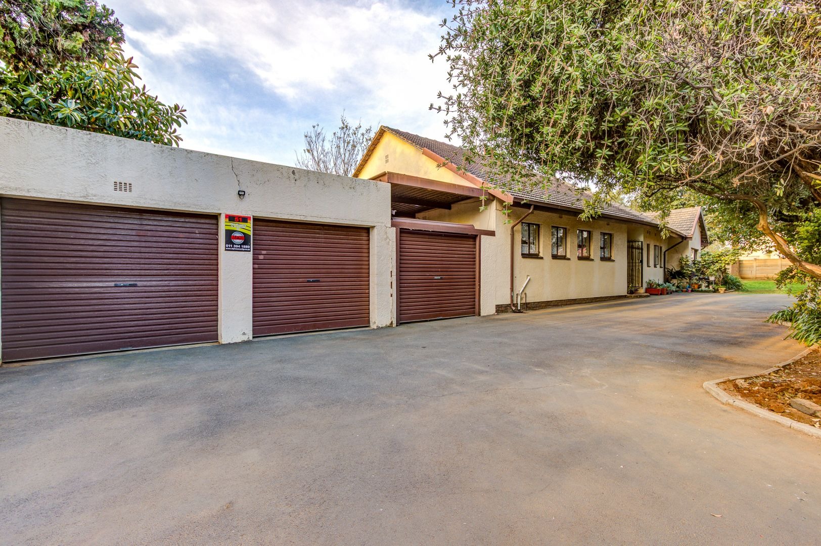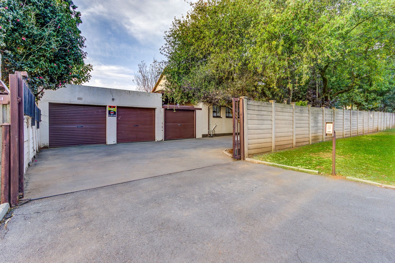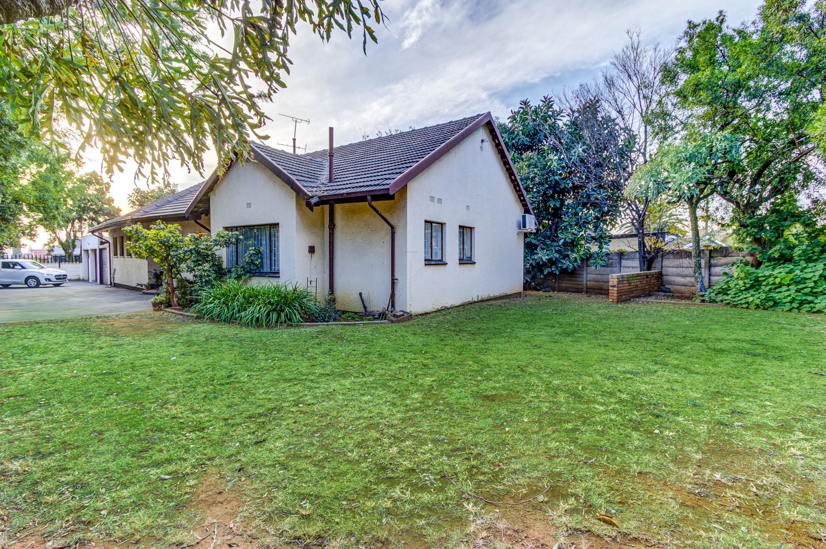 This massive corner stand offers room for extensions, extra parking, or future development