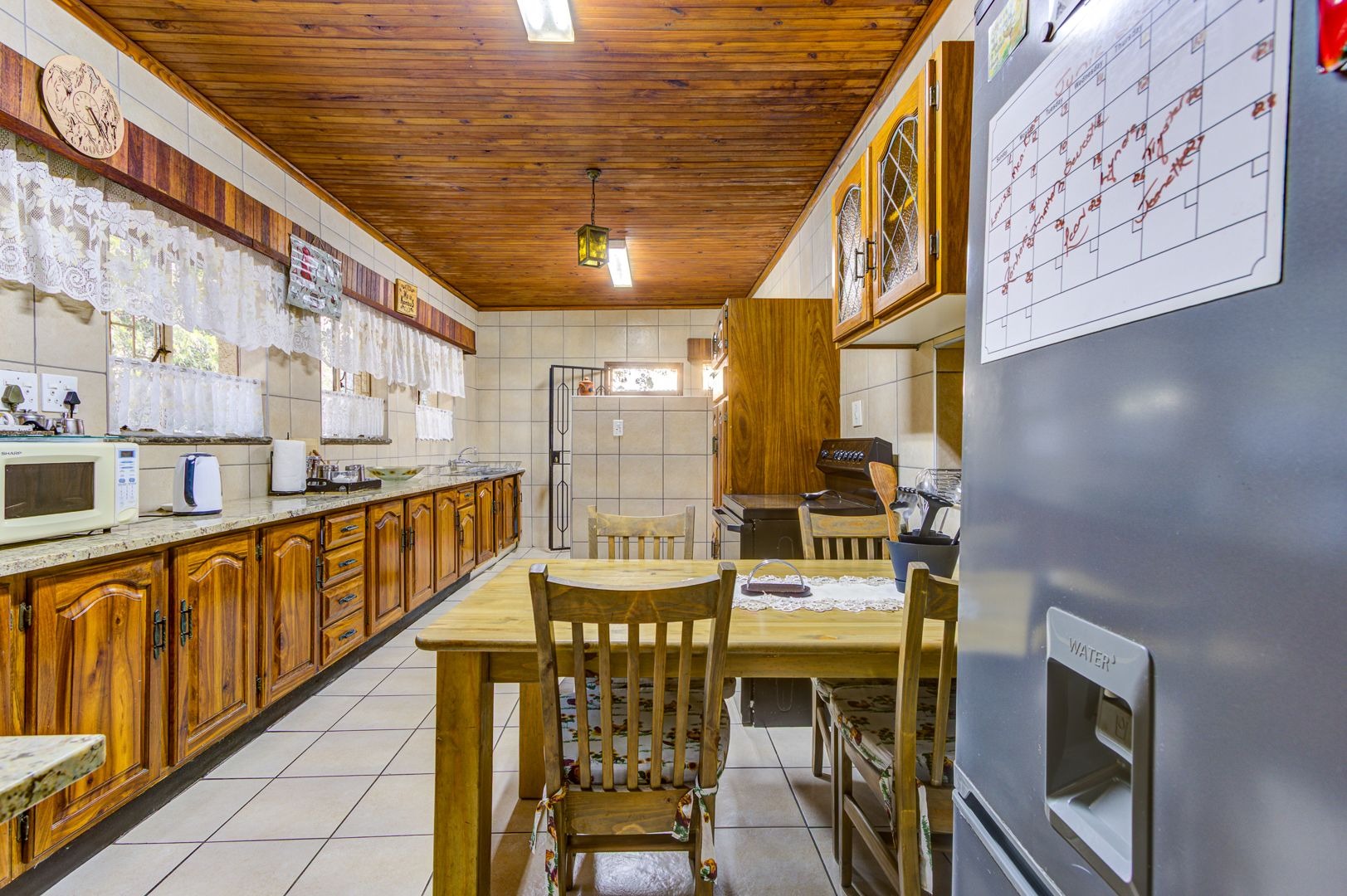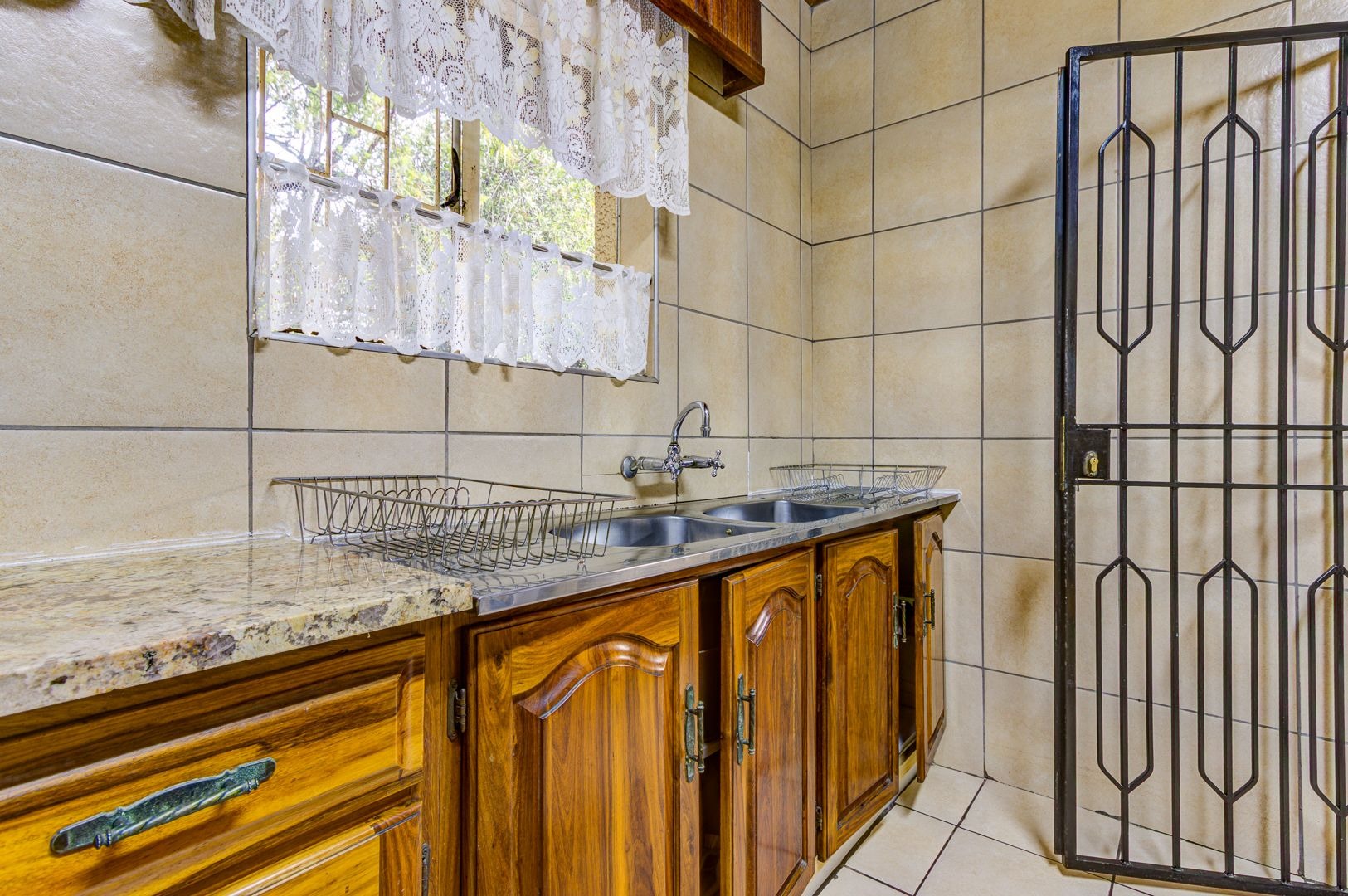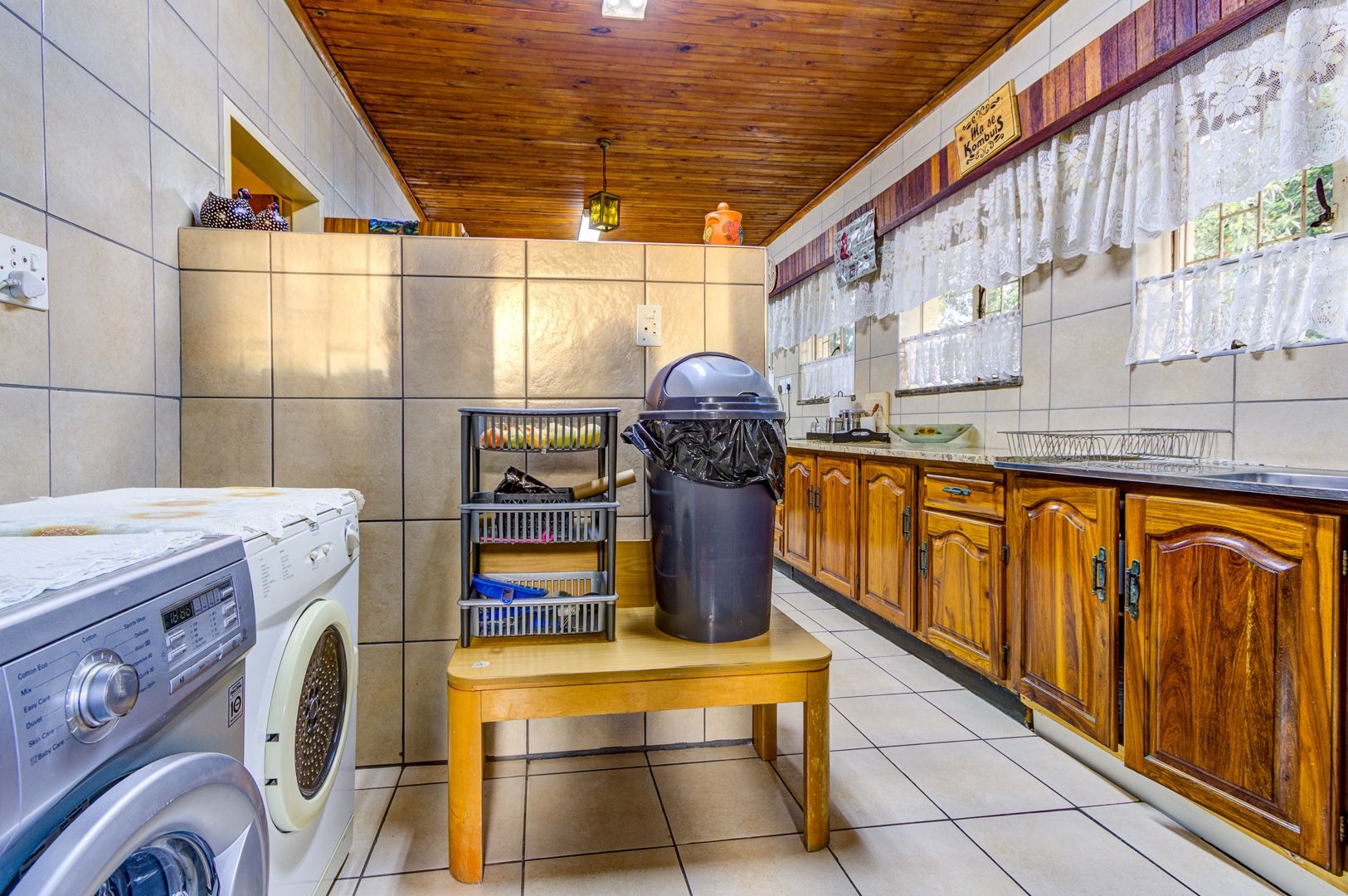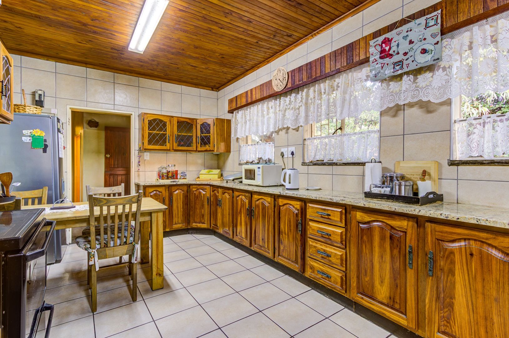 Well-sized kitchen with granite tops, ample cupboard space and a separate scullery plus a laundry room.