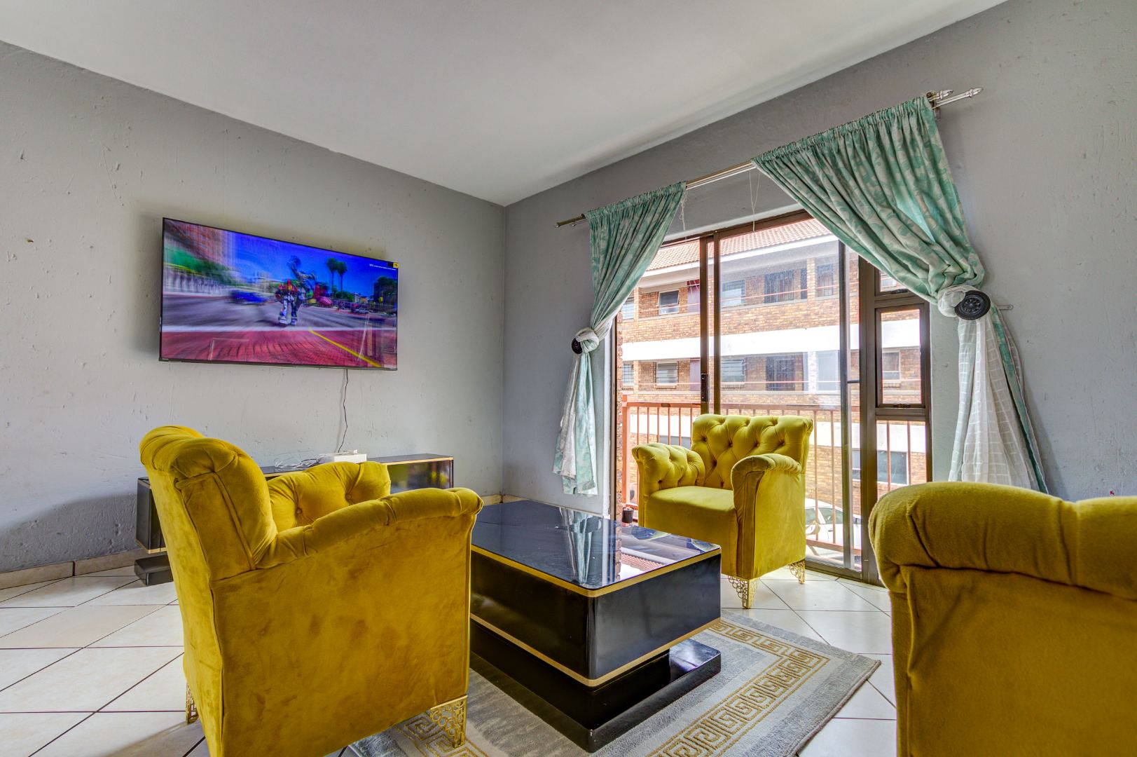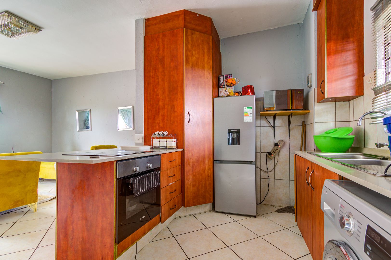 Discover comfortable living in this inviting 2-bedroom, 2-bathroom apartment located within a secure complex in Croydon, Kempton Park. Spanning 91 square metres, this residence offers a practical layout designed for modern lifestyles, ideal for individuals or small families seeking convenience and security. The heart of the home features an open-plan kitchen seamlessly flowing into the lounge area. The kitchen is well-appointed with warm-toned wooden cabinetry, ample storage, and modern appliances including a built-in hob, integrated washing machine, and a refrigerator. A central island or breakfast bar enhances functionality and provides a casual dining space. The lounge area benefits from abundant natural light, with large sliding doors opening onto a private balcony, perfect for enjoying the fresh air. Both bedrooms are designed for comfort, featuring tiled flooring and good natural light. The main bedroom boasts an upholstered bed frame and modern bedside tables, while the second bedroom includes extensive built-in wooden wardrobes, offering generous storage solutions. The two bathrooms are fully tiled for easy maintenance, each equipped with essential fixtures, including a bathtub with a glass shower screen and a vanity unit. Additional features include a dedicated garage and an extra parking space, providing secure accommodation for vehicles. The complex offers peace of mind with 24-hour security and a security gate, ensuring a safe environment for residents. Fibre connectivity is also available, catering to modern communication needs. Croydon, situated in Kempton Park, is a well-established suburb known for its accessibility and community feel. It offers convenient access to major routes, local amenities, and schools, making it a desirable location for those seeking a balanced lifestyle in Gauteng. Key Features: * Two Bedrooms, Two Bathrooms * Open-Plan Kitchen and Lounge * Modern Kitchen Appliances * Private Balcony Access * Built-in Wardrobes * Tiled Flooring Throughout * Single Garage and Additional Parking * 24-Hour Security and Security Gate * Fibre Ready
